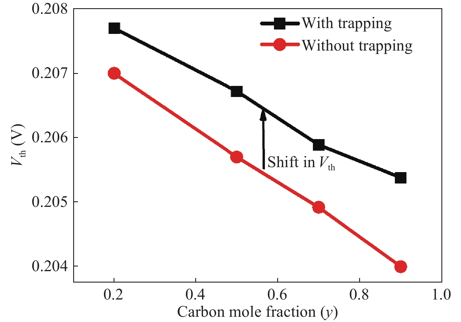 We propose a reliable asymmetric dual-k spacer with SiC source/drain (S/D) pocket as a stressor for a Si channel. This enhances the device performance in terms of electron mobility (eMobility), current driving capabilities, transconductance (Gm) and subthreshold slope (SS). The improved performance is an amalgamation of longitudinal tensile stress along the channel and reduced series resistance. We analysed the variation in drive current for different values of carbon (C) mole fraction y in Si1?yCy. It is found that the mole fraction also helps to improve device lifetime, performance enhancement also pointed by transconductance variation with the gate length. All the simulations are performed in the 3-D Sentaurus TCAD tool. The proposed device structure achieved ION = 2.17 mA/μm for Si0.3C0.7 and found that Si0.5C0.5 is more suitable for the perspective of a process variation effect for 14 nm as the gate length. We introduce reliability issues and their solutions for Si1?yCy FinFET for the first time.