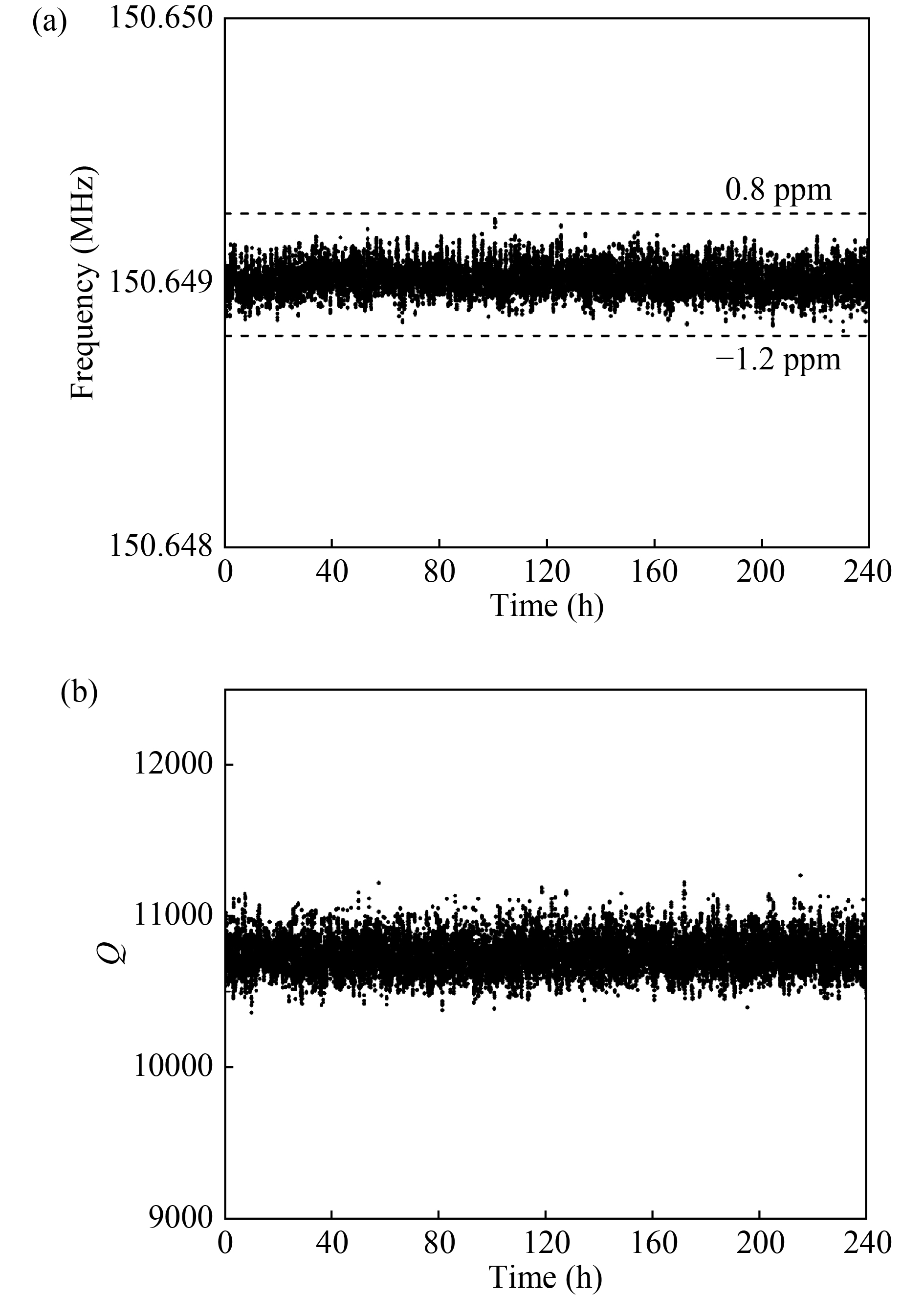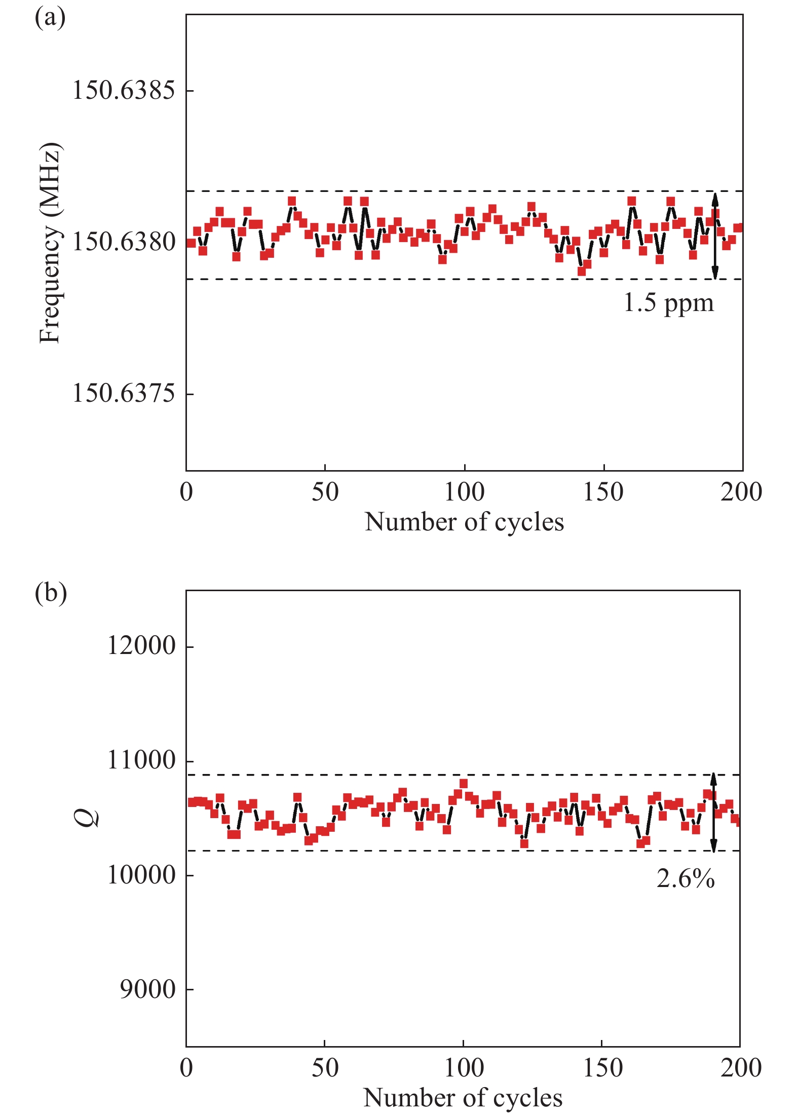 The frequency stability of a three-dimensional (3D) vacuum encapsulated very high frequency (VHF) disk resonator is systematically investigated. For eliminating the parasitic effect caused by the parasitic capacitance of the printed circuit board (PCB), a negating capacitive compensation method was developed. The testing results implemented at 25 °C for 240 h for the long-term stability indicates that the resonant frequency variation remained within ±1 ppm and the noise floor derived from Allan Deviation was 26 ppb, which is competitive with the conventional quartz resonators. The resonant frequency fluctuation of 1.5 ppm was obtained during 200 temperature cycling between ?40 and 85 °C.