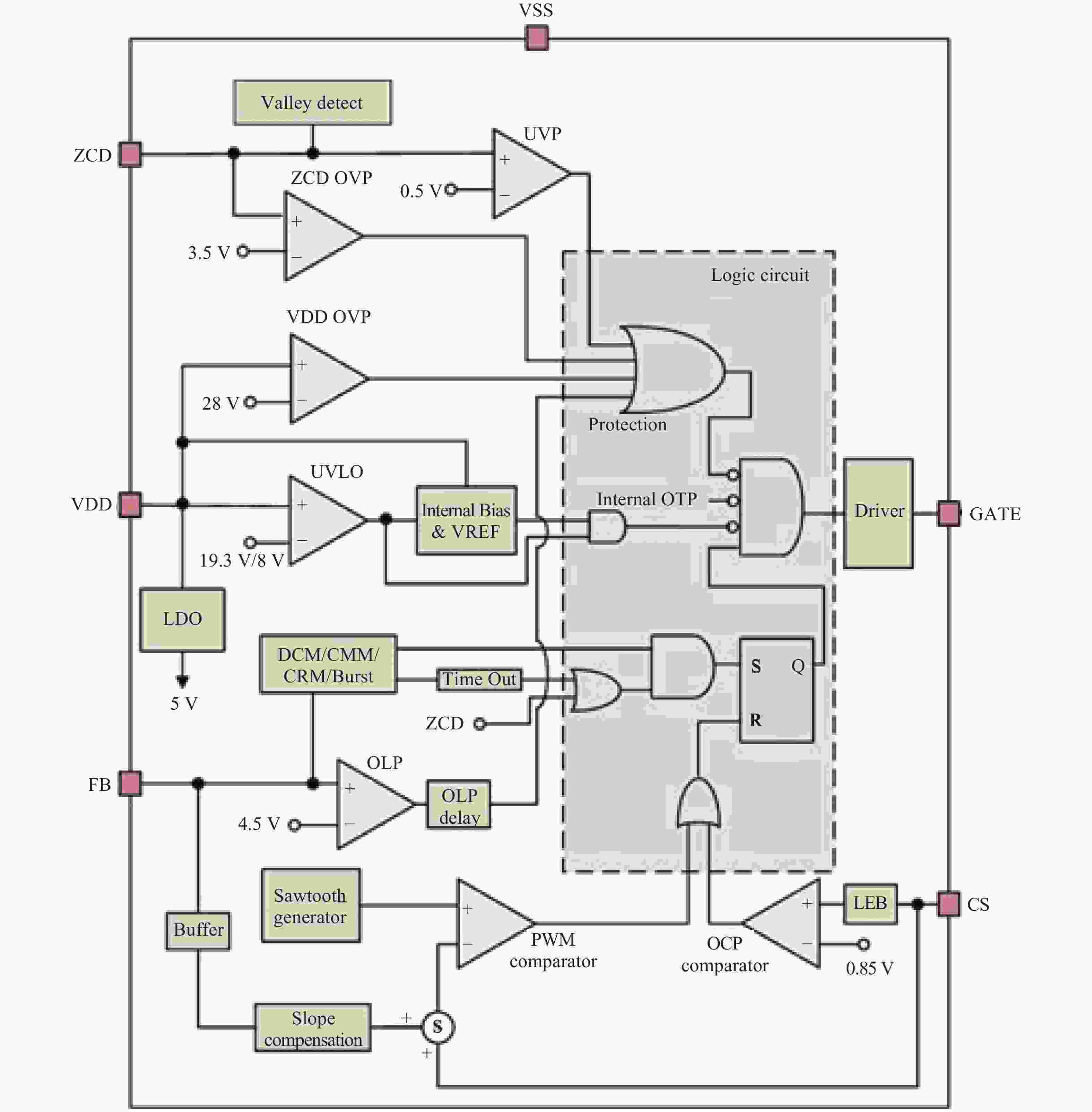 This paper proposes a high-performance pulse-width modulation (PWM) AC/DC controller, which can drive a high-voltage (HV) 650-V power metal-oxide-semiconductor field-effect Transistor (MOSFET) in typical applications of adapters in portable electronic devices. In order to reduce the standby power consumption and improve the response speed in the start-up state, an improved under voltage lockout (UVLO) circuit without a voltage reference source or comparator is adopted. The AC/DC controller is fabricated using a 40-V 0.8-μm one-poly two-metal (1P2M) CMOS process, and it only occupies 1410 × 730 μm2. A 12 V/2 A flyback topology for quick-charge application is illustrated as the test circuit, which is currently one of the most advanced power adapters in use. Test values show that the turn-on and the turn-off threshold voltages are 19.318 and 8.01 V, respectively. A high hysteresis voltage of 11.308 V causes the value of the power-charging capacitor to decrease to as low as 1 μF to reduce production cost. In addition, the start-up current of 2.3 μA is extremely small, and is attributed to a reduction in the system's standby power consumption. The final test results of the overall system are proven to meet the Energy Star VI standard. The controller has already been mass produced for industrial applications.