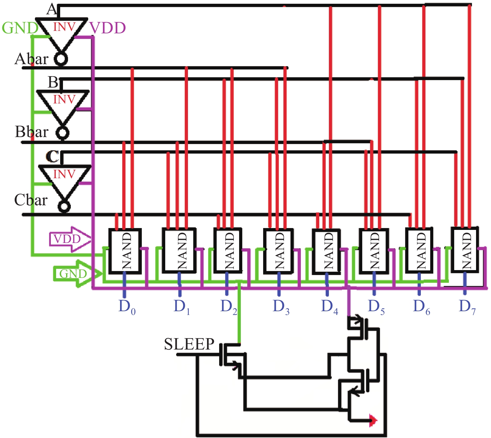 Researchers have proposed many circuit techniques to reduce leakage power dissipation in memory cells. If we want to reduce the overall power in the memory system, we have to work on the input circuitry of memory architecture i.e. row and column decoder. In this research work, low leakage power with a high speed row and column decoder for memory array application is designed and four new techniques are proposed. In this work, the comparison of cluster DECODER, body bias DECODER, source bias DECODER, and source coupling DECODER are designed and analyzed for memory array application. Simulation is performed for the comparative analysis of different DECODER design parameters at 180 nm GPDK technology file using the CADENCE tool. Simulation results show that the proposed source bias DECODER circuit technique decreases the leakage current by 99.92% and static energy by 99.92% at a supply voltage of 1.2 V. The proposed circuit also improves dynamic power dissipation by 5.69%, dynamic PDP/EDP 65.03% and delay 57.25% at 1.2 V supply voltage.