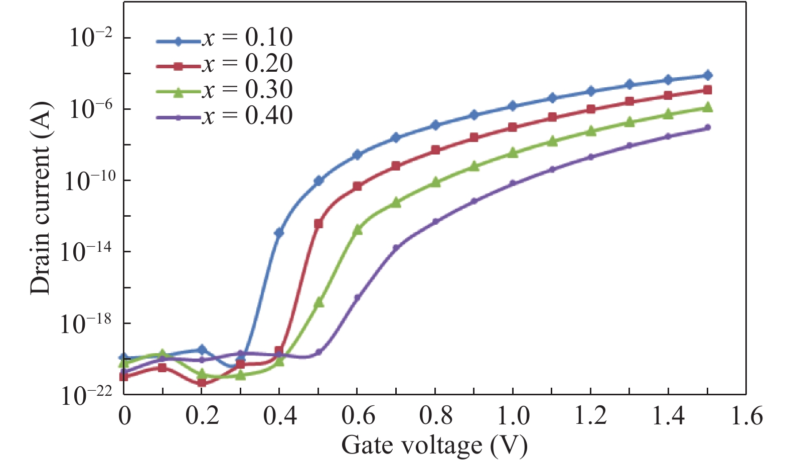 A double-gate tunnel field-effect transistor (DG tunnel FET) has been designed and investigated for various channel materials such as silicon (Si), gallium arsenide (GaAs), alminium gallium arsenide (AlxGa1?xAs) and CNT using a nano ViDES Device and TCAD SILVACO ATLAS simulator. The proposed devices are compared on the basis of inverse subthreshold slope (SS), ION/IOFF current ratio and leakage current. Using Si as the channel material limits the property to reduce leakage current with scaling of channel, whereas the AlxGa1?xAs based DG tunnel FET provides a better ION/IOFF current ratio (2.51 × 106) as compared to other devices keeping the leakage current within permissible limits. The performed silmulation of the CNT based channel in the double-gate tunnel field-effect transistor using the nano ViDES shows better performace for a sub-threshold slope of 29.4 mV/dec as the channel is scaled down. The proposed work shows the potential of the CNT channel based DG tunnel FET as a futuristic device for better switching and high retention time, which makes it suitable for memory based circuits.