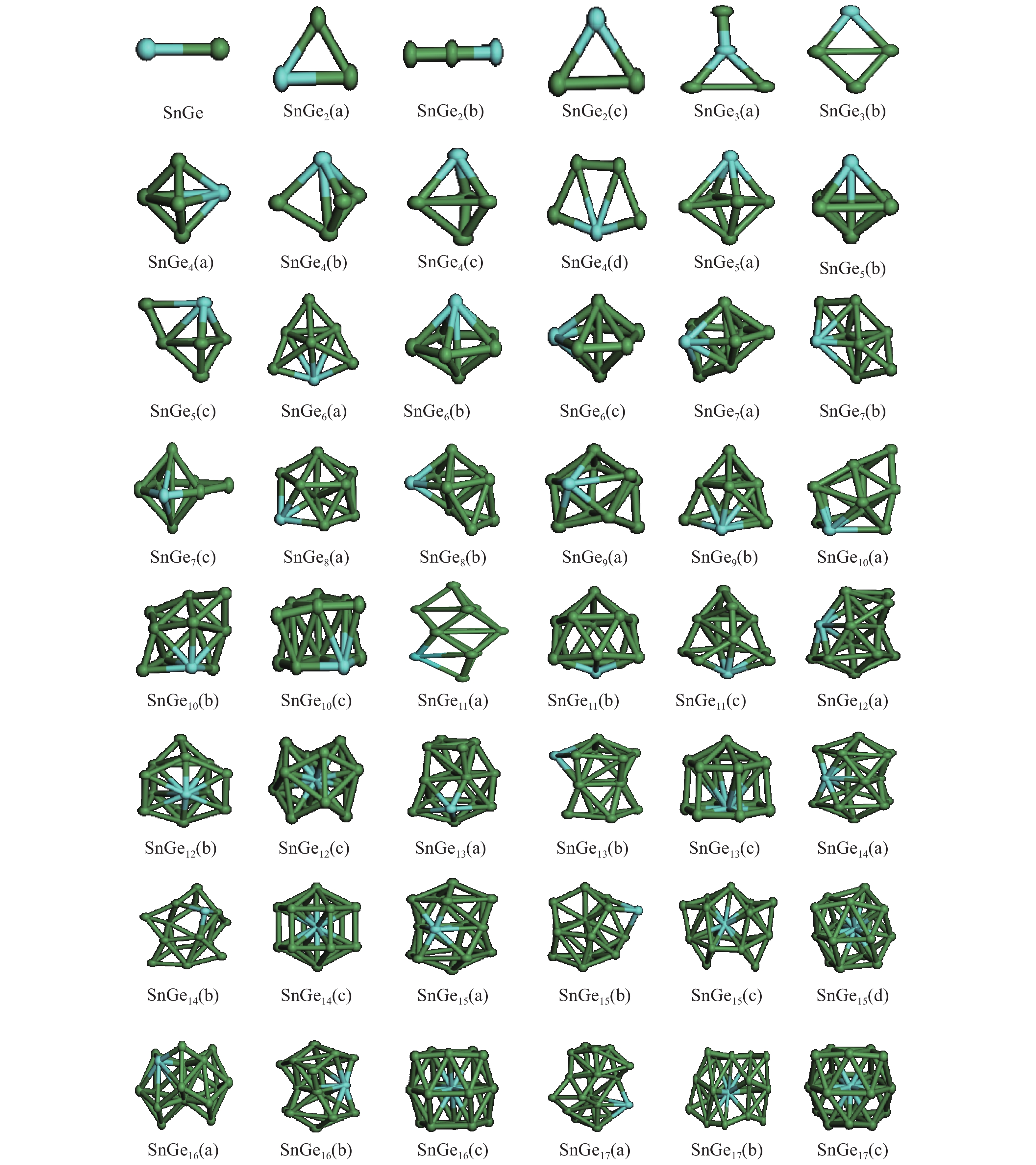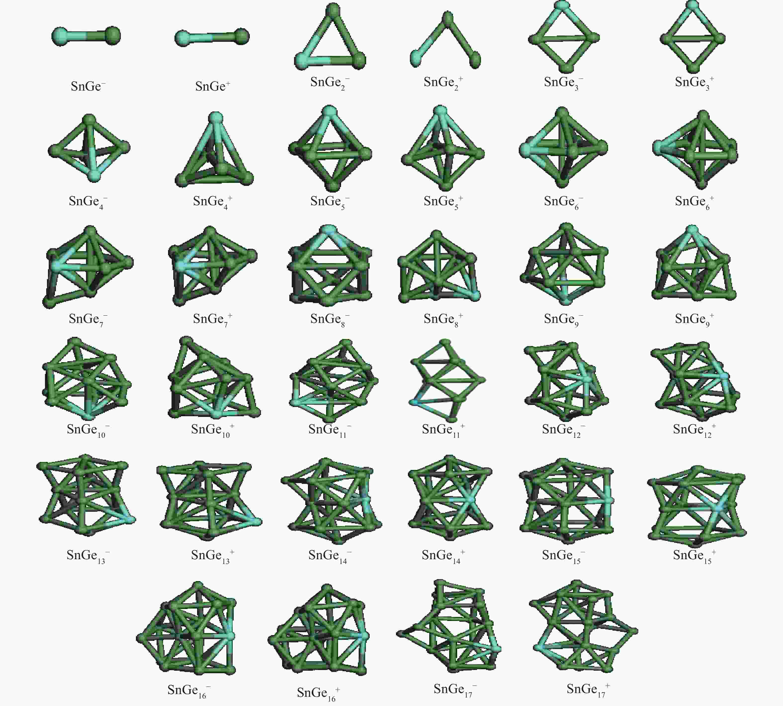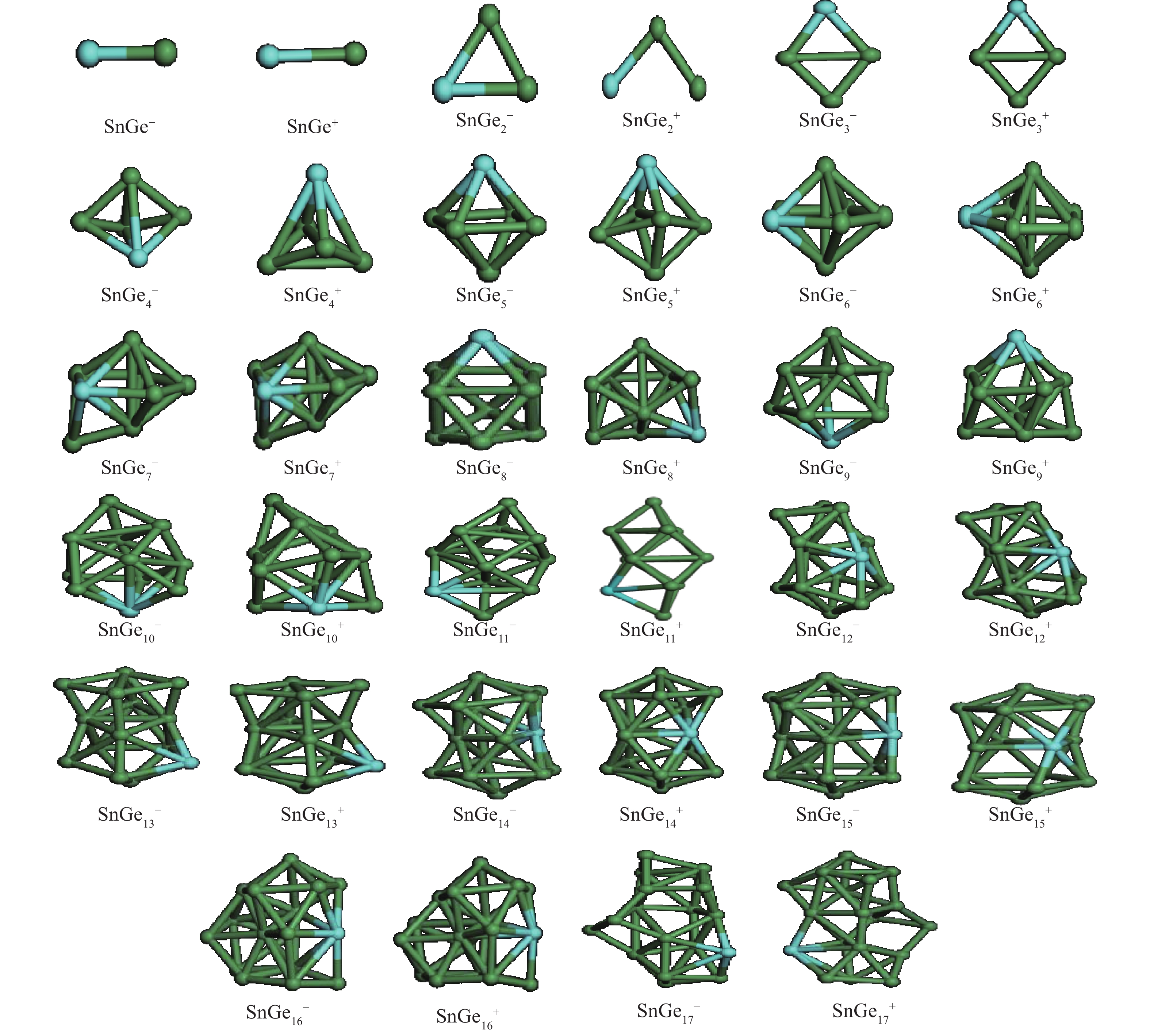 The structures, relative stability and magnetic properties of pure Gen+1, neutral cationic and anionic SnGen (n = 1–17) clusters have been investigated by using the first principles density functional theory implemented in SIESTA packages. We find that with the increasing of cluster size, the Gen+1 and SnGen(0, ±1) clusters tend to adopt compact structures. It has been also found that the Sn atom occupied a peripheral position for SnGen clusters when n < 12 and occupied a core position for n > 12. The structural and electronic properties such as optimized geometries, fragmentation energy, binding energy per atom, HOMO–LUMO gaps and second-order differences in energy of the pure Ge n+1 and SnGen clusters in their ground state are calculated and analyzed. All isomers of neutral SnGen clusters are generally nonmagnetic except for n = 1 and 4, where the total spin magnetic moments is 2μb. The total (DOS) and partial density of states of these clusters have been calculated to understand the origin of peculiar magnetic properties. The cluster size dependence of vertical ionization potentials, vertical electronic affinities, chemical hardness, adiabatic electron affinities and adiabatic ionization potentials have been calculated and discussed.