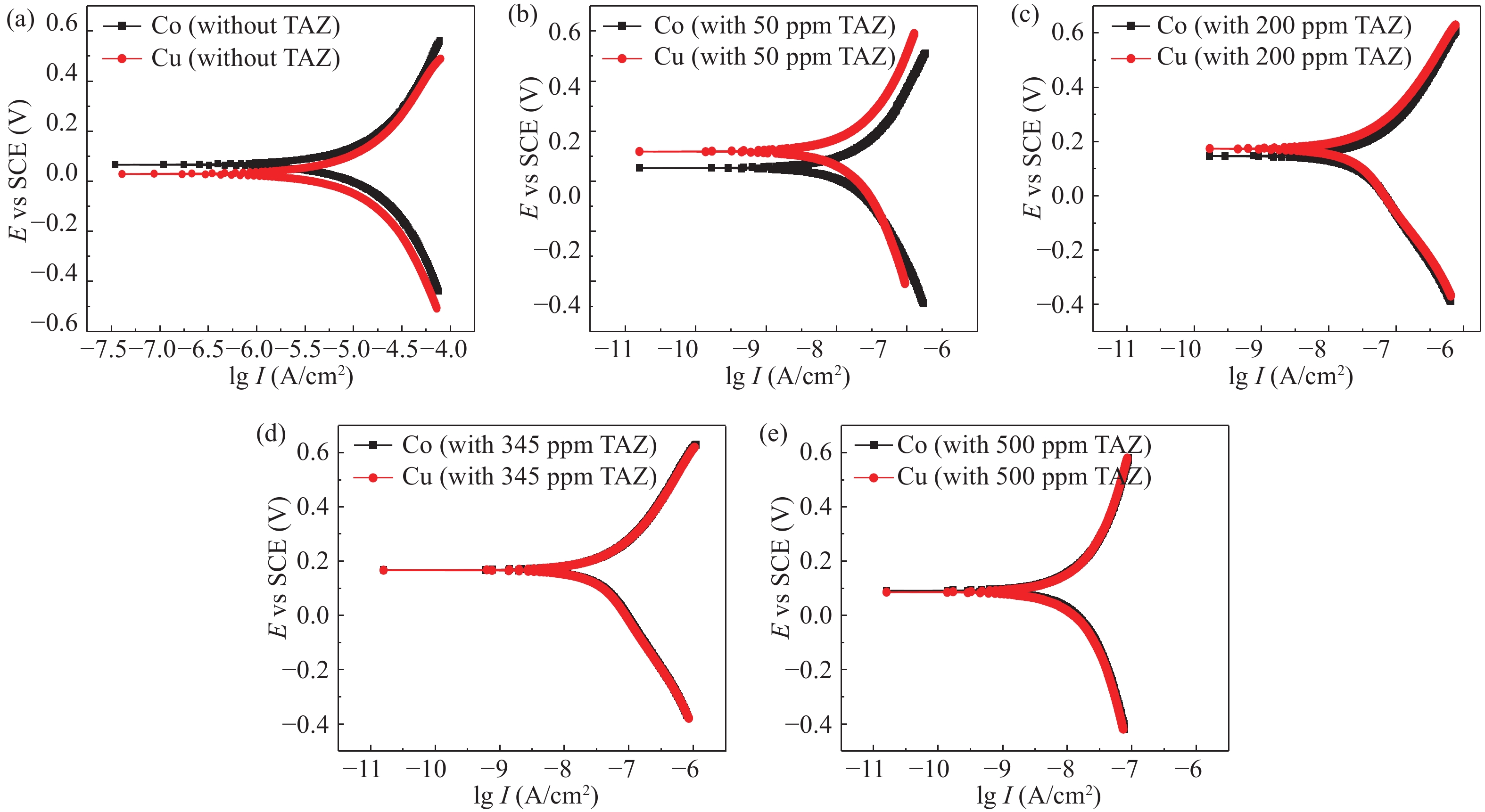 Cobalt has become a new type of barrier material with its unique advantages since the copper-interconnects in the great-large scale integrated circuits (GLSI) into 10 nm and below technical nodes, but cobalt and copper have severe galvanic corrosion during chemical–mechanical flattening. The effect of 1,2,4-triazole on Co/Cu galvanic corrosion in alkaline slurry and the control of rate selectivity of copper and cobalt were investigated in this work. The results of electrochemical experiments and polishing experiments had indicated that a certain concentration of 1,2,4-triazole could form a layer of insoluble and dense passive film on the surface of cobalt and copper, which reduced the corrosion potential difference between cobalt and copper. Meantime, the removal rate of cobalt and copper could be effectively controlled according to demand during the CMP process. When the study optimized slurry was composed of 0.5 wt% colloidal silica, 0.1 %vol. hydrogen peroxide, 0.05 wt% FA/O, 345 ppm 1,2,4-triazole, cobalt had higher corrosion potential than copper and the galvanic corrosion could be reduced effectively when the corrosion potential difference between them decreased to 1 mV and the galvanic corrosion current density reached 0.02 nA/cm2. Meanwhile, the removal rate of Co was 62.396 nm/min, the removal rate of Cu was 47.328 nm/min, so that the removal rate ratio of cobalt and copper was 1.32 : 1, which was a good amendment to the dishing pits. The contact potential corrosion of Co/Cu was very weak, which could be better for meeting the requirements of the barrier CMP.