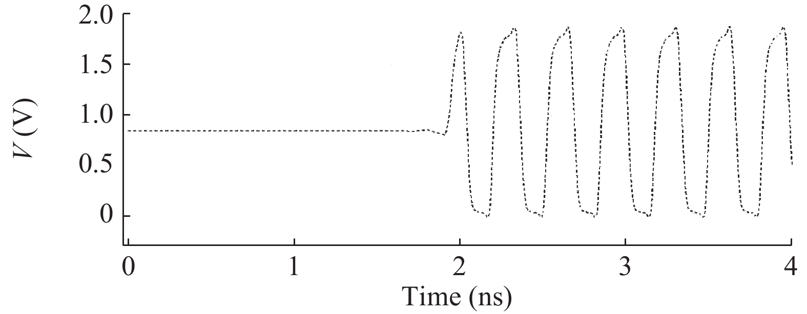 By utilizing the first order behavior of the device, an equation for the frequency of operation of the submicron CMOS ring oscillator is presented. A 5-stage ring oscillator is utilized as the initial design, with different Beta ratios, for the computation of the operating frequency. Later on, the circuit simulation is performed from 5-stage till 23-stage, with the range of oscillating frequency being 3.0817 and 0.6705 GHz respectively. It is noted that the output frequency is inversely proportional to the square of the device length, and when the value of Beta ratio is used as 2.3, a difference of 3.64% is observed on an average, in between the computed and the simulated values of frequency. As an outcome, the derived equation can be utilized, with the inclusion of an empirical constant in general, for arriving at the ring oscillator circuit’s output frequency.