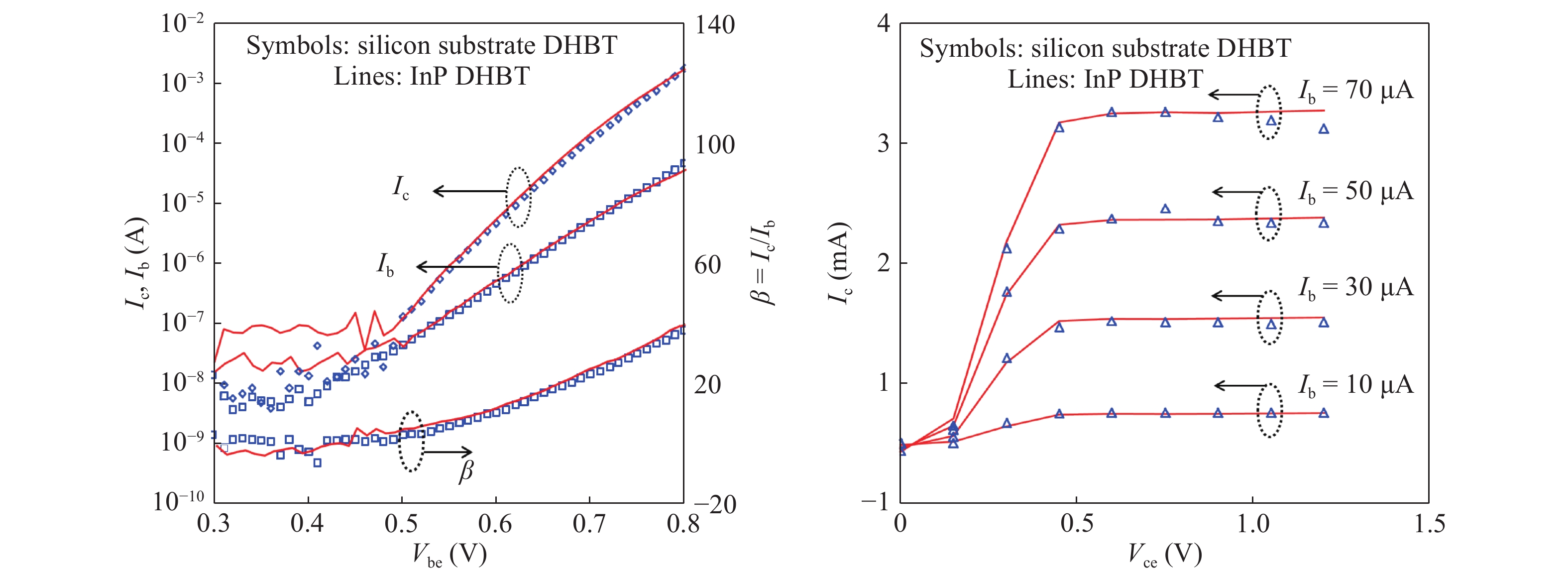 An improved large signal model for InP HEMTs is proposed in this paper. The channel current and charge model equations are constructed based on the Angelov model equations. Both the equations for channel current and gate charge models were all continuous and high order drivable, and the proposed gate charge model satisfied the charge conservation. For the strong leakage induced barrier reduction effect of InP HEMTs, the Angelov current model equations are improved. The channel current model could fit DC performance of devices. A 2 × 25 μm × 70 nm InP HEMT device is used to demonstrate the extraction and validation of the model, in which the model has predicted the DC I–V, C–V and bias related S parameters accurately.