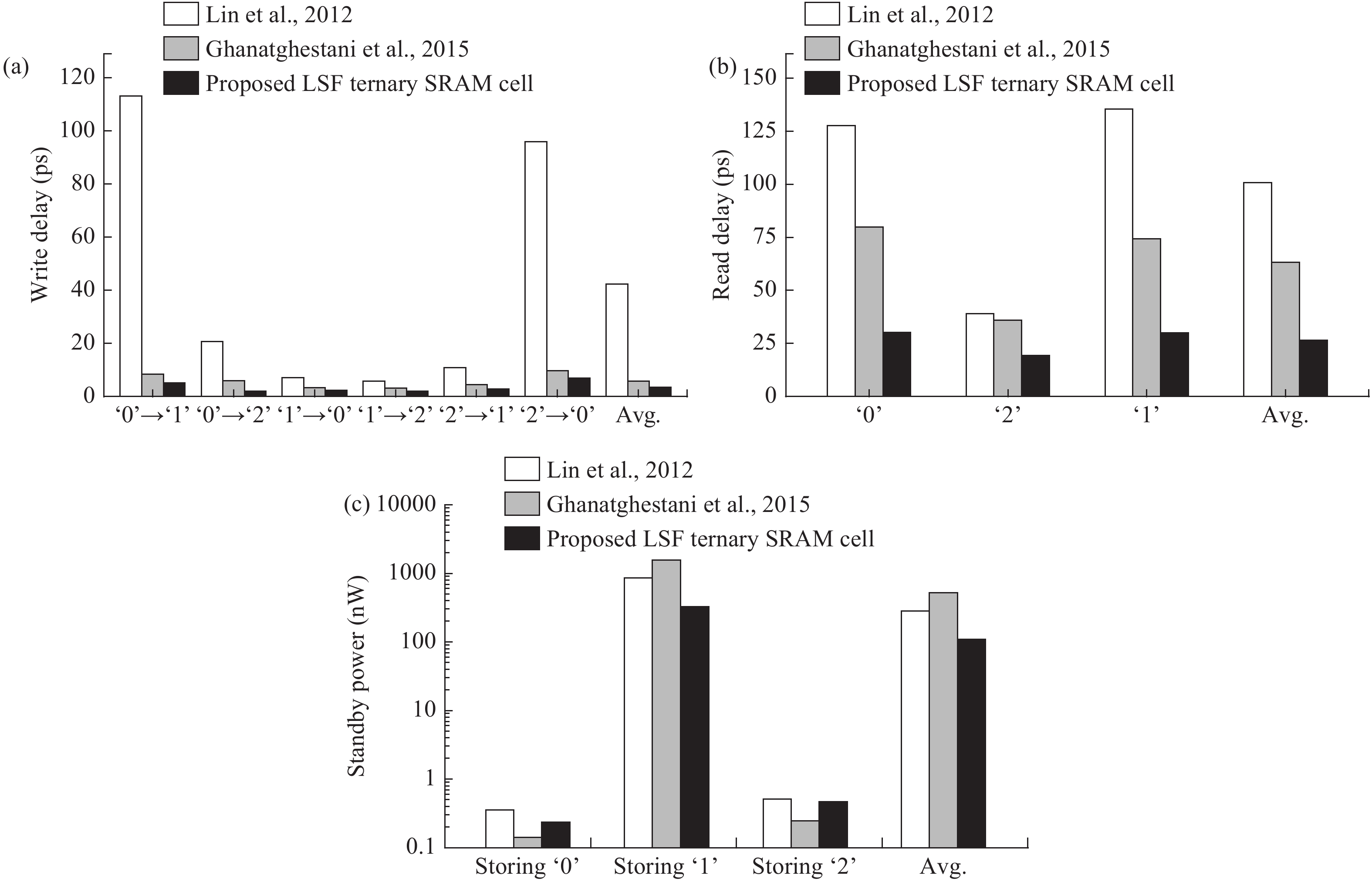 Power dissipation, speed and stability are the most important parameters for multiple-valued SRAM design. To reduce the power consumption and further improve the performance of the ternary SRAM cell, we propose a low standby-power fast ternary SRAM cell based on carbon nanotube field effect transistors (CNFETs). The performance is simulated in terms of three criteria including standby-power, delay (write and read) and stability (RSNM). Compared to the novel ternary SRAM cell, our results show that the average standby-power, write and read delay of the proposed cell are reduced by 78.1%, 39.6% and 58.2%, respectively. In addition, the RSNM under process variations is 2.01× and 1.95× of the conventional and novel ternary SRAM cells, respectively.