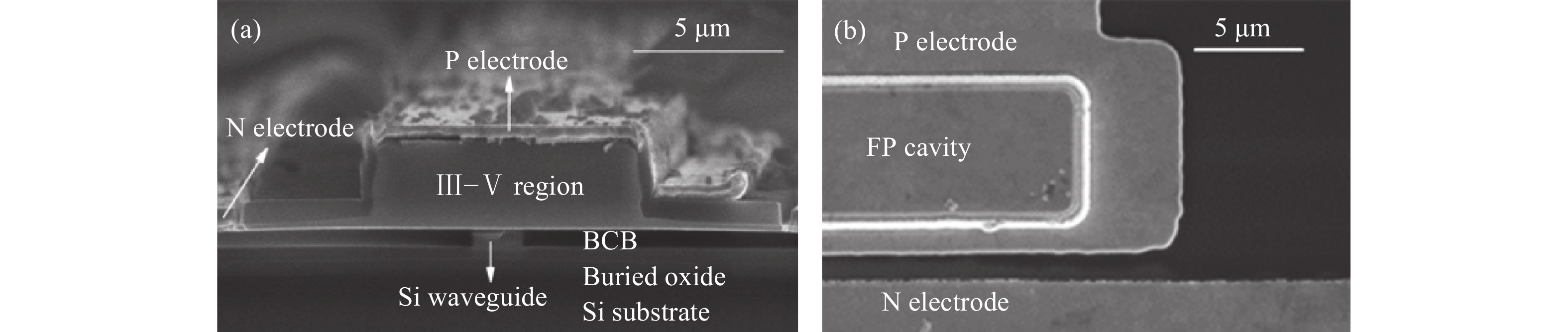 We have proposed and demonstrated hybrid AlGaInAs/Si Fabry–Pérot (FP) lasers, with the FP cavity facet covered by the p-electrode metal for enhancing mode confinement. Continuous-wave lasing is obtained at room temperature with a threshold current of 45 mA for the hybrid FP laser with a cavity length of 415 μm and a width of 7 μm. Near-field optical microscope images indicate an efficient output emission from the underneath evanescently-coupled silicon waveguide. Furthermore, single-mode lasing with a side-mode suppression-ratio of 29 dB and a threshold current of 16 mA is realized for the 150 μm-long hybrid FP laser.