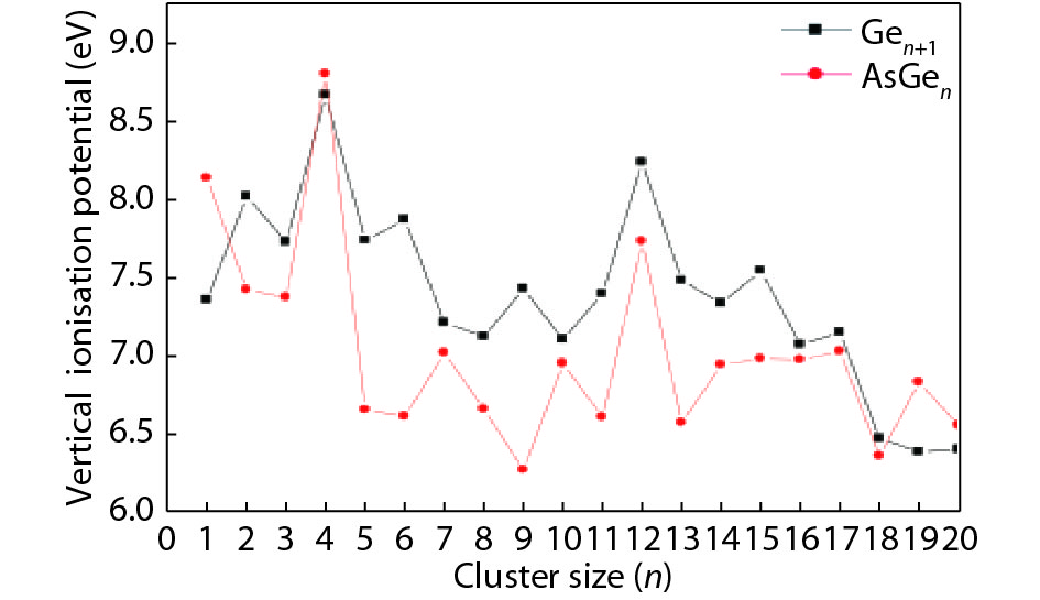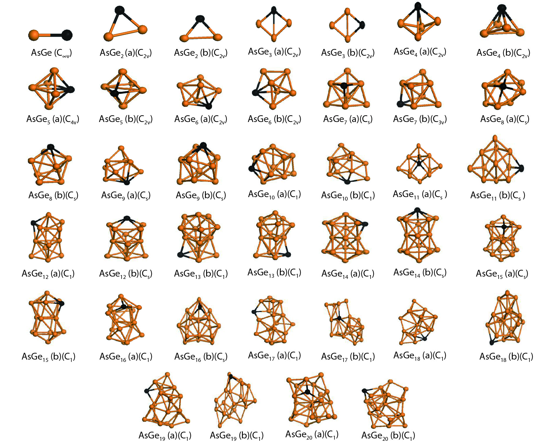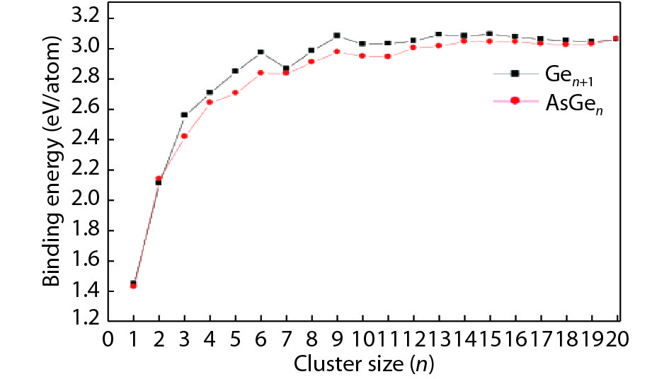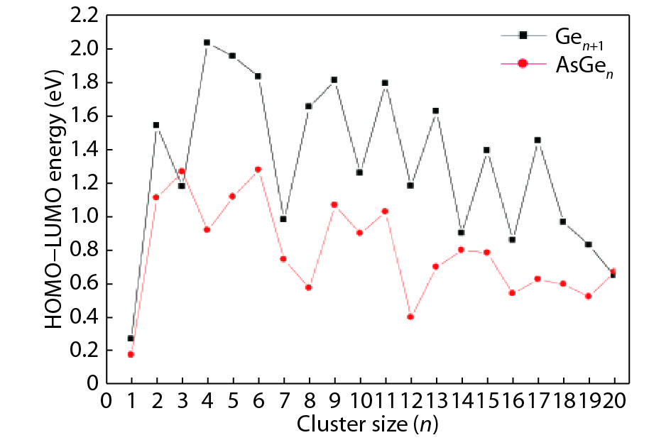 We present a systematic computational study based on the density functional theory (DFT) aiming to high light the possible effects of one As doping atom on the structural, energetic, and electronic properties of different isomers of Gen + 1 clusters with n = 1–20 atoms. By considering a large number of structures for each cluster size, the lowest-energy isomers are determined. The lowest-energy isomers reveal three-dimensional structures starting from n = 5. Their relative stability versus atomic size is examined based on the calculated binding energy, fragmentation energy, and second-order difference of energy. Doping Gen + 1 clusters with one As atom does not improve their stability. The electronic properties as a function of the atomic size are also discussed from the calculated HOMO–LUMO energy gap, vertical ionization potential, vertical electron affinity, and chemical hardness. The obtained results are significantly affected by the inclusion of one As atom into a Gen cluster.