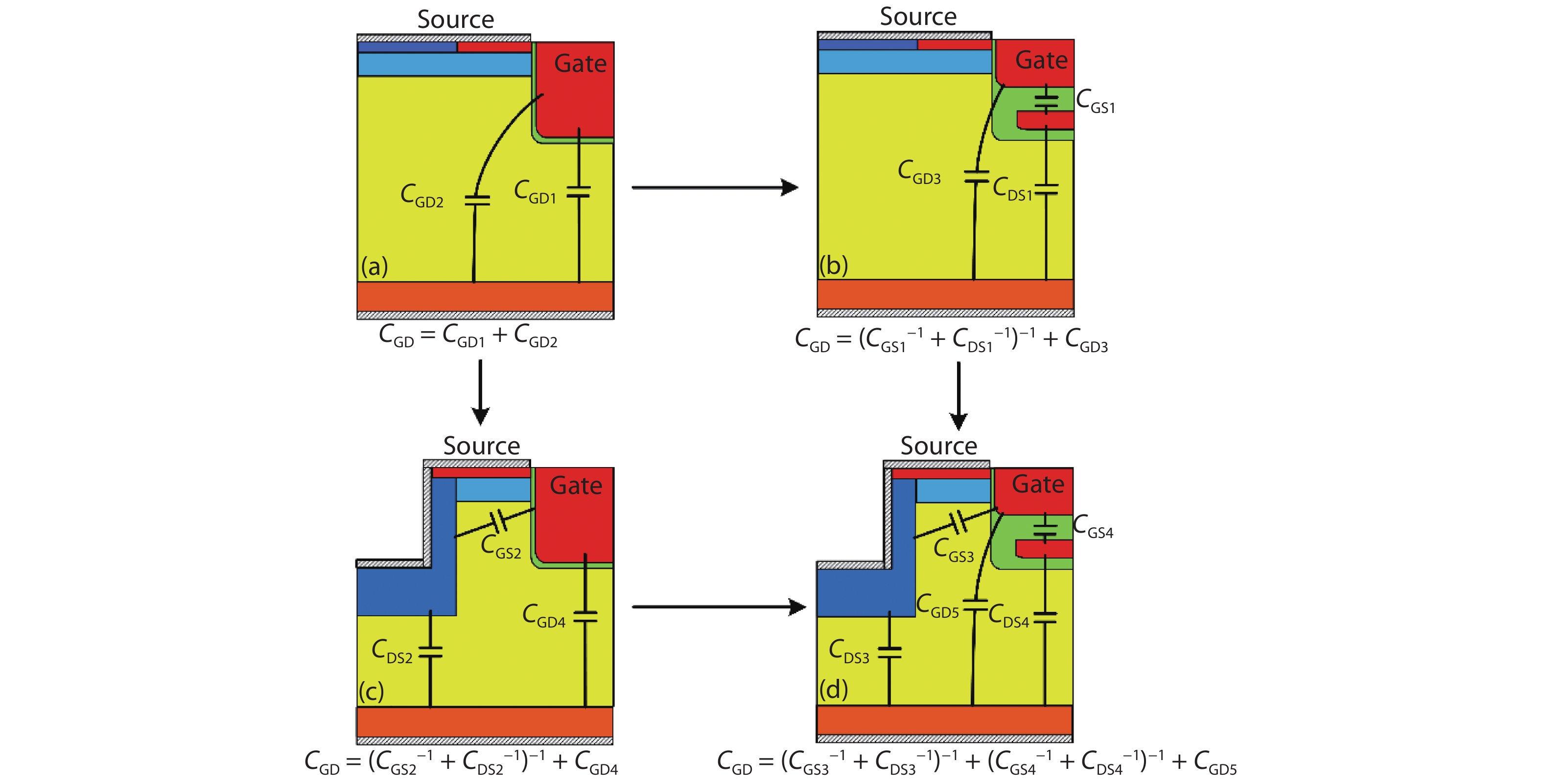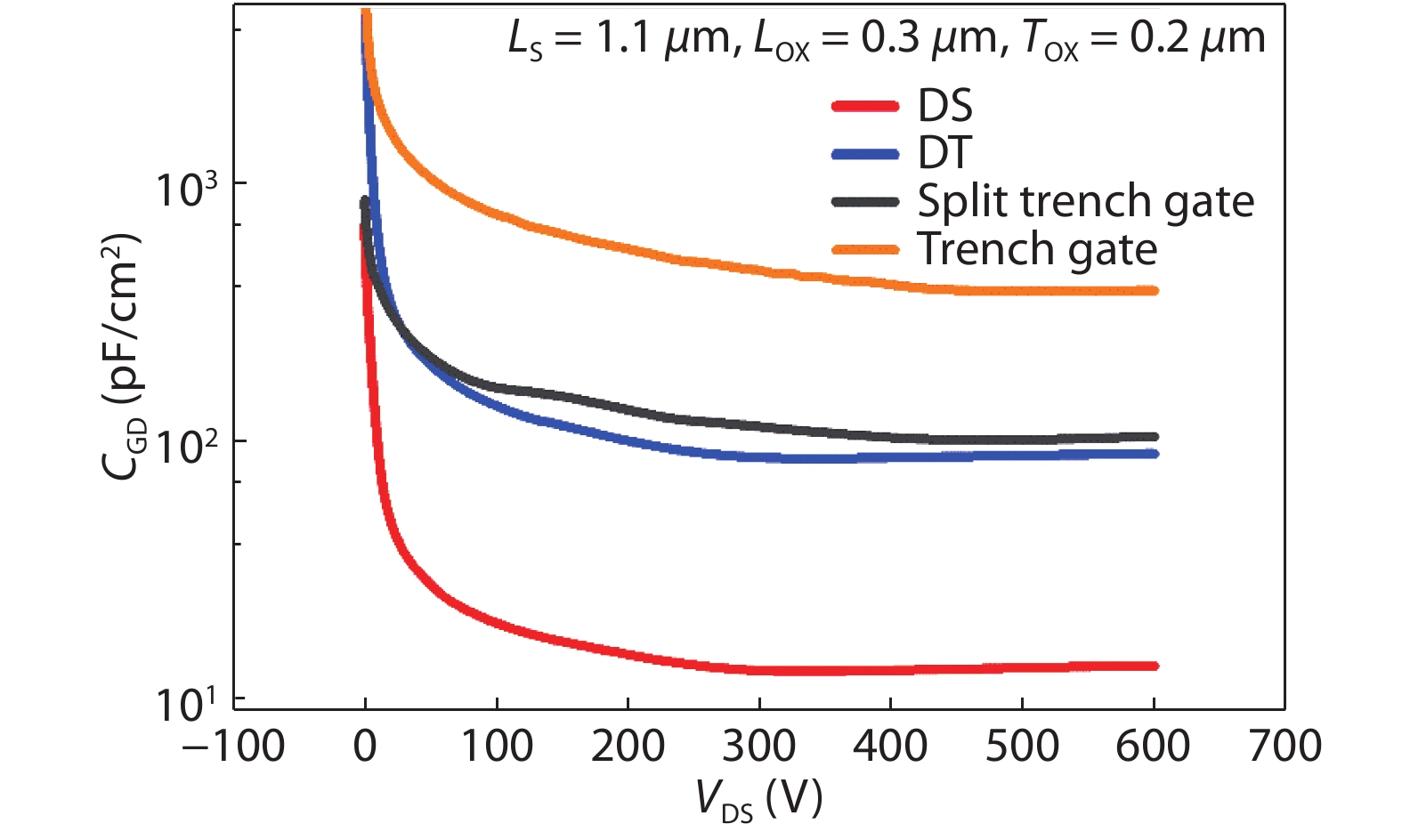 A new ultralow gate–drain charge (QGD) 4H-SiC trench MOSFET is presented and its mechanism is investigated by simulation. The novel MOSFET features double shielding structures (DS-MOS): one is the grounded split gate (SG), the other is the P+ shielding region (PSR). Both the SG and the PSR reduce the coupling effect between the gate and the drain, and transform the most part of the gate–drain capacitance (CGD) into the gate–source capacitance (CGS) and drain–source capacitance (CDS) in series. Thus the CGD is reduced and the proposed DS-MOS obtains ultralow QGD. Compared with the double-trench MOSFET (DT-MOS) and the conventional trench MOSFET (CT-MOS), the proposed DS-MOS decreases the QGD by 85% and 81%, respectively. Moreover, the figure of merit (FOM), defined as the product of specific on-resistance (Ron, sp) and QGD (Ron, spQGD), is reduced by 84% and 81%, respectively.