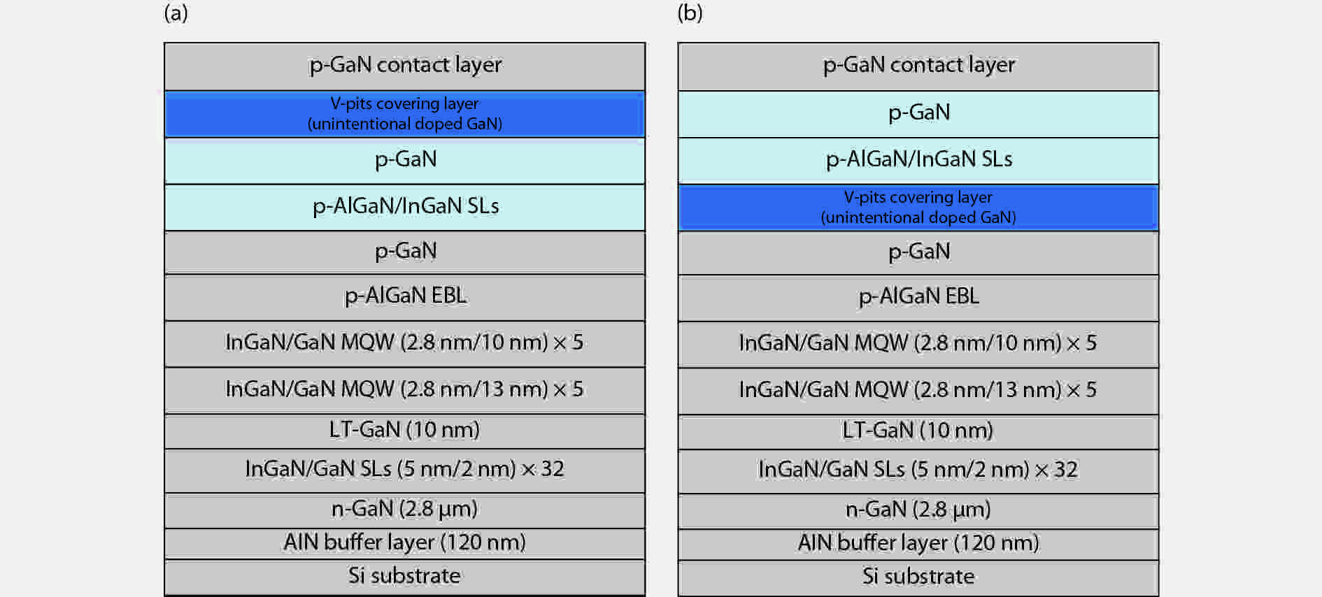 Effects of V-pits covering layer position on the optoelectronic performance of InGaN green LEDs