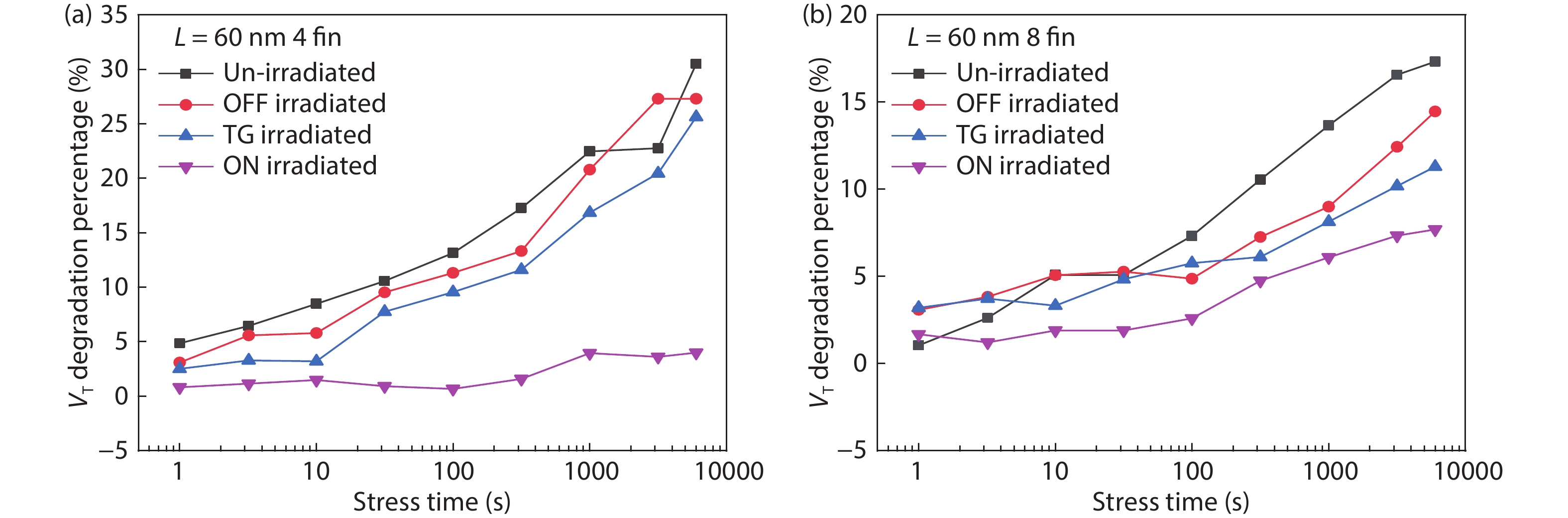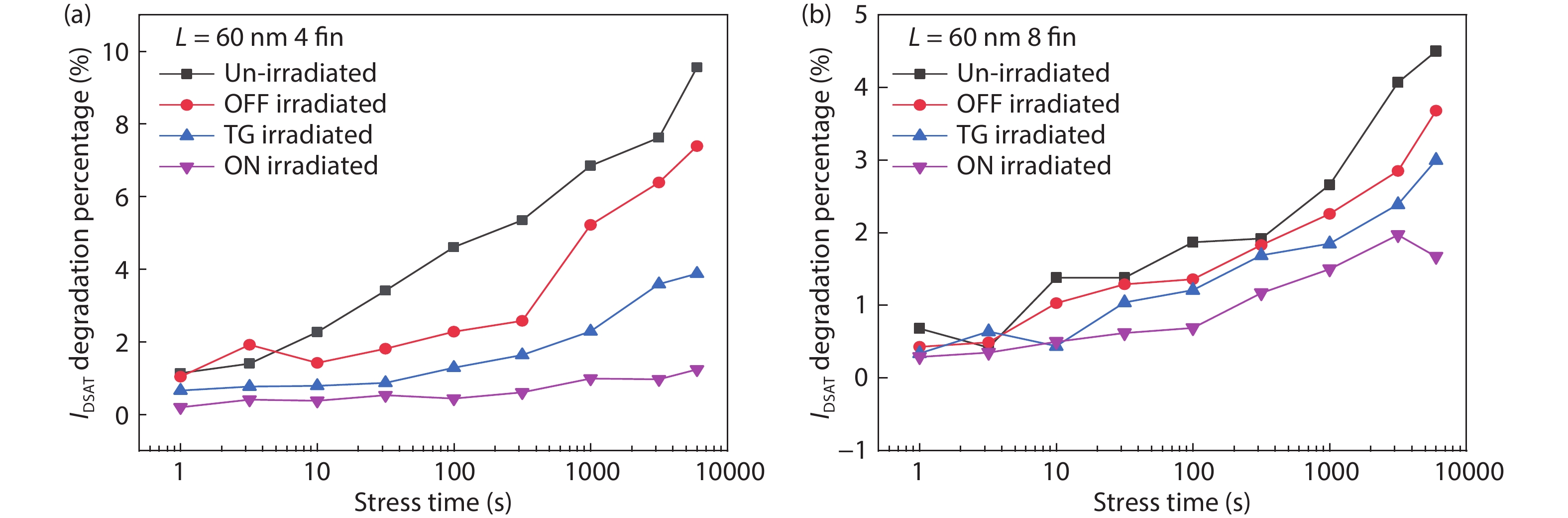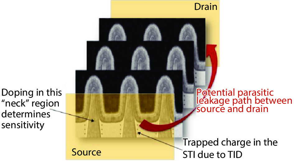 We investigate the hot carrier injection effect (HCI) and how X-ray radiation impacts the HCI of 22-nm nFinFETs as a function of device geometry and irradiation bias conditions in this paper. In the HCI test, the degradation of threshold voltage and saturation current decreases with the increase of fin number, which means that HCI weakens when the fin number increases. The reason is attributed to the coupling effect between fins. Moreover, irradiation is shown to weaken the degradation during the subsequent hot carrier test. The influence of irradiation on HCI is more obvious with ON bias than that of OFF bias and transmission gate bias. It is supposed that the Si–H bonds can be broken by irradiation before the HCI test, which is one reason for the irradiation influence on HCI. Besides, trapped charges are generated in the shallow trench isolation by the radiation, which could reduce the channel electric field, and then weaken the HCI.