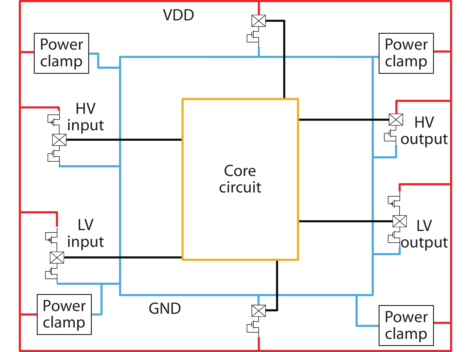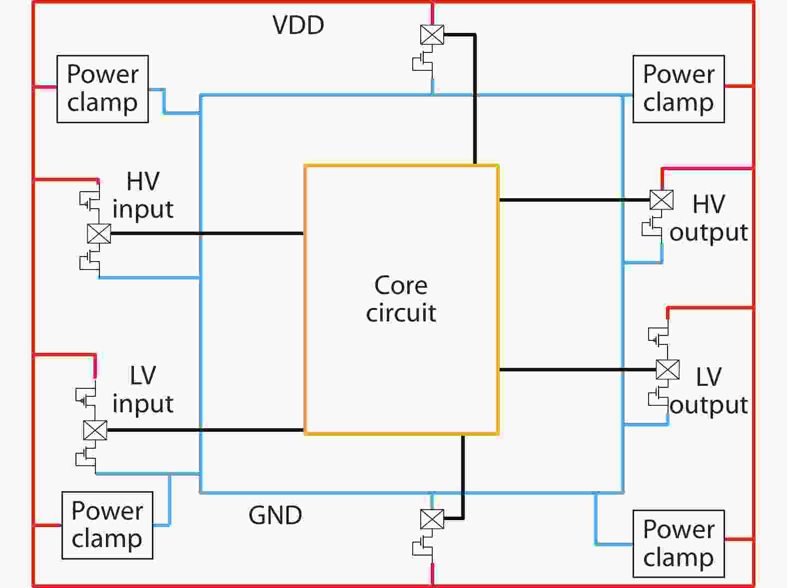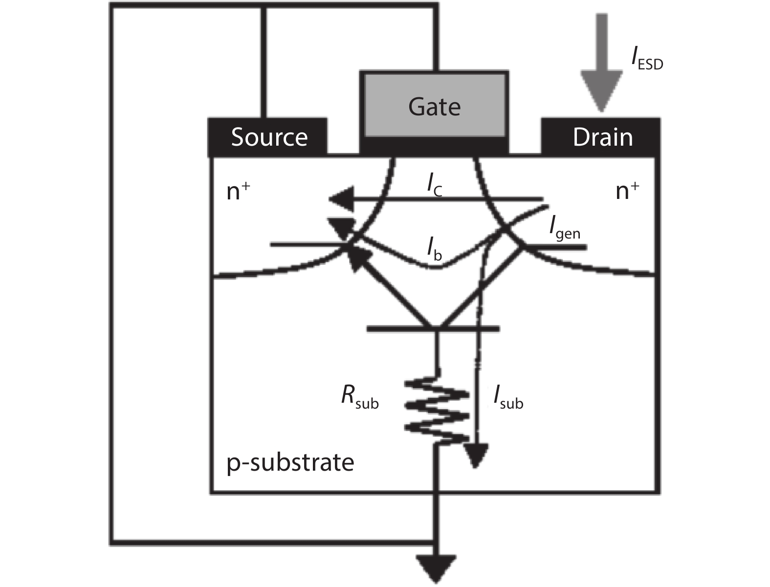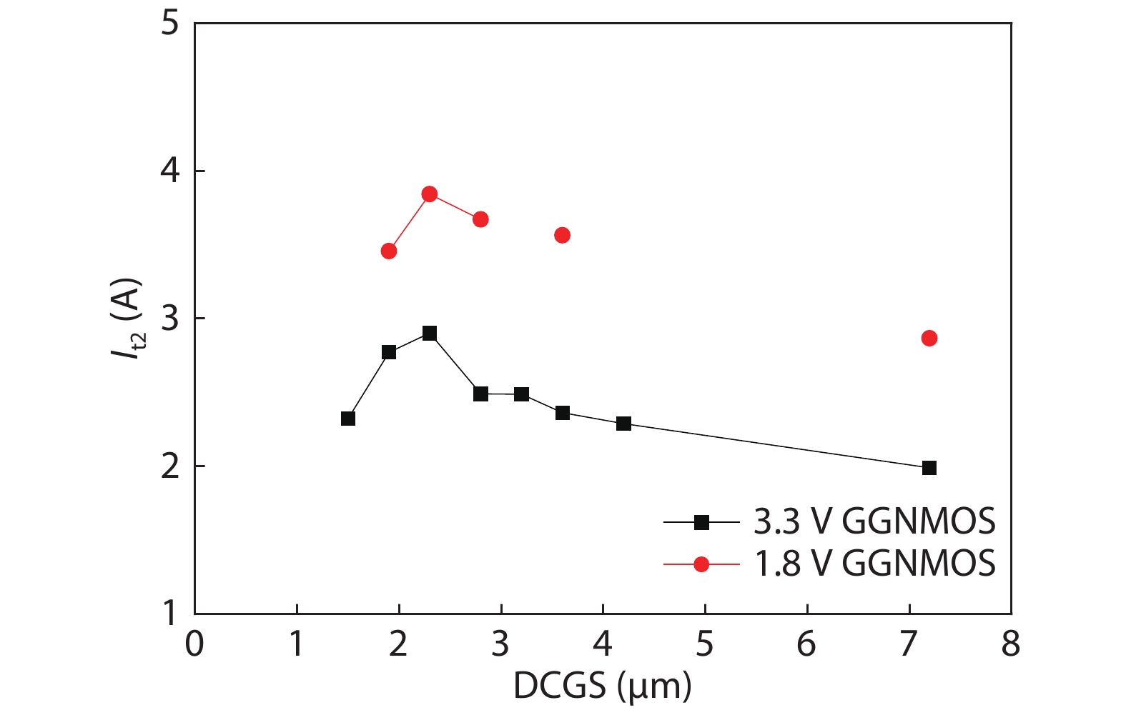 In this paper, the ESD discharge capability of GGNMOS (gate grounded NMOS) device in the radiation-hardened 0.18 μm bulk silicon CMOS process (Rad-Hard by Process: RHBP) is optimized by layout and ion implantation design. The effects of gate length, DCGS and ESD ion implantation of GGNMOS on discharge current density and lattice temperature are studied by TCAD and device simulation. The size of DCGS, multi finger number and single finger width of ESD verification structures are designed, and the discharge capacity and efficiency of GGNMOS devices in ESD are characterized by TLP test technology. Finally, the optimized GGNMOS is verified on the DSP circuit, and its ESD performance is over 3500 V in HBM mode.