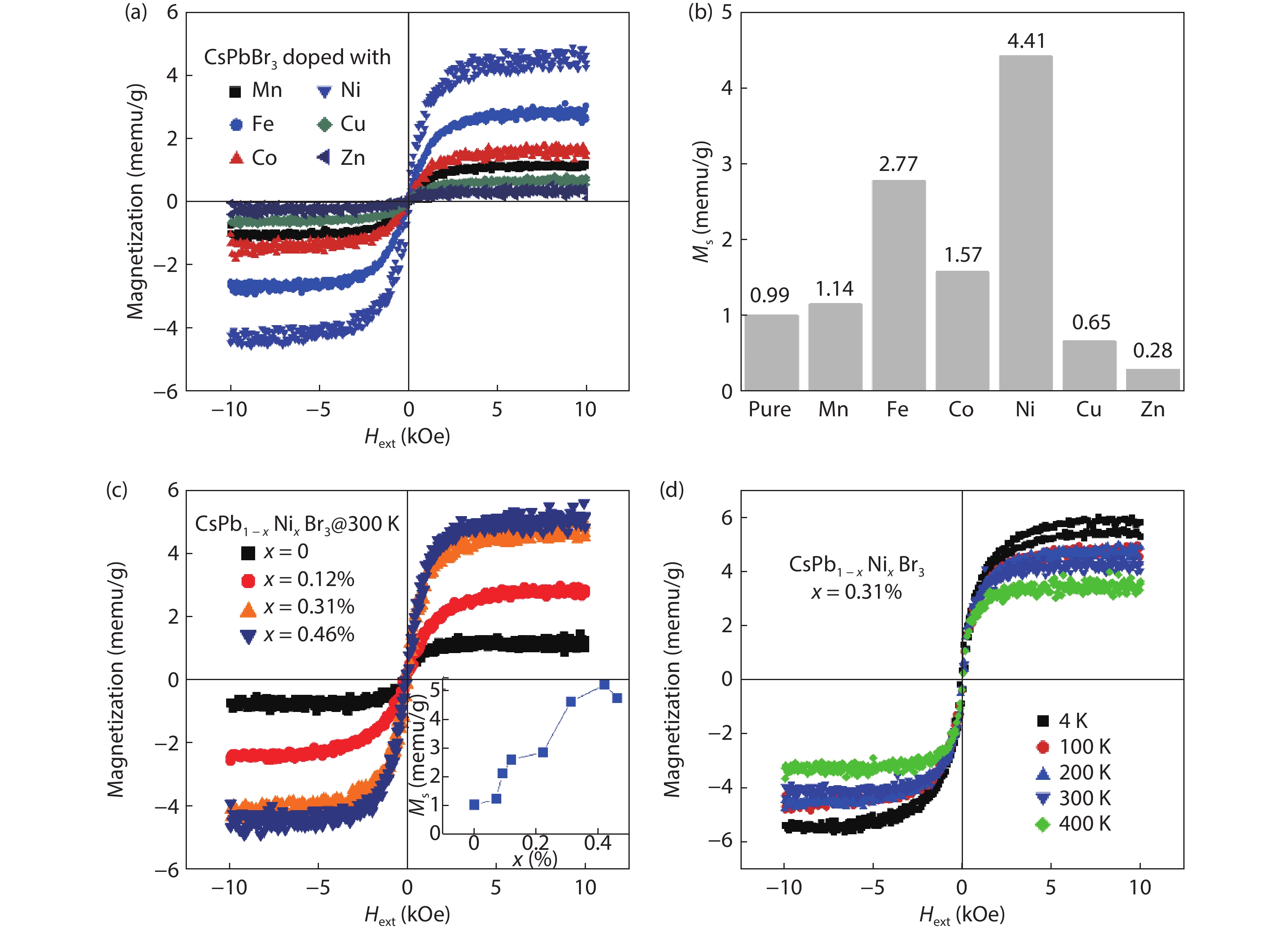 The possibility to induce a macroscopic magnetic moment in lead halide perovskites (LHPs), combined with their excellent optoelectronic properties, is of fundamental interest and has promising spintronic applications. However, these possibilities remain an open question in both theory and experiment. Here, theoretical and experimental studies are performed to explore ferromagnetic states in LHPs originated from lattice defects. First-principle calculations reveal that shallow-level Br vacancies in defective CsPbBr3 can produce spin-splitting states and the coupling between them leads to a ferromagnetic ground state. Experimentally, ferromagnetism at 300 K is observed in room-temperature synthesized CsPbBr3 nanocrystals, but is not observed in hot-injection prepared CsPbBr3 quantum dots and in CsPbBr3 single crystals, highlighting the significance played by vacancy defects. Furthermore, the ferromagnetism in the CsPbBr3 nanocrystals can be enhanced fourfold with Ni2+ ion dopants, due to enhancement of the exchange coupling between magnetic polarons. Room-temperature ferromagnetism is also observed in other LHPs, which suggests that vacancy-induced ferromagnetism may be a universal feature of solution-processed LHPs, which is useful for future spintronic devices.