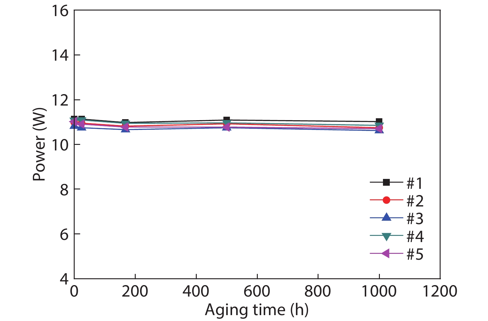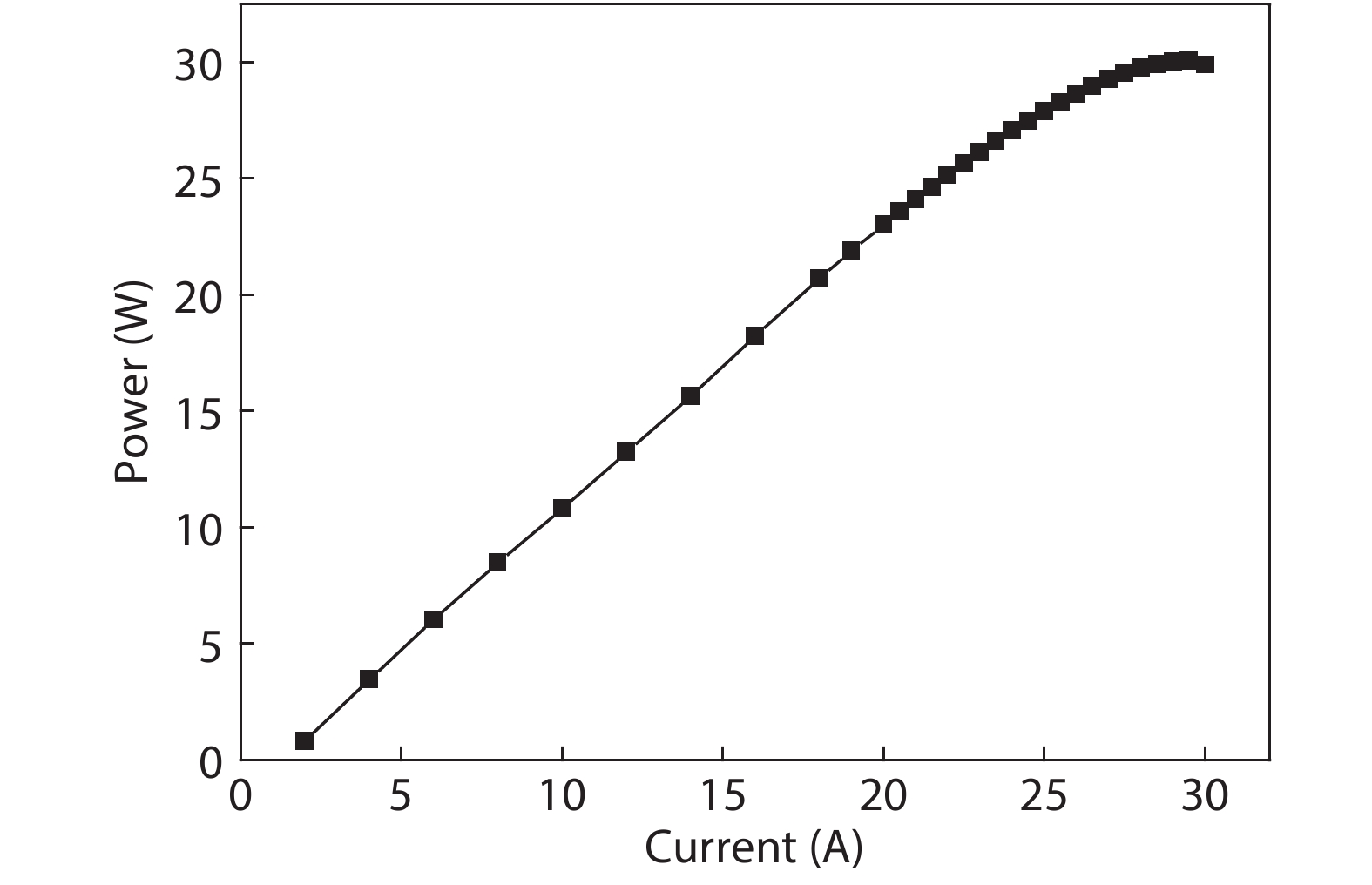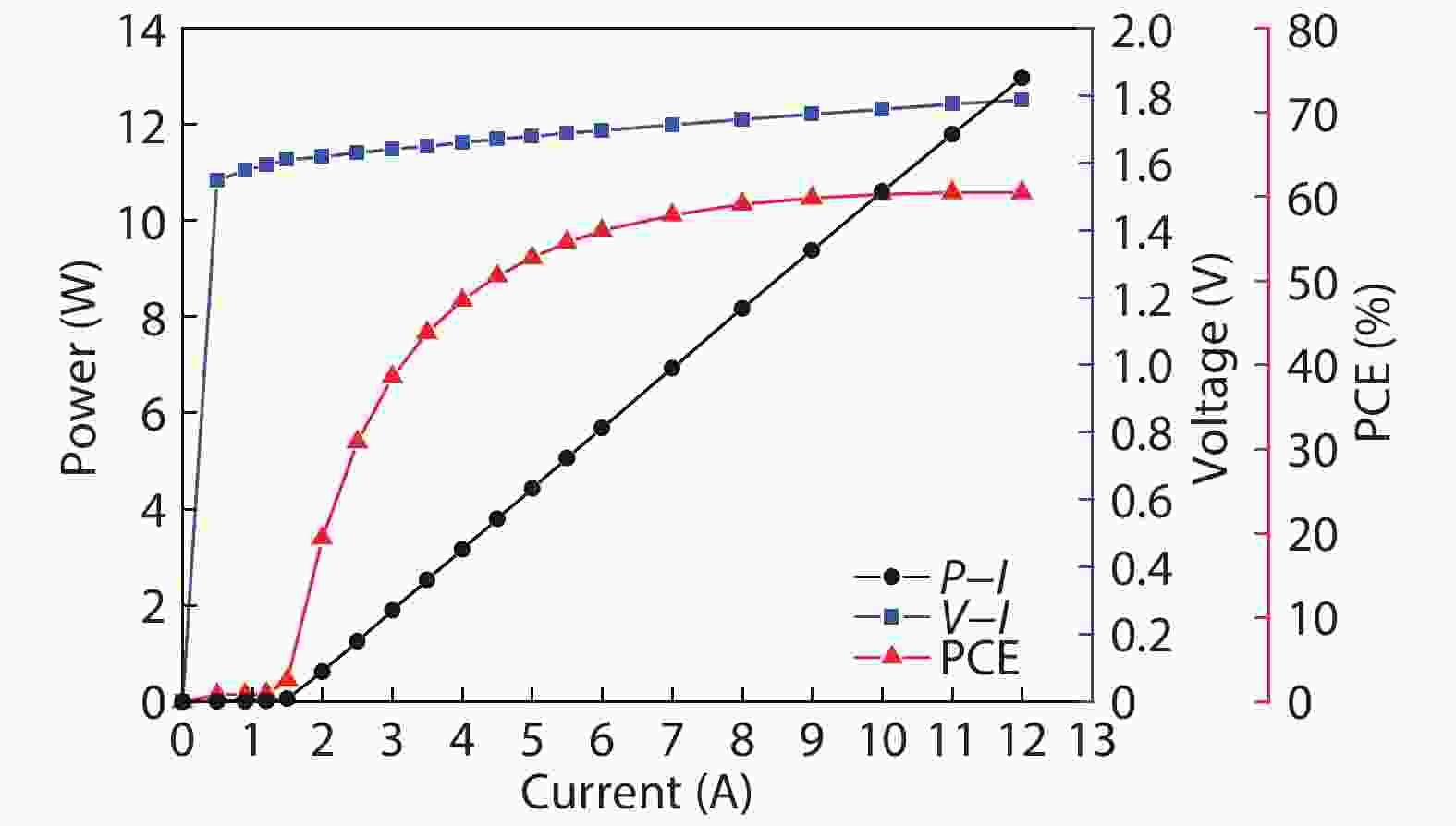 A very highly efficient InGaAlAs/AlGaAs quantum-well structure was designed for 808 nm emission, and laser diode chips 390-μm-wide aperture and 2-mm-long cavity length were fabricated. Special pretreatment and passivation for the chip facets were performed to achieve improved reliability performance. The laser chips were p-side-down mounted on the AlN sub-mount, and then tested at continuous wave (CW) operation with the heat-sink temperature setting to 25 °C using a thermoelectric cooler (TEC). As high as 60.5% of the wall-plug efficiency (WPE) was achieved at the injection current of 11 A. The maximum output power of 30.1 W was obtained at 29.5 A when the TEC temperature was set to 12 °C. Accelerated life-time test showed that the laser diodes had lifetimes of over 62 111 h operating at rated power of 10 W.