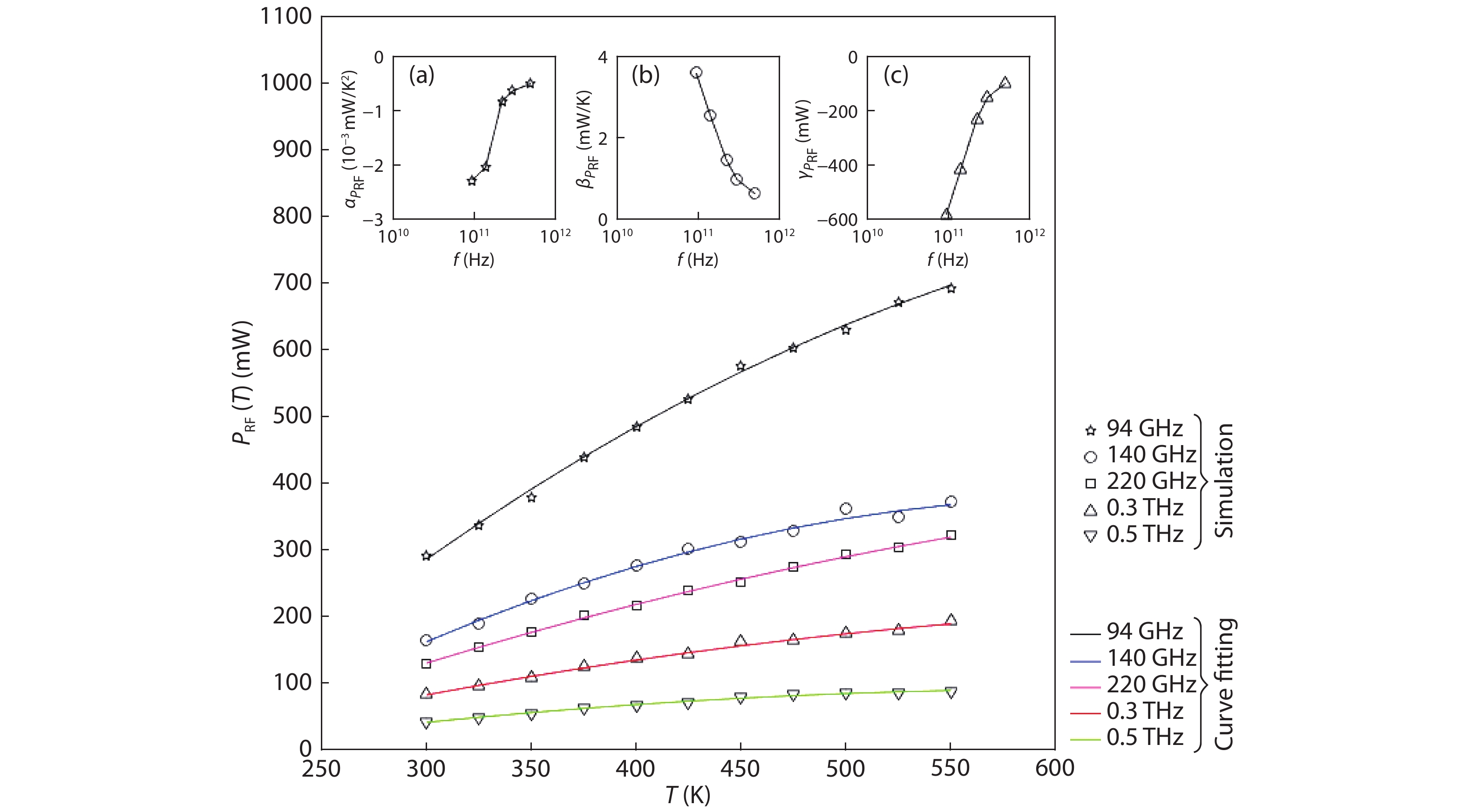The influence of self-heating on the millimeter-wave (mm-wave) and terahertz (THz) performance of double-drift region (DDR) impact avalanche transit time (IMPATT) sources based on silicon (Si) has been investigated in this paper. The dependences of static and large-signal parameters on junction temperature are estimated using a non-sinusoidal voltage excited (NSVE) large-signal simulation technique developed by the authors, which is based on the quantum-corrected drift-diffusion (QCDD) model. Linear variations of static parameters and non-linear variations of large-signal parameters with temperature have been observed. Analytical expressions representing the temperature dependences of static and large-signal parameters of the diodes are developed using linear and 2nd degree polynomial curve fitting techniques, which will be highly useful for optimizing the thermal design of the oscillators. Finally, the simulated results are found to be in close agreement with the experimentally measured data.