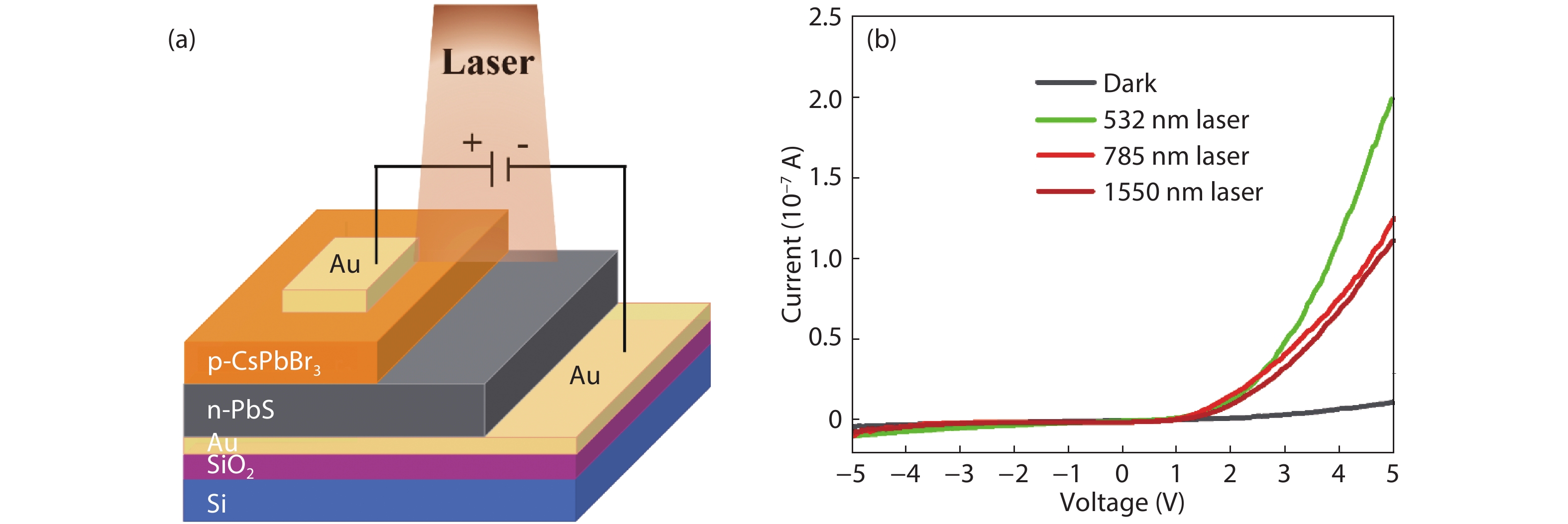 Epitaxial high-crystallization film semiconductor heterostructures has been proved to be an effective method to prepare single-crystal films for different functional devices in modern microelectronics, electro-optics, and optoelectronics. With superior semiconducting properties, halide perovskite materials are rising as building blocks for heterostructures. Here, the conformal vapor phase epitaxy of CsPbBr3 on PbS single-crystal films is realized to form the CsPbBr3/PbS heterostructures via a two-step vapor deposition process. The structural characterization reveals that PbS substrates and the epilayer CsPbBr3 have clear relationships: CsPbBr3(110) // PbS(100), CsPbBr3[