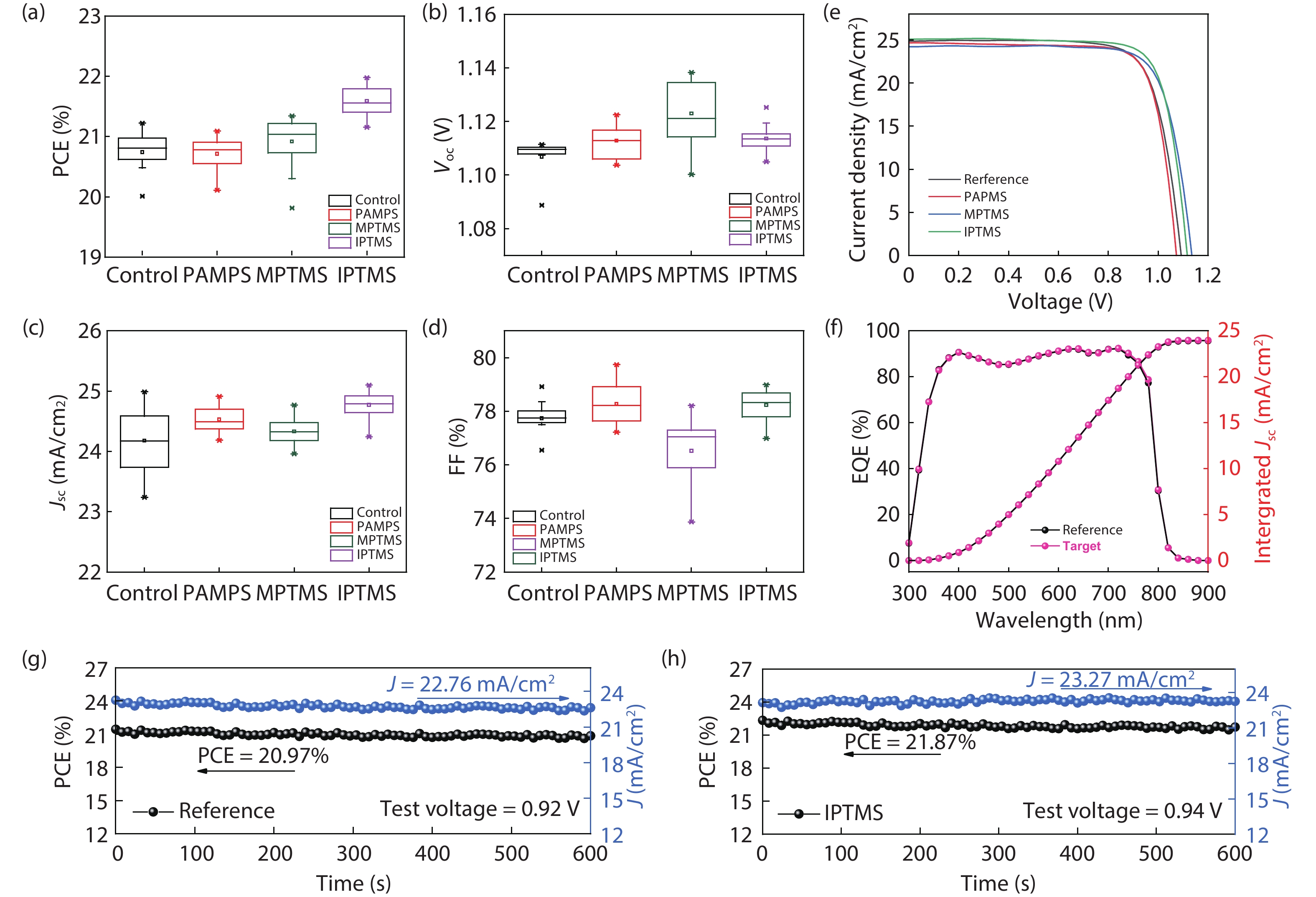 Interfacial engineering has made an outstanding contribution to the development of high-efficiency perovskite solar cells (PSCs). Here, we introduce an effective interface passivation strategy via methoxysilane molecules with different terminal groups. The power conversion efficiency (PCE) has increased from 20.97% to 21.97% after introducing a 3-isocyanatopropyltrimethoxy silane (IPTMS) molecule with carbonyl group, while a trimethoxy[3-(phenylamino)propyl] silane (PAPMS) molecule containing aniline group deteriorates the photovoltaic performance as a consequence of decreased open circuit voltage. The improved performance after IPTMS treatment is ascribed to the suppression of non-radiative recombination and enhancement of carrier transportation. In addition, the devices with carbonyl group modification exhibit outstanding thermal stability, which maintain 90% of its initial PCE after 1500 h exposure. This work provides a guideline for the design of passivation molecules aiming to deliver the efficiency and thermal stability simultaneously.