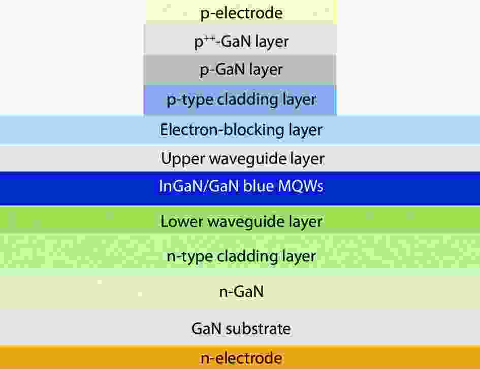 In this work, we reported the room-temperature continuous-wave operation of 6.0 W GaN-based blue laser diode (LD), and its stimulated emission wavelength is around 442 nm. The GaN-based high power blue LD is grown on a c-plane GaN substrate by metal organic chemical vapor deposition (MOCVD), and the width and length of the ridge waveguide structure are 30 and 1200 μm, respectively. The threshold current is about 400 mA, and corresponding threshold current density is 1.1 kA/cm2.