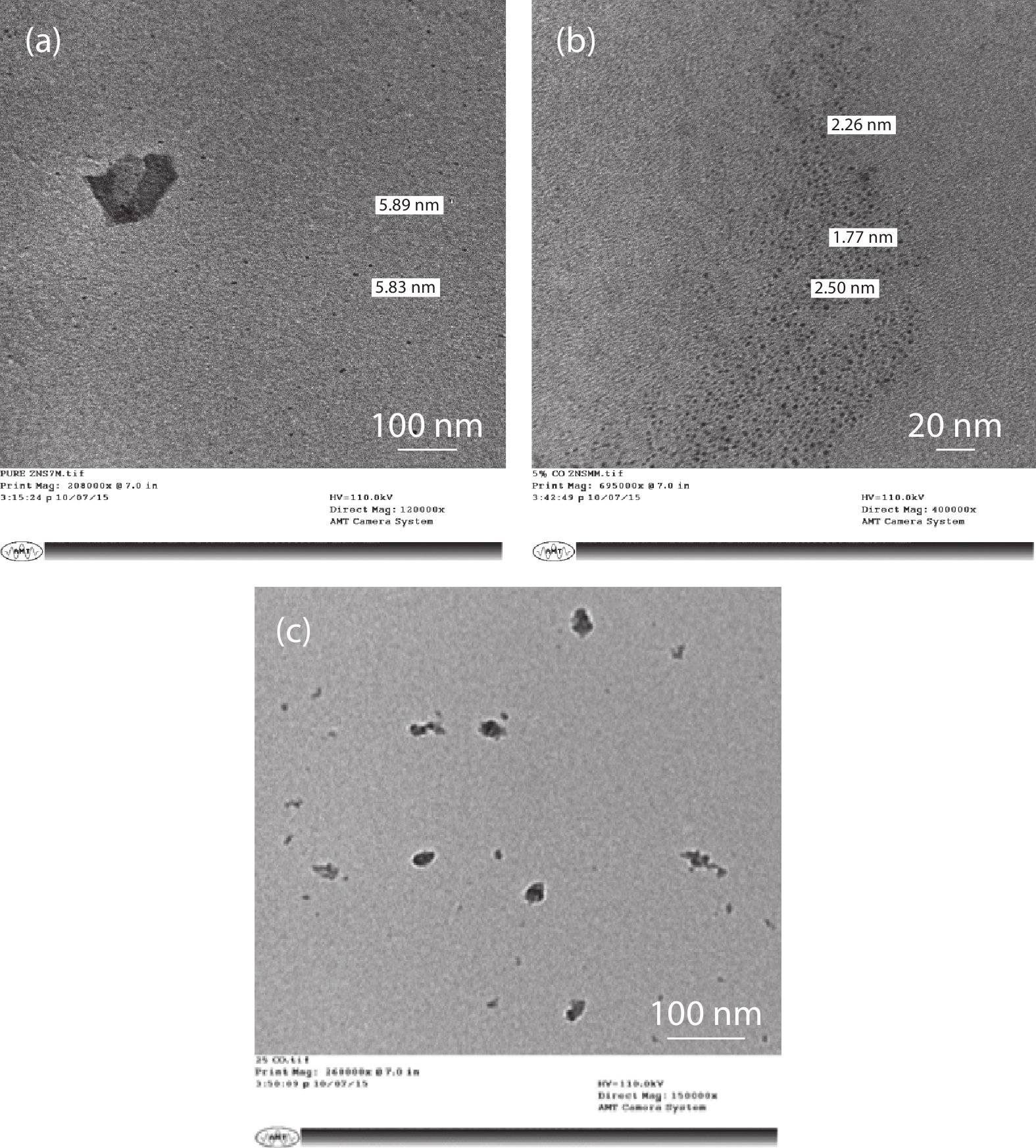 In the present work, a solution-based co-precipitation method has been adopted to synthesize pure and cobalt-doped ZnS quantum dots and characterized by XRD, SEM, TEM with EDX, FTIR and gas sensing properties. XRD analysis has shown a single phase of ZnS quantum dots having a zinc blend structure. TEM and XRD line broadening indicated that the average crystallite size in the sample is in the range of 2 to 5 nm. SEM micrographs show spherical-shaped quantum dots. FTIR studies show that cobalt has been successfully doped into the ZnS cubic lattice. EDX spectra have analyzed the elemental presence in the samples and it is evident that the spectra confirmed the presence of cobalt (Co), zinc (Zn), oxygen (O), and sulphur (S) elements only and no other impurities are observed. The ZnS-based quantum dot sensors reveal high sensitivity towards 50 ppm of ammonia vapors at an operating temperature of 70 °C. Hence, ZnS-based quantum dots can be a promising and quick traceable sensor towards ammonia sensing applications with good response and recovery time.