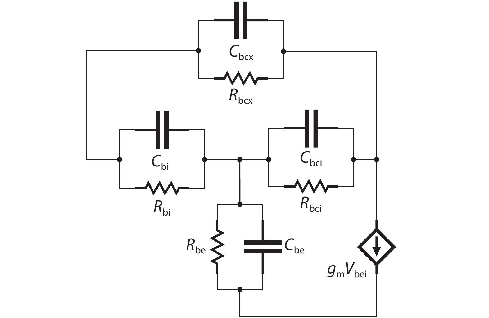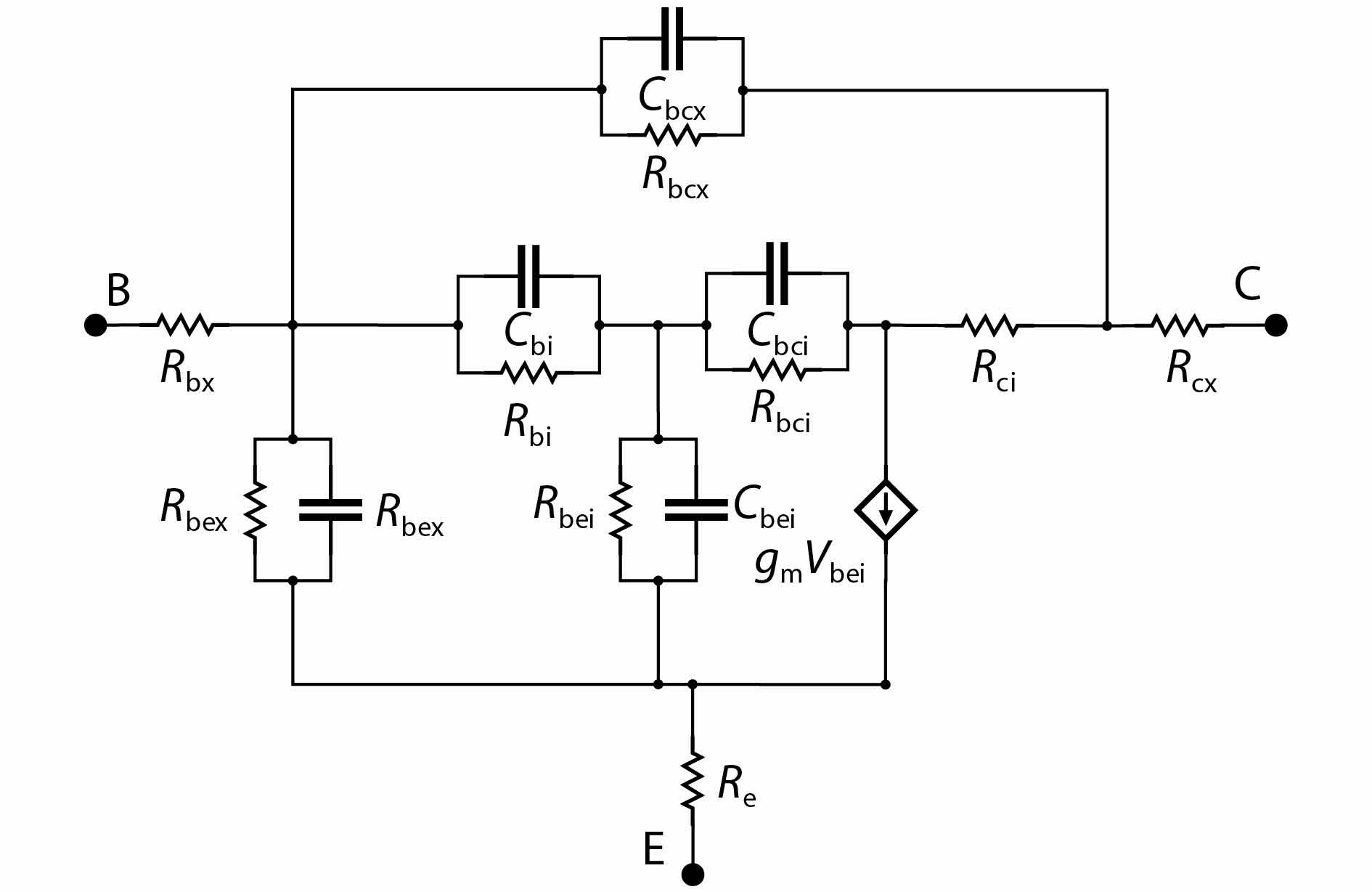 An improved small-signal equivalent circuit of HBT concerning the AC current crowding effect is proposed in this paper. AC current crowding effect is modeled as a parallel RC circuit composed of Cbi and Rbi, with distributed base-collector junction capacitance also taken into account. The intrinsic portion is taken as a whole and extracted directly from the measured S-parameters in the whole frequency range of operation without any special test structures. An HBT device with a 2 × 20 μm2 emitter-area under three different biases were used to demonstrate the extraction and verify the accuracy of the equivalent circuit.