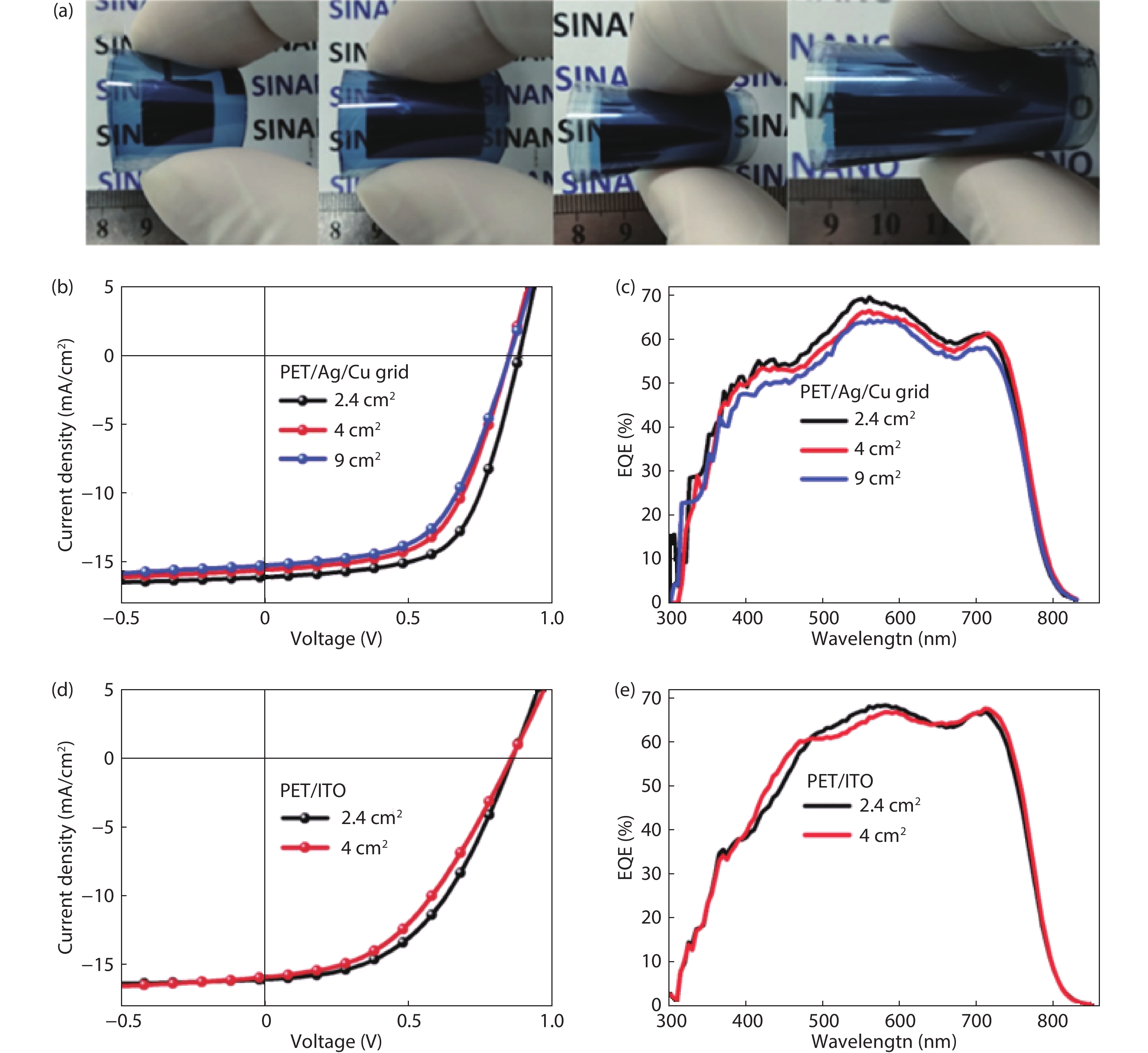 Over 1 cm2 flexible organic solar cells