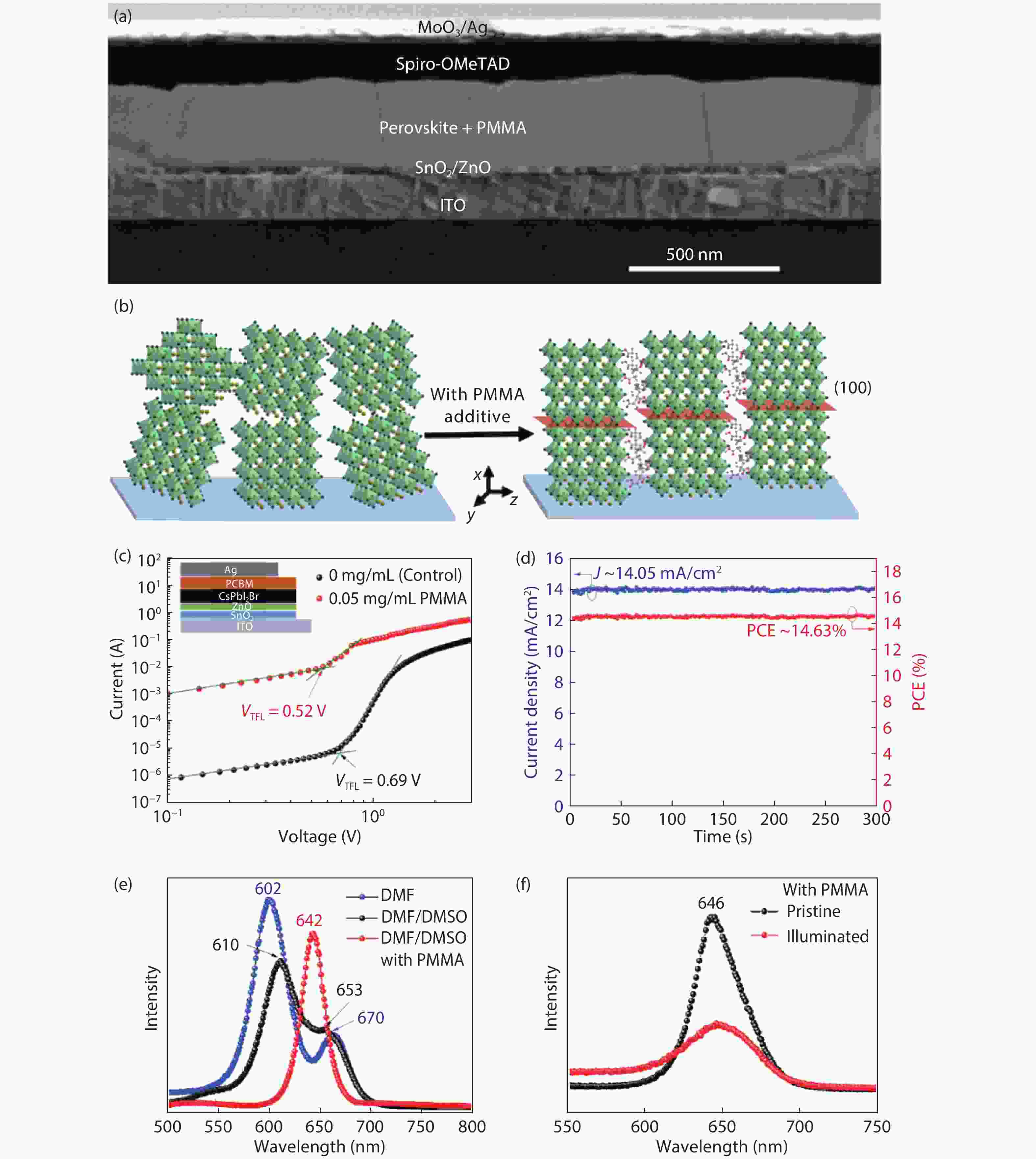 Efficient and photostable CsPbI2Br solar cells realized by adding PMMA