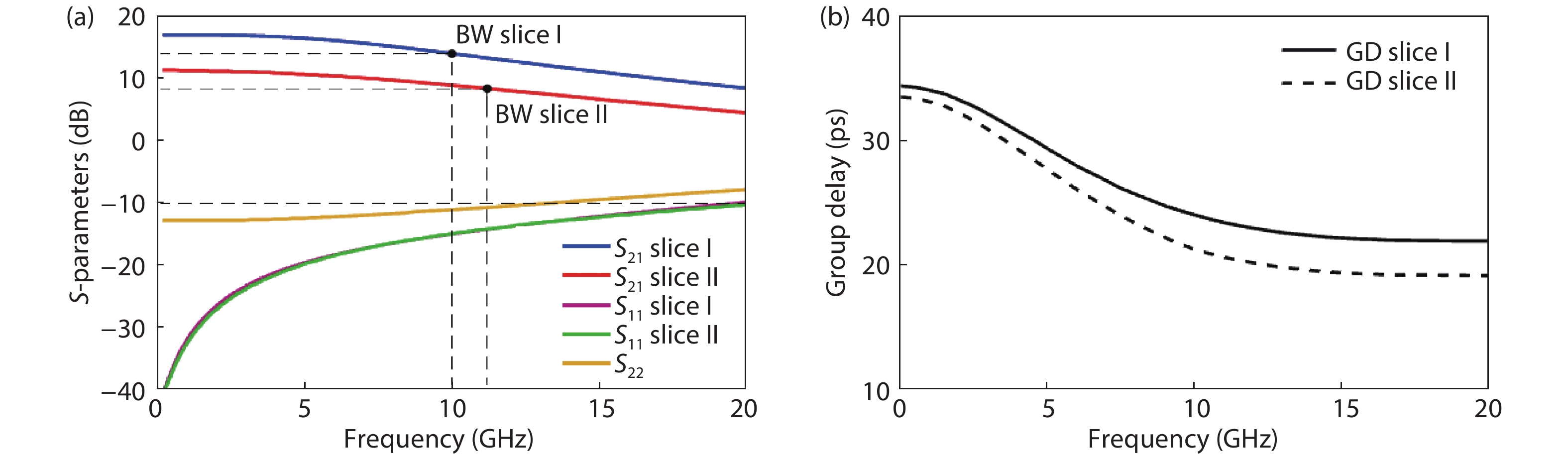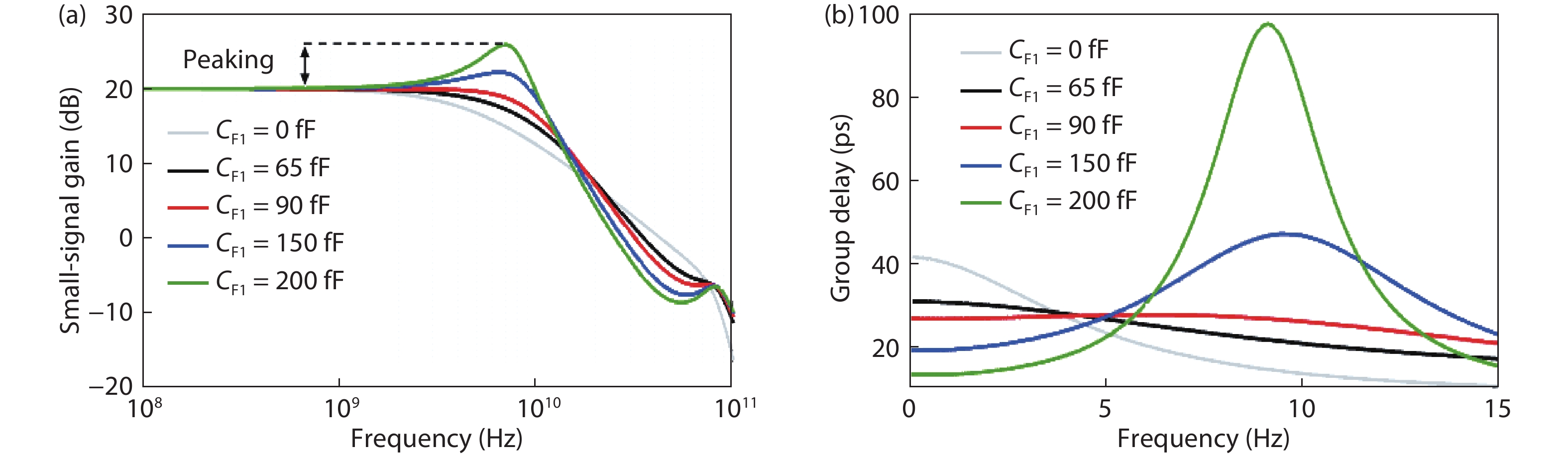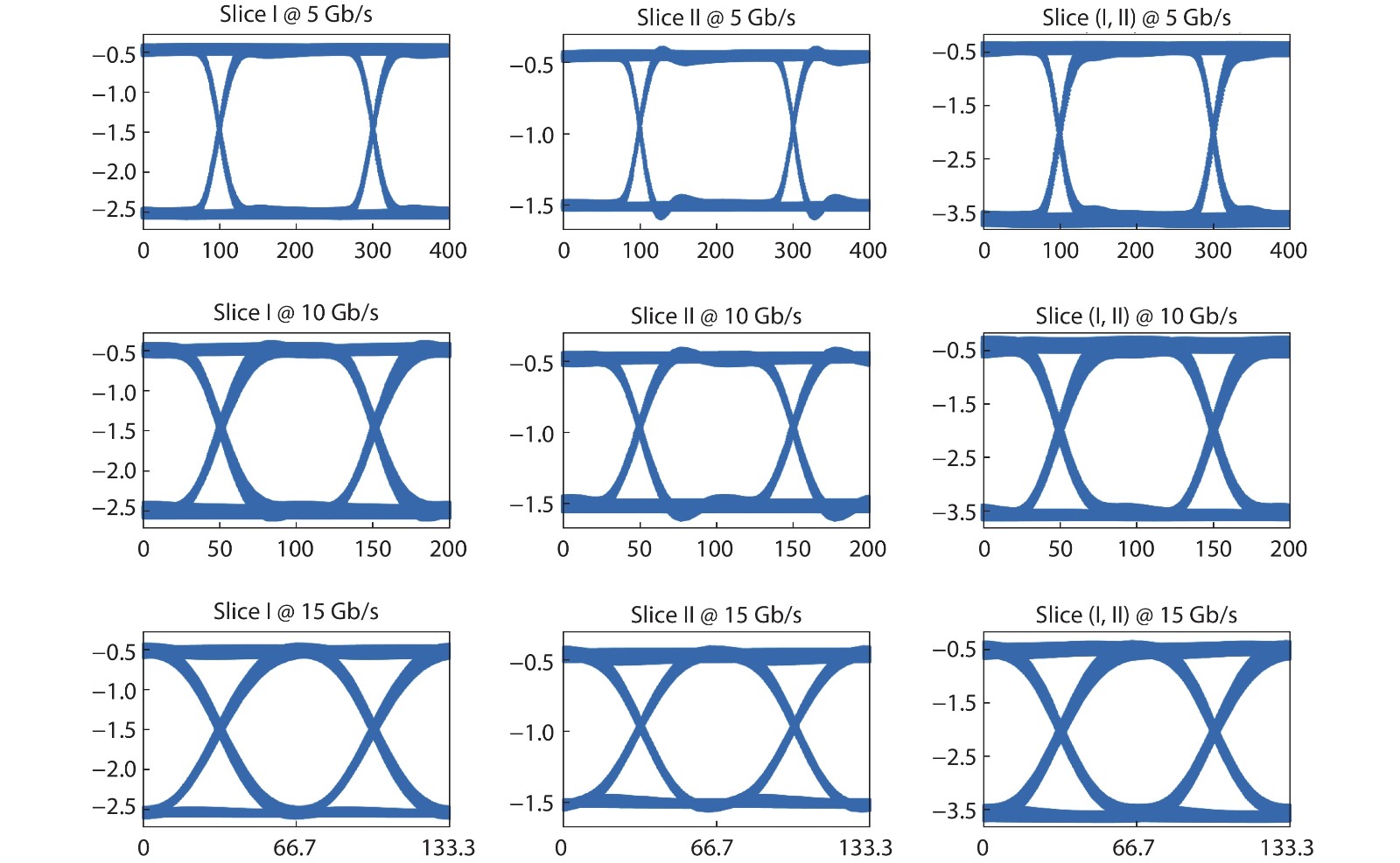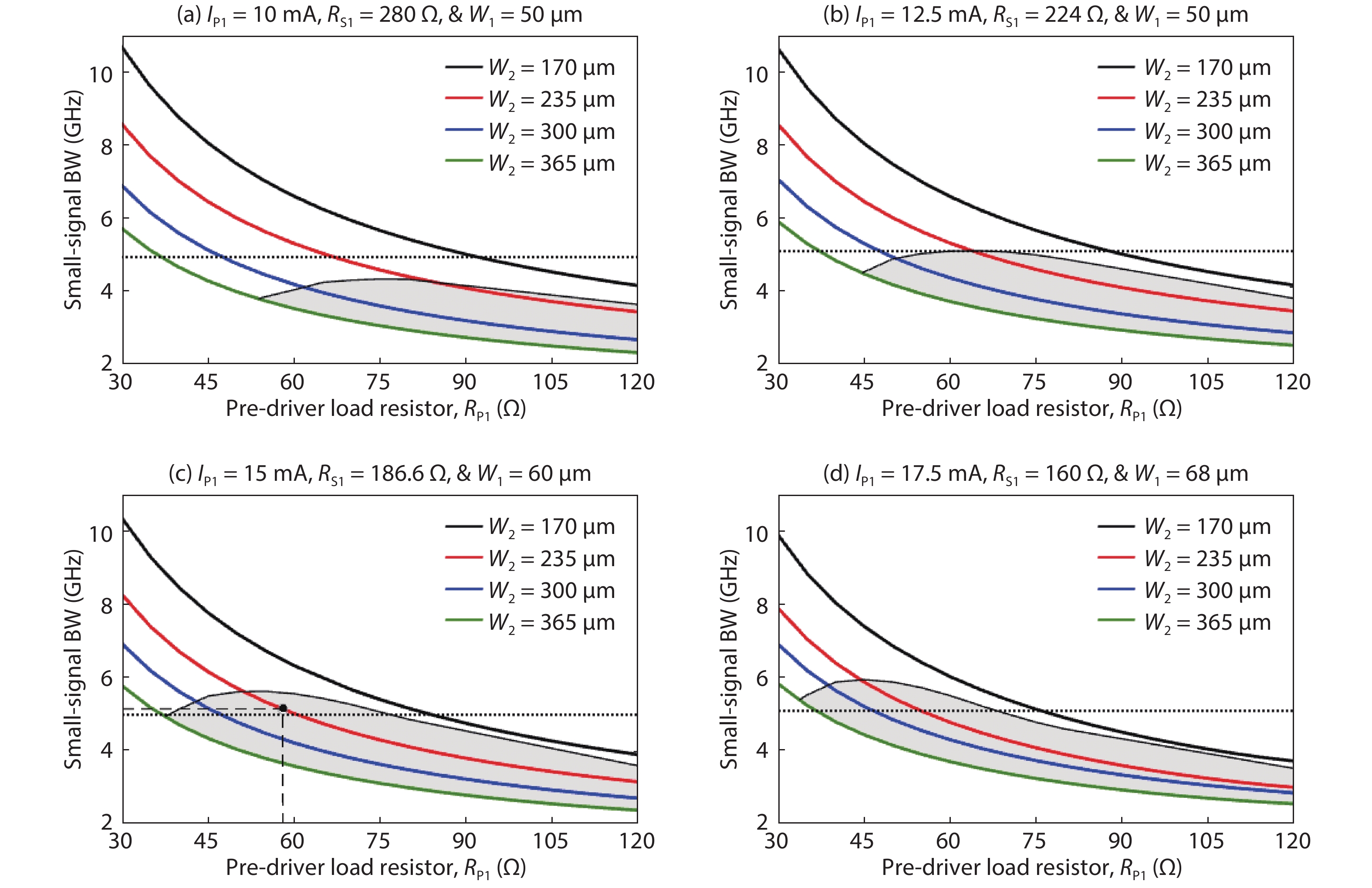 This paper presents the design and testing of a 15 Gbps non-return-to-zero (NRZ), 30 Gbps 4-level pulse amplitude modulation (PAM4) configurable laser diode driver (LDD) implemented in 0.15-μm GaAs E-mode pHEMT technology. The driver bandwidth is enhanced by utilizing cross-coupled neutralization capacitors across the output stage. The output transmission-line back-termination, which absorbs signal reflections from the imperfectly matched load, is performed passively with on-chip 50-? resistors. The proposed 30 Gbps PAM4 LDD is implemented by combining two 15 Gbps-NRZ LDDs, as the high and low amplification paths, to generate PAM4 output current signal with levels of 0, 40, 80, and 120 mA when driving 25-? lasers. The high and low amplification paths can be used separately or simultaneously as a 15 Gbps-NRZ LDD. The measurement results show clear output eye diagrams at speeds of up to 15 and 30 Gbps for the NRZ and PAM4 drivers, respectively. At a maximum output current of 120 mA, the driver consumes 1.228 W from a single supply voltage of –5.2 V. The proposed driver shows a high current driving capability with a better output power to power dissipation ratio, which makes it suitable for driving high current distributed feedback (DFB) lasers. The chip occupies a total area of 0.7 × 1.3 mm2.