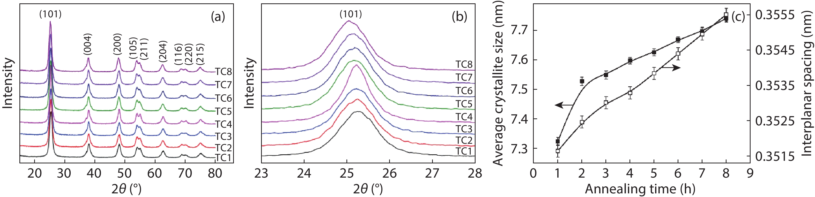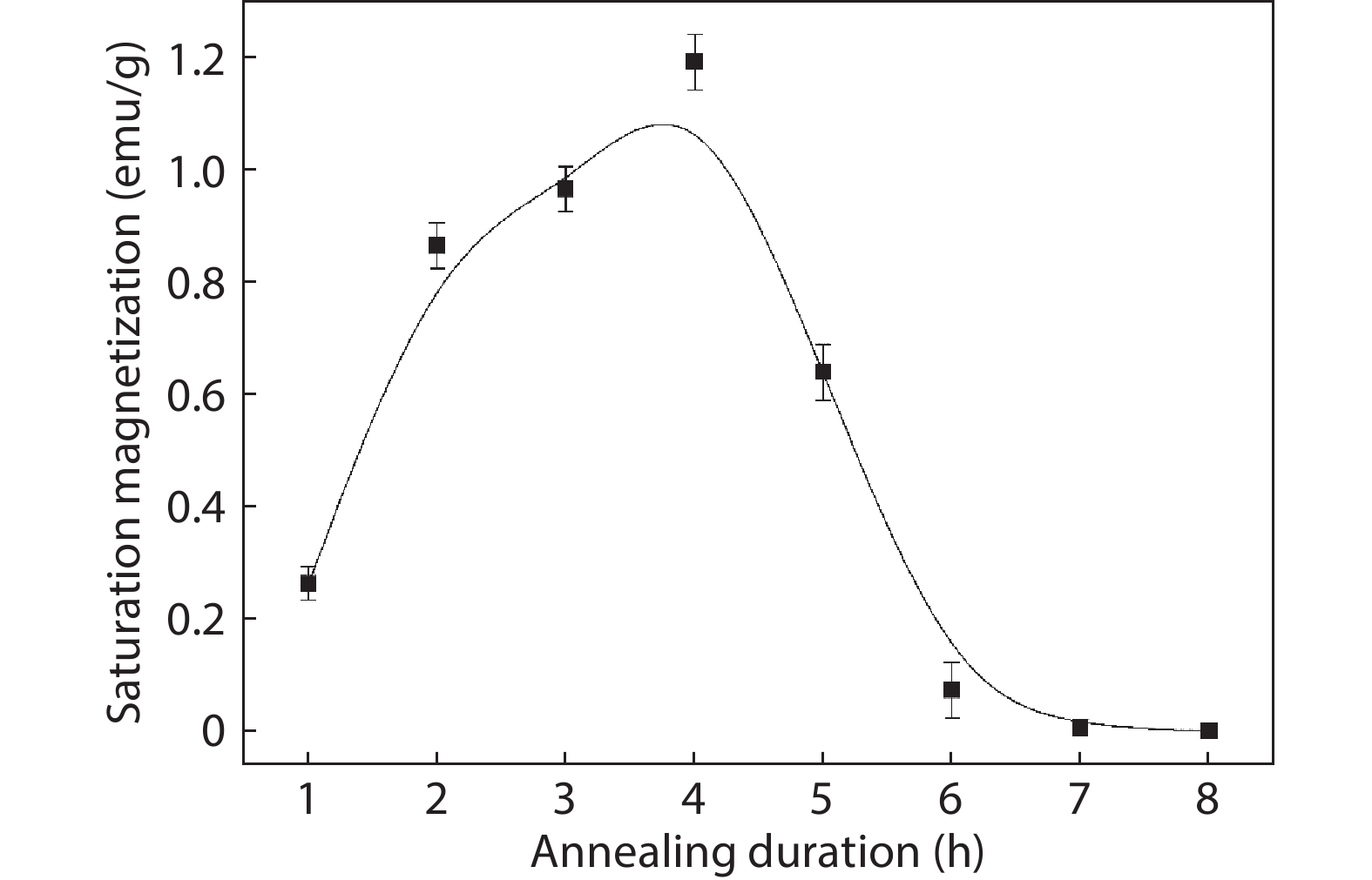 To clarify the contribution of oxygen vacancies to room-temperature ferromagnetism (RTFM) in cobalt doped TiO2 (Co-TiO2), and in order to obtain the high level of magnetization suitable for spintronic devices, in this work, Co-TiO2 nanoparticles are prepared via the sol–gel route, followed by vacuum annealing for different durations, and the influence of vacuum annealing duration on the structure and room-temperature magnetism of the compounds is examined. The results reveal that with an increase in annealing duration, the concentration of oxygen vacancies rises steadily, while the saturation magnetization (Ms) shows an initial gradual increase, followed by a sharp decline, and even disappearance. The maximum Ms is as high as 1.19 emu/g, which is promising with respect to the development of spintronic devices. Further analysis reveals that oxygen vacancies, modulated by annealing duration, play a critical role in tuning room-temperature magnetism. An appropriate concentration of oxygen vacancies is beneficial in terms of promoting RTFM in Co-TiO2. However, excessive oxygen vacancies will result in a negative impact on RTFM, due to antiferromagnetic superexchange interactions originating from nearest-neighbor Co2+ ions.
