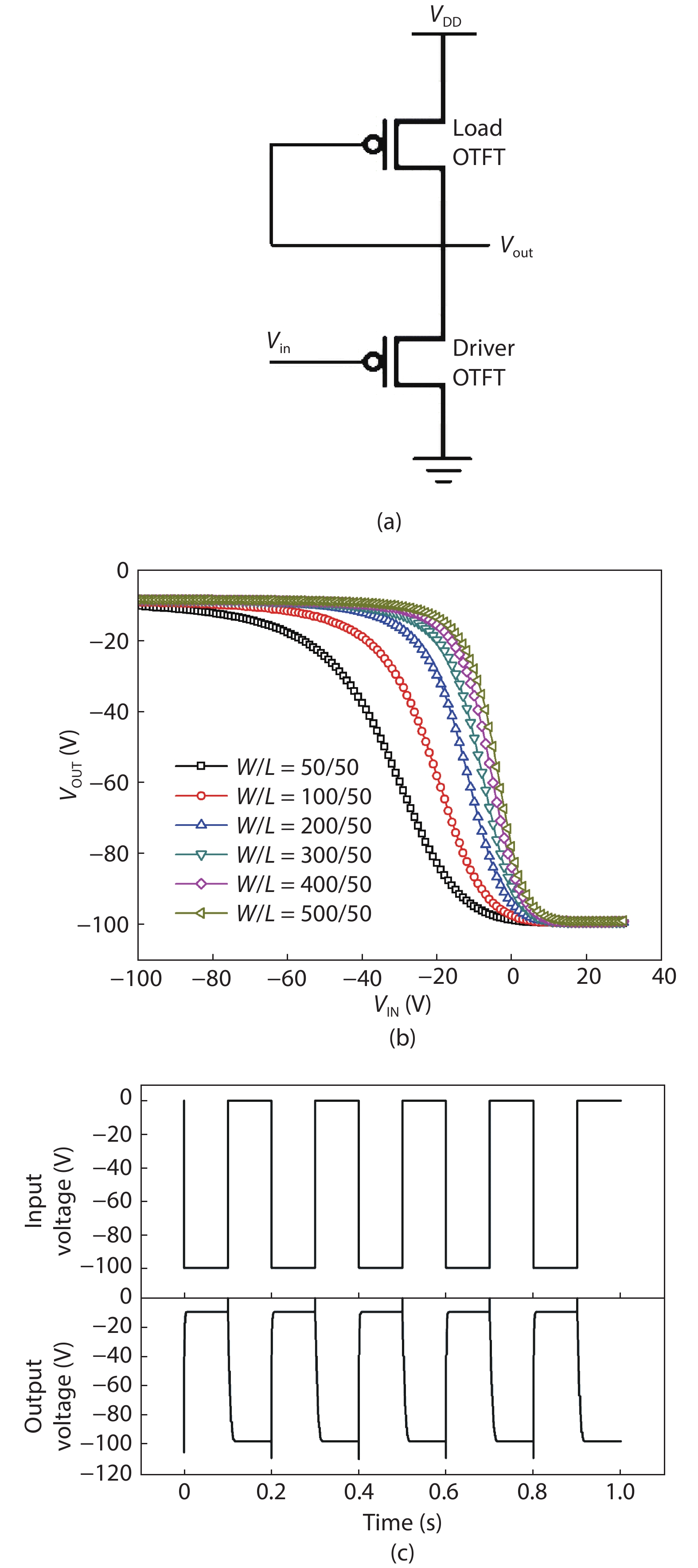 This paper presents the fabrication, characterization and numerical simulation of poly-3-hexylthiophene (P3HT)-based bottom-gate bottom-contact (BGBC) organic thin film transistors (OTFTs). The simulation is based on a drift diffusion charge transport model and density of defect states (DOS) for the traps in the band gap of the P3HT based channel. It combines two mobility models, a hopping mobility model and the Poole–Frenkel mobility model. It also describes the defect density of states (DOS) for both tail and deep states. The model takes into account all the operating regions of the OTFT and includes sub-threshold and above threshold characteristics of OTFTs. The model has been verified by comparing the numerically simulated results with the experimental results. This model is also used to simulate different structure in four configurations of OTFT e.g. bottom-gate bottom-contact (BGBC), bottom-gate top-contact (BGTC), top-gate bottom-contact (TGBC) and top-gate top-contact (TGTC) configurations of the OTFTs. We also present the compact modeling and model parameter extraction of the P3HT-based OTFTs. The extracted compact model has been further applied in a p-channel OTFT-based inverter and three stage ring oscillator circuit simulation.
