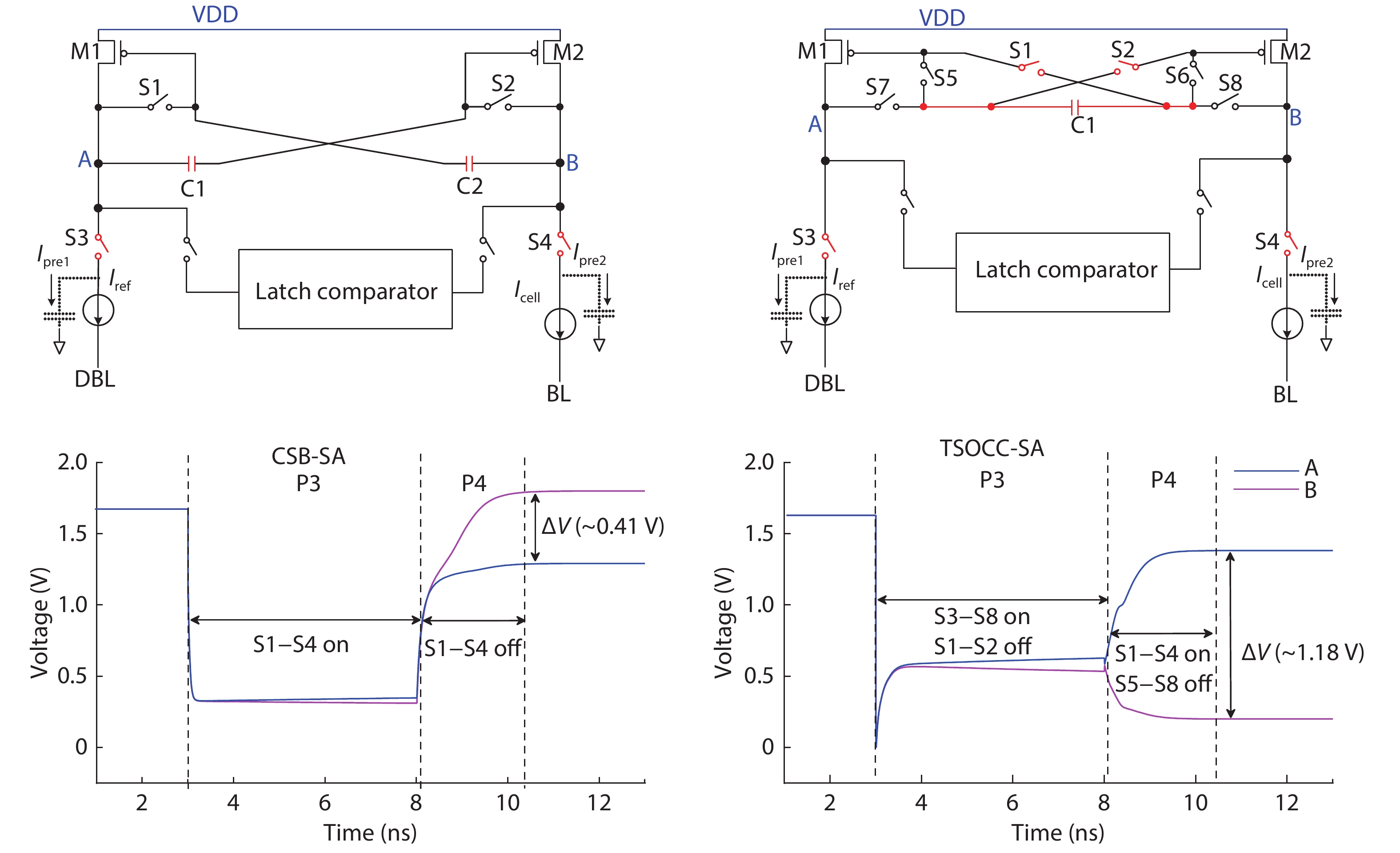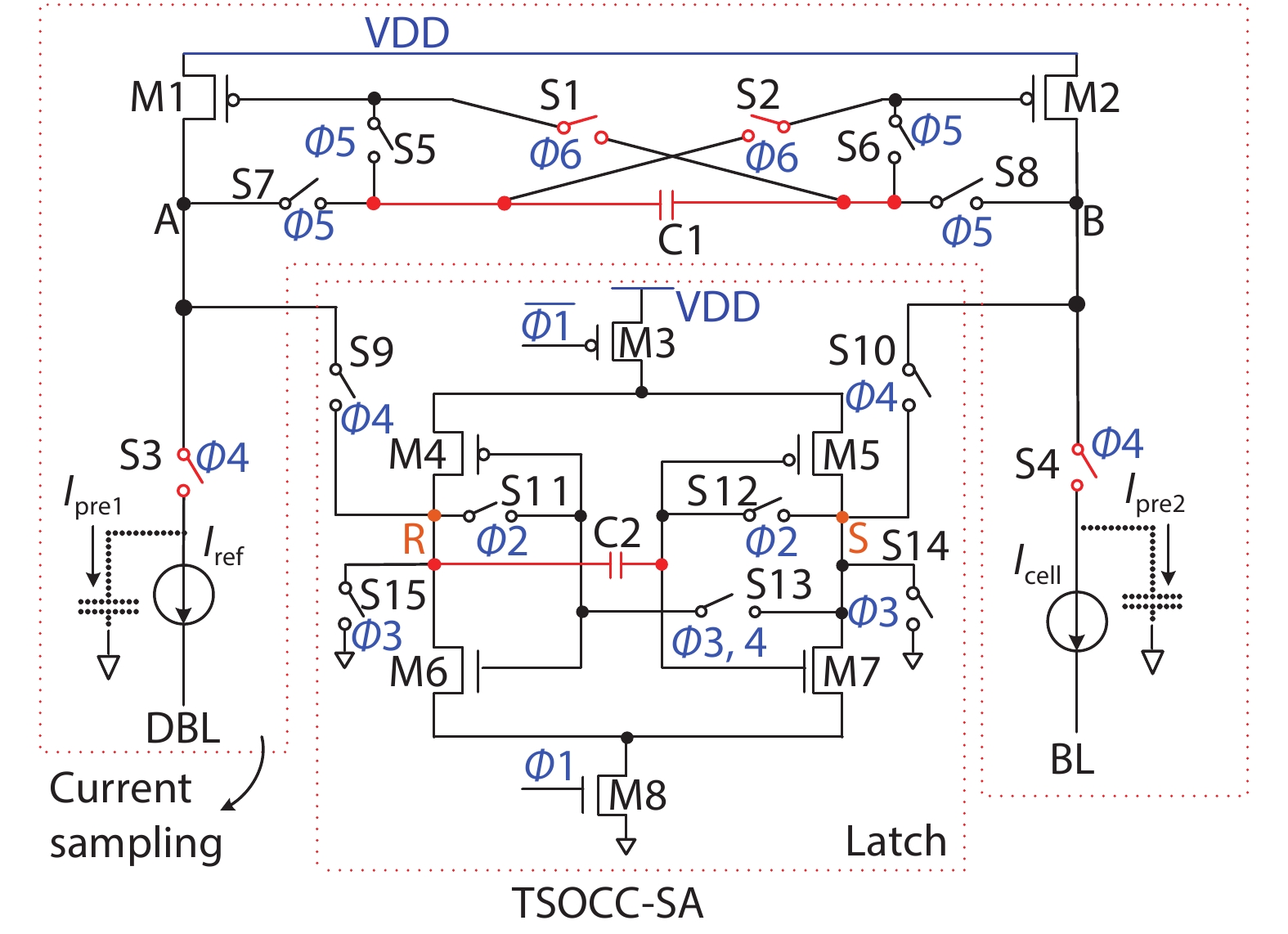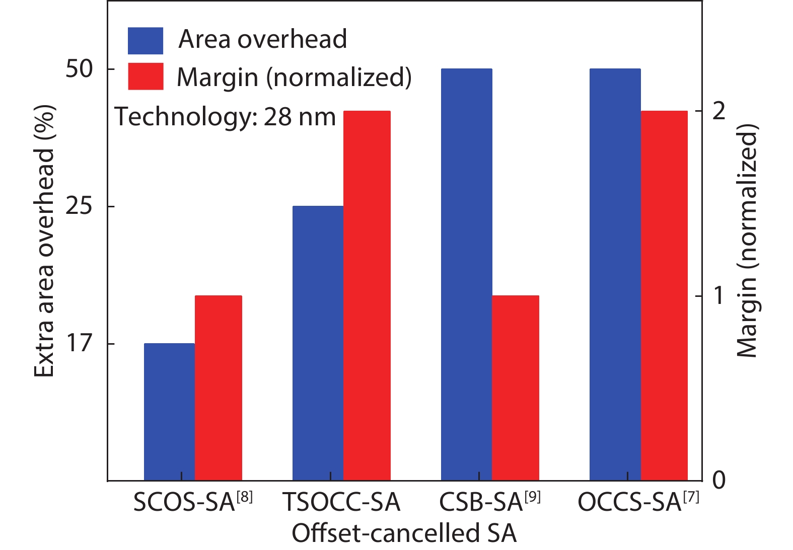 In this work, two process-variation-tolerant schemes for a current-mode sense amplifier (CSA) of RRAM were proposed: (1) hybrid read reference generator (HRRG) that tracks process-voltage-temperature (PVT) variations and solve the nonlinear issue of the RRAM cells; (2) a two-stage offset-cancelled current sense amplifier (TSOCC-SA) with only two capacitors achieves a double sensing margin and a high tolerance of device mismatch. The simulation results in 28 nm CMOS technology show that the HRRG can provide a read reference that tracks PVT variations and solves the nonlinear issue of the RRAM cells. The proposed TSOCC-SA can tolerate over 64% device mismatch.