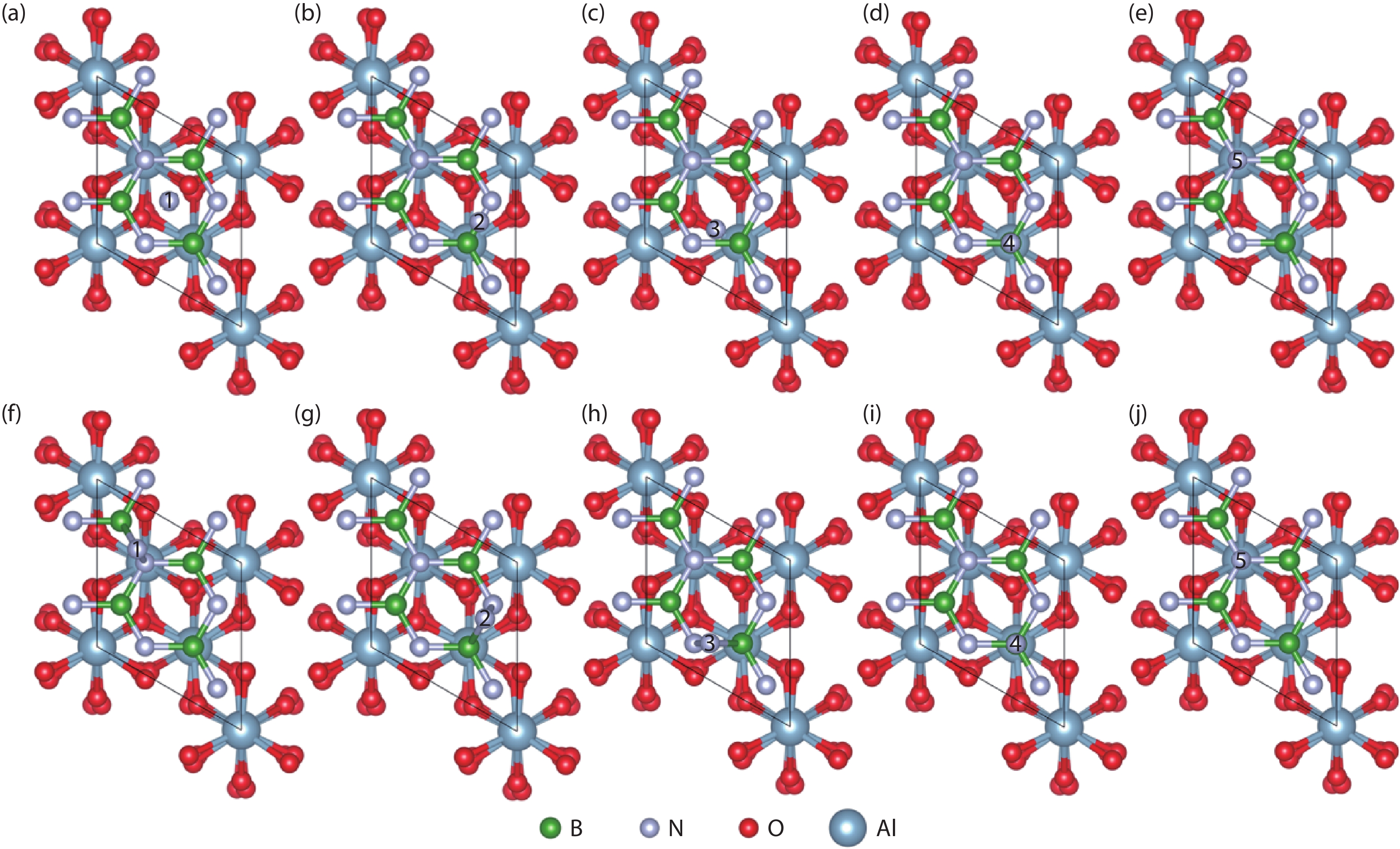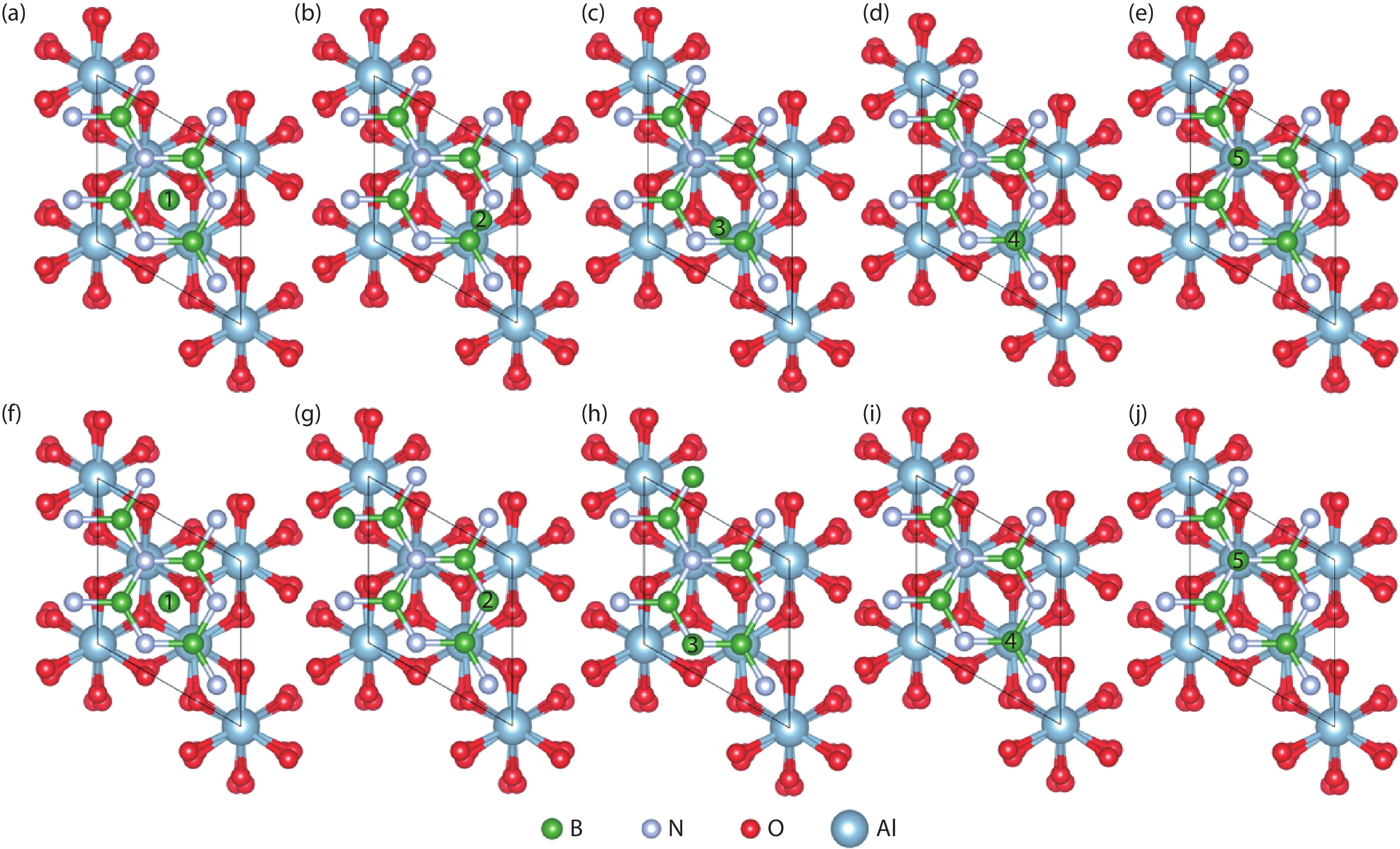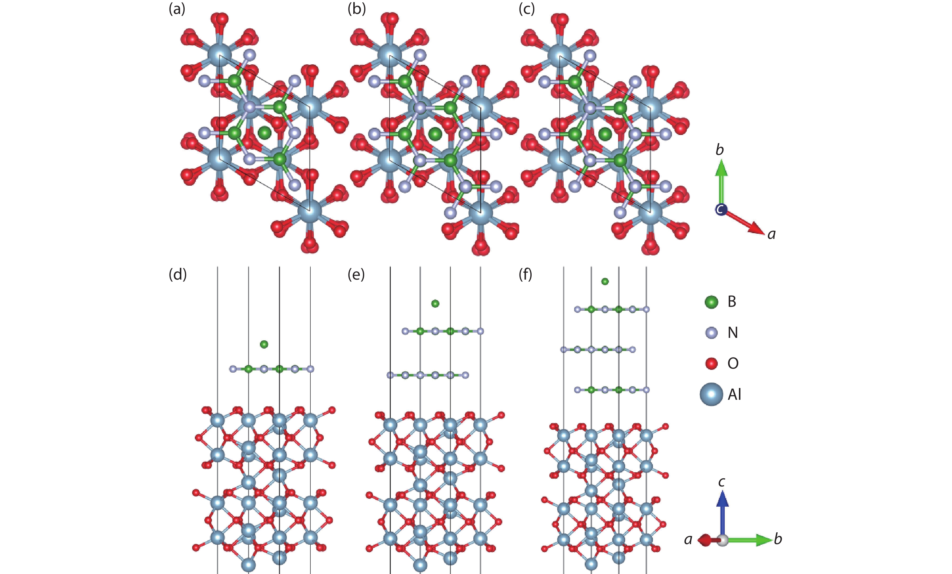 Currently, the preparation of large-size and high-quality hexagonal boron nitride is still an urgent problem. In this study, we investigated the growth and diffusion of boron and nitrogen atoms on the sapphire/h-BN buffer layer by first-principles calculations based on density functional theory. The surface of the single buffer layer provides several metastable adsorption sites for free B and N atoms due to exothermic reaction. The adsorption sites at the ideal growth point for B atoms have the lowest adsorption energy, but the N atoms are easily trapped by the N atoms on the surface to form N–N bonds. With the increasing buffer layers, the adsorption process of free atoms on the surface changes from exothermic to endothermic. The diffusion rate of B atoms is much higher than that of the N atoms thus the B atoms play a major role in the formation of B–N bonds. The introduction of buffer layers can effectively shield the negative effect of sapphire on the formation of B–N bonds. This makes the crystal growth on the buffer layer tends to two-dimensional growth, beneficial to the uniform distribution of B and N atoms. These findings provide an effective reference for the h-BN growth.