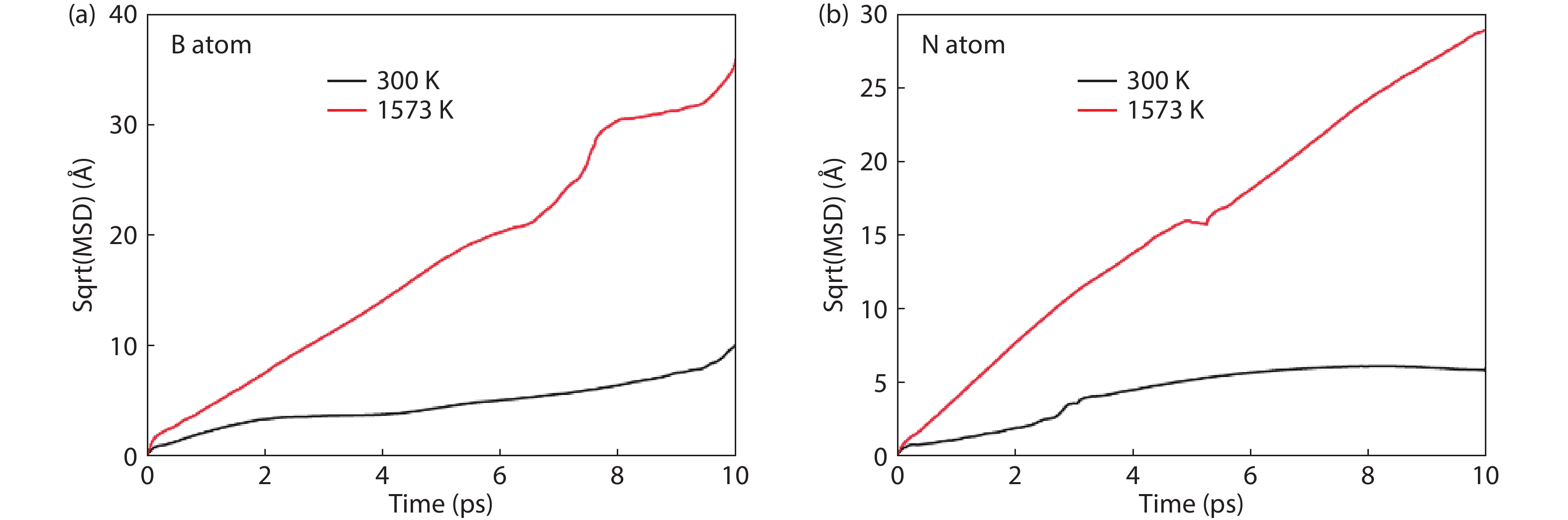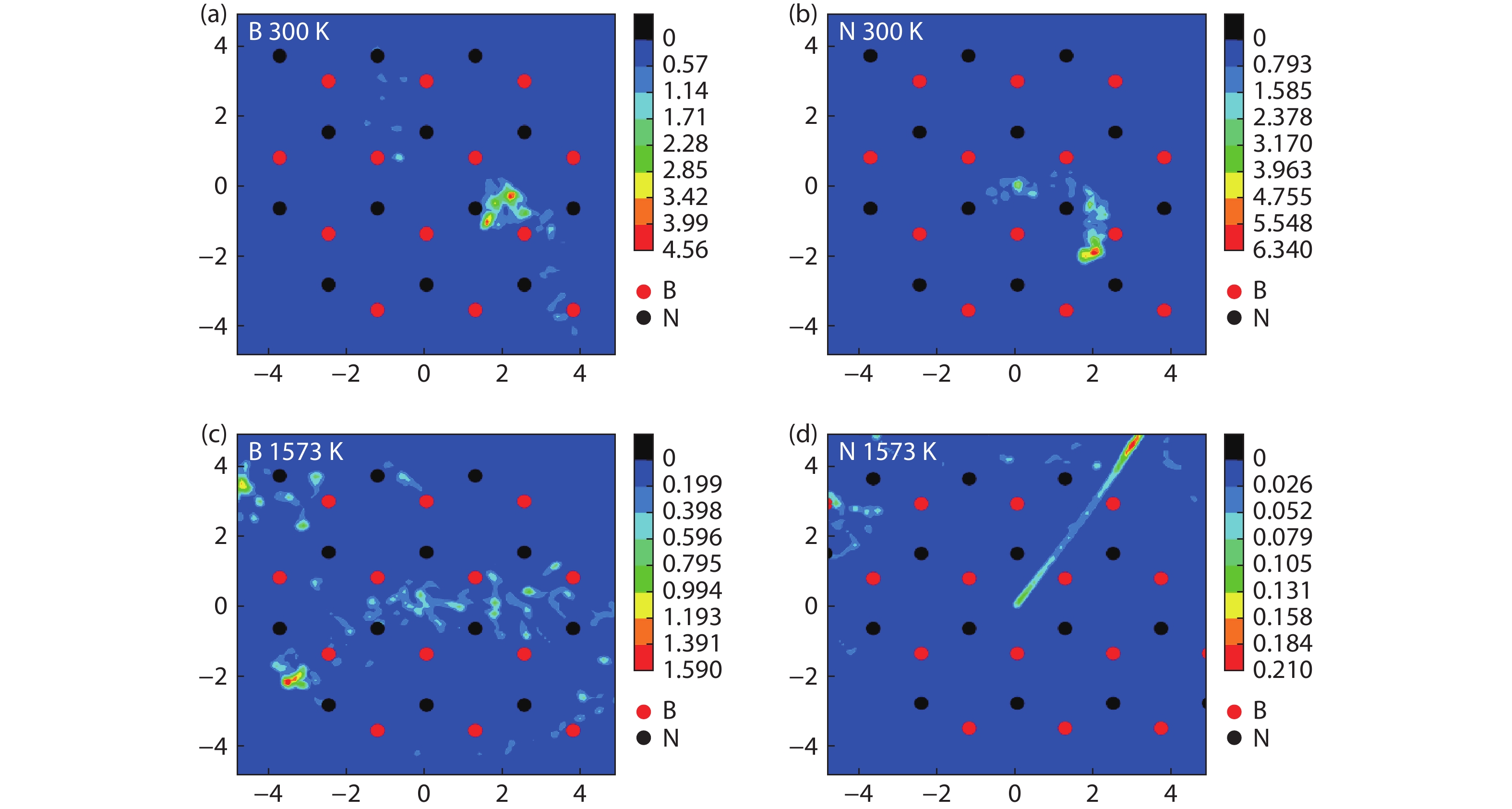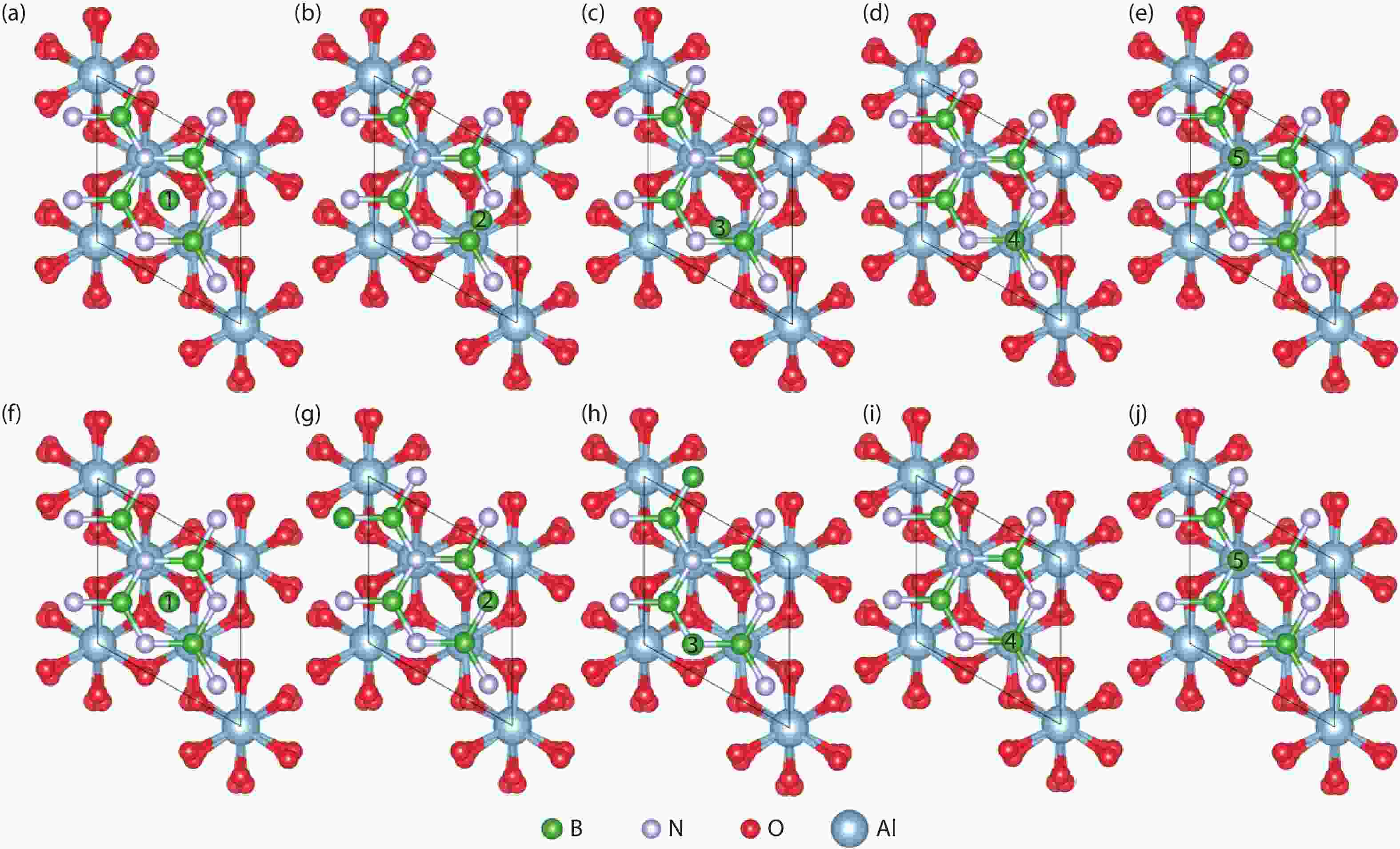 Currently, the preparation of large-size and high-quality hexagonal boron nitride is still an urgent problem. In this study, we investigated the growth and diffusion of boron and nitrogen atoms on the sapphire/h-BN buffer layer by first-principles calculations based on density functional theory. The surface of the single buffer layer provides several metastable adsorption sites for free B and N atoms due to exothermic reaction. The adsorption sites at the ideal growth point for B atoms have the lowest adsorption energy, but the N atoms are easily trapped by the N atoms on the surface to form N–N bonds. With the increasing buffer layers, the adsorption process of free atoms on the surface changes from exothermic to endothermic. The diffusion rate of B atoms is much higher than that of the N atoms thus the B atoms play a major role in the formation of B–N bonds. The introduction of buffer layers can effectively shield the negative effect of sapphire on the formation of B–N bonds. This makes the crystal growth on the buffer layer tends to two-dimensional growth, beneficial to the uniform distribution of B and N atoms. These findings provide an effective reference for the h-BN growth.