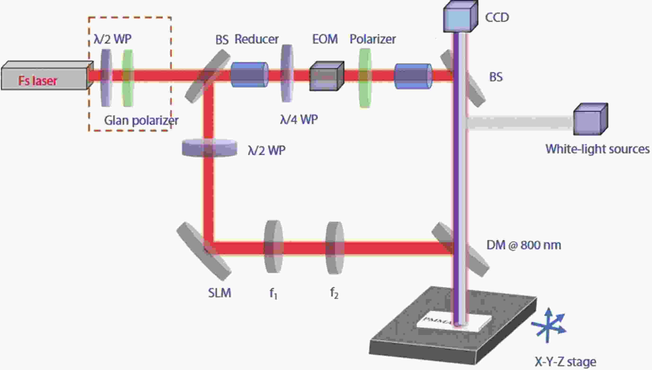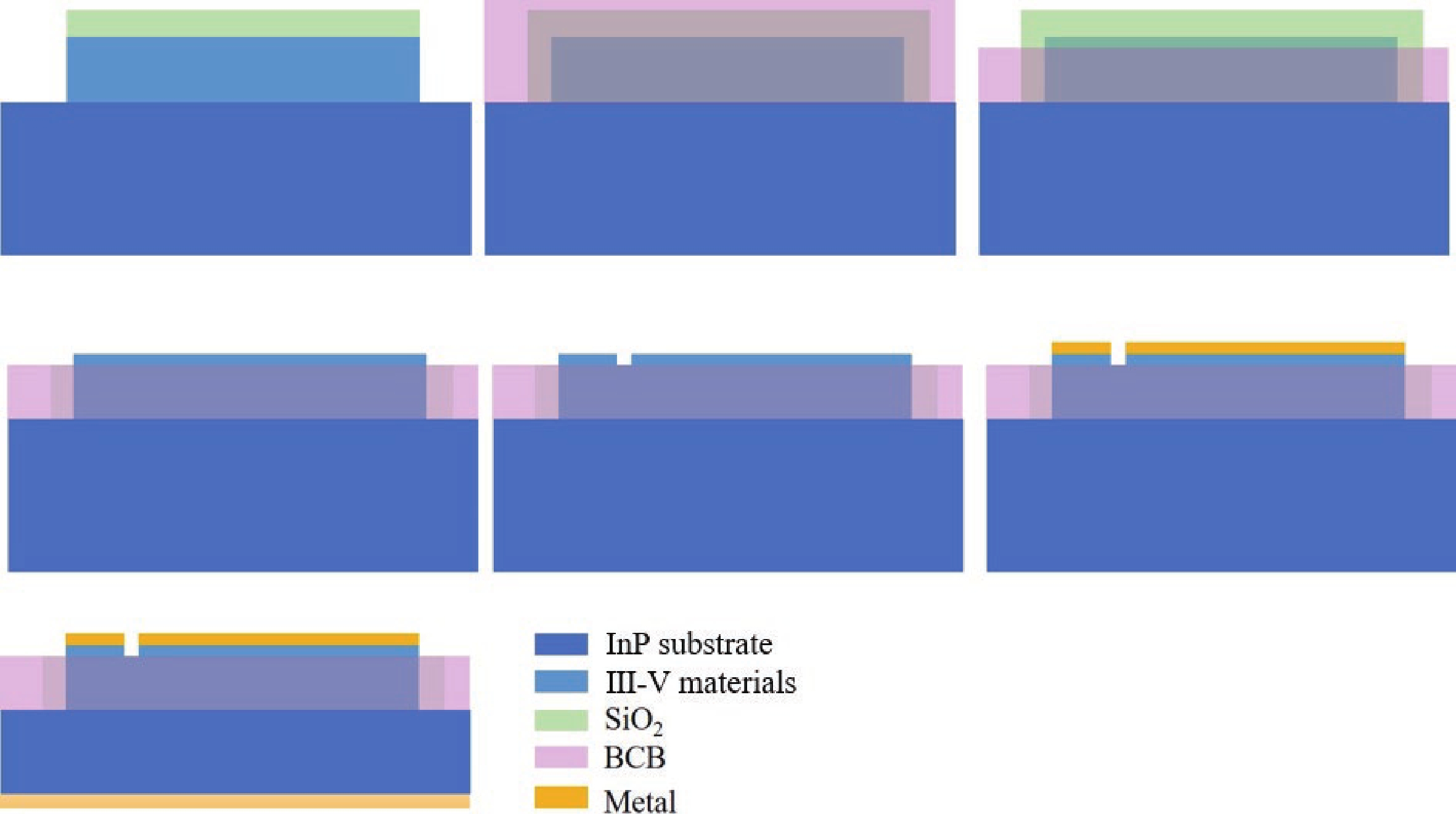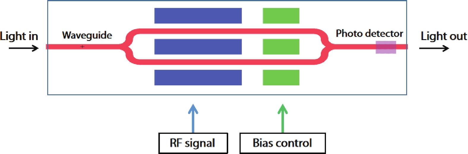 In this work, a hybrid integrated optical transmitter module was designed and fabricated. A proton-exchanged Mach–Zehnder lithium niobate (LiNbO3) modulator chip was chosen to enhance the output extinction ratio. A fiber was used to adjust the rotation of the polarization direction caused by the optical isolator. The whole optical path structure, including the laser chip, lens, fiber, and modulator chip, was simulated to achieve high optical output efficiency. After a series of process improvements, a module with an output extinction ratio of 34 dB and a bandwidth of 20.5 GHz (from 2 GHz) was obtained. The optical output efficiency of the whole module reached approximately 21%. The link performance of the module was also measured.