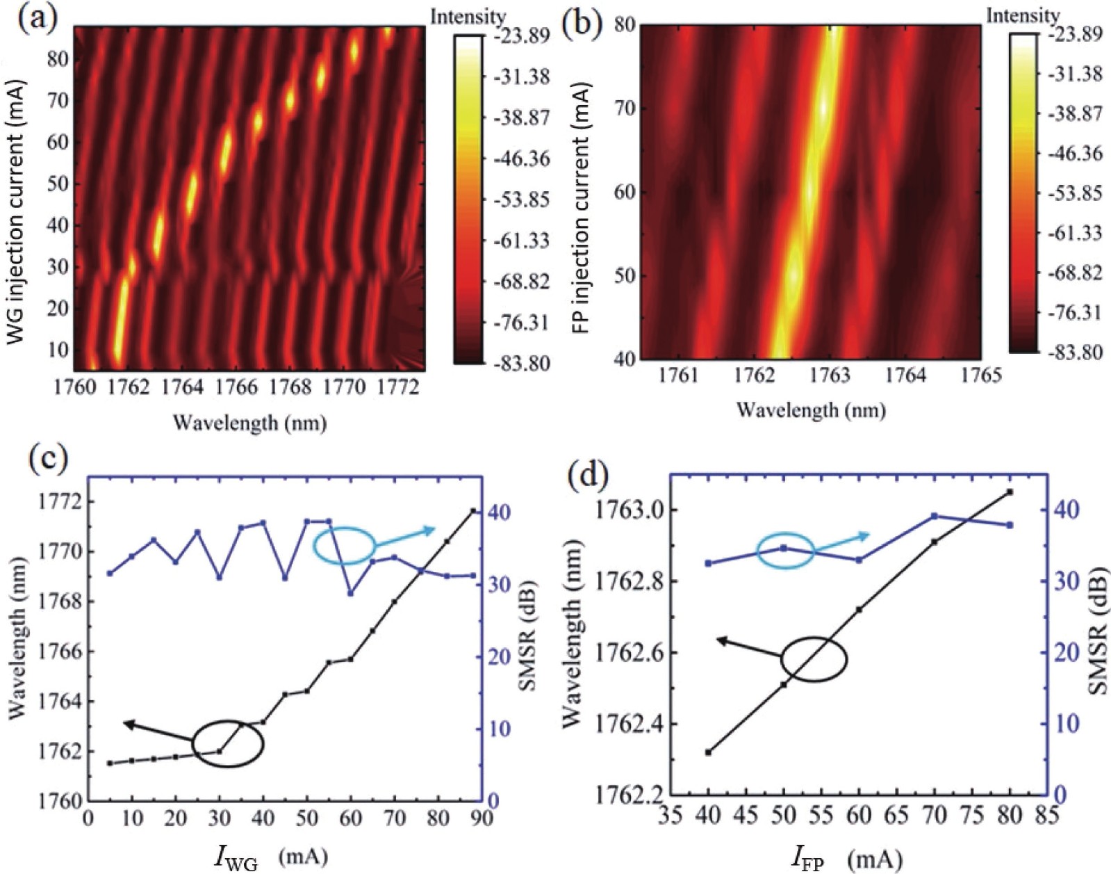 A wide wavelength tuning range and single-mode hybrid cavity laser consists of a square Whispering-Gallery (WG) microcavity and a Fabry–Pérot (FP) was introduced and demonstrated. A wavelength tuning range over 12.5 nm from 1760.87 to 1773.39 nm which was single-mode emitting was obtained with the side-mode suppression ratio over 30 dB. The hybrid cavity laser does not need grating etching and special epitaxial structure, which reduces the fabrication difficulty and cost, and shows the potential for gas sensing with absorption lines in this range.