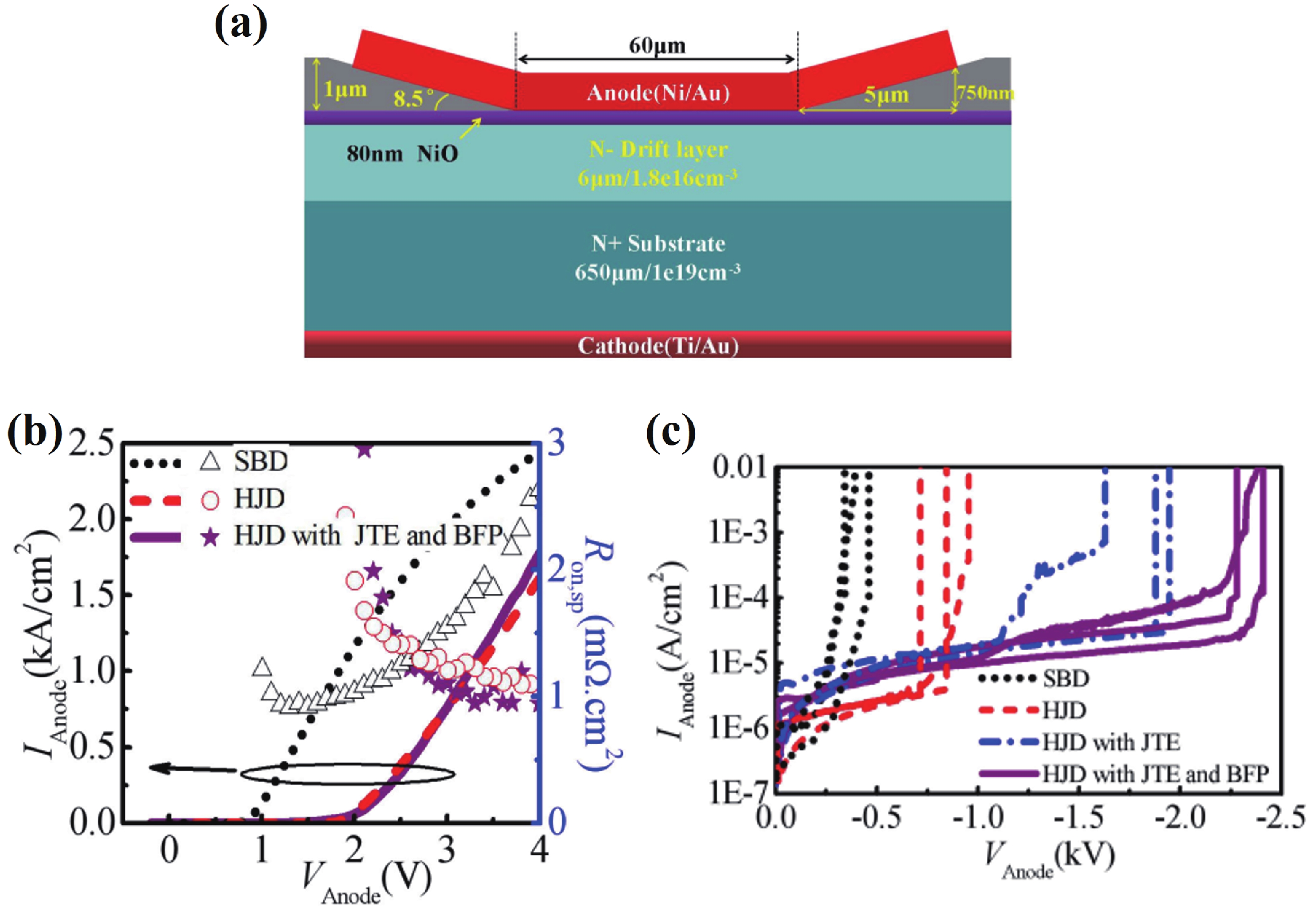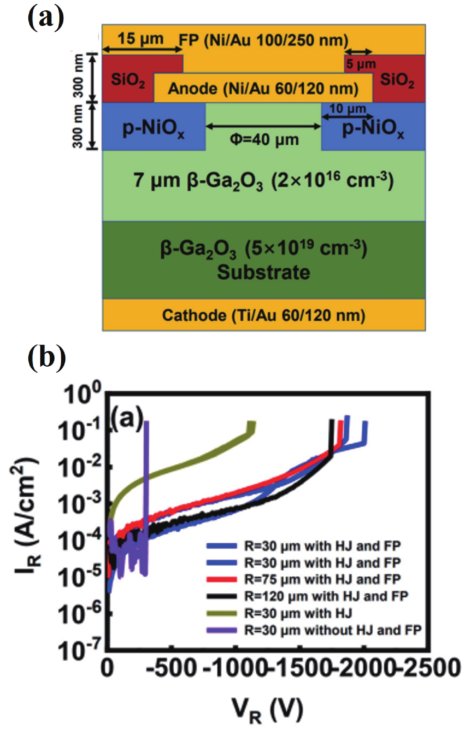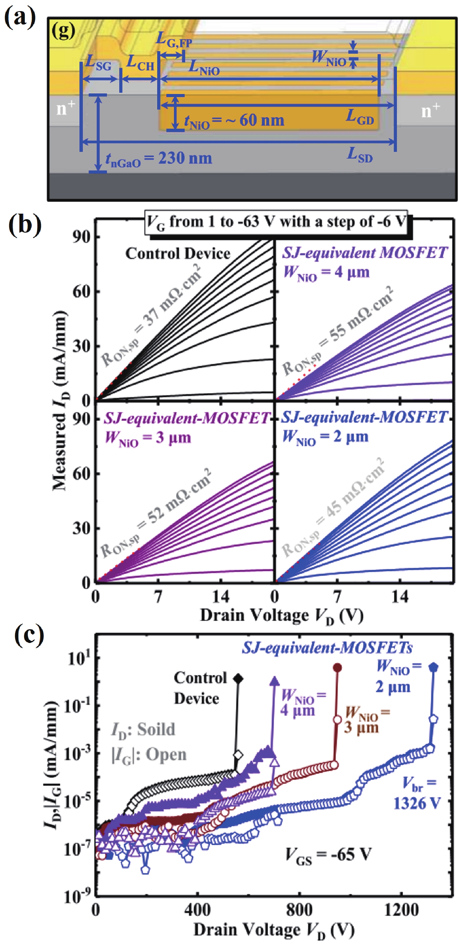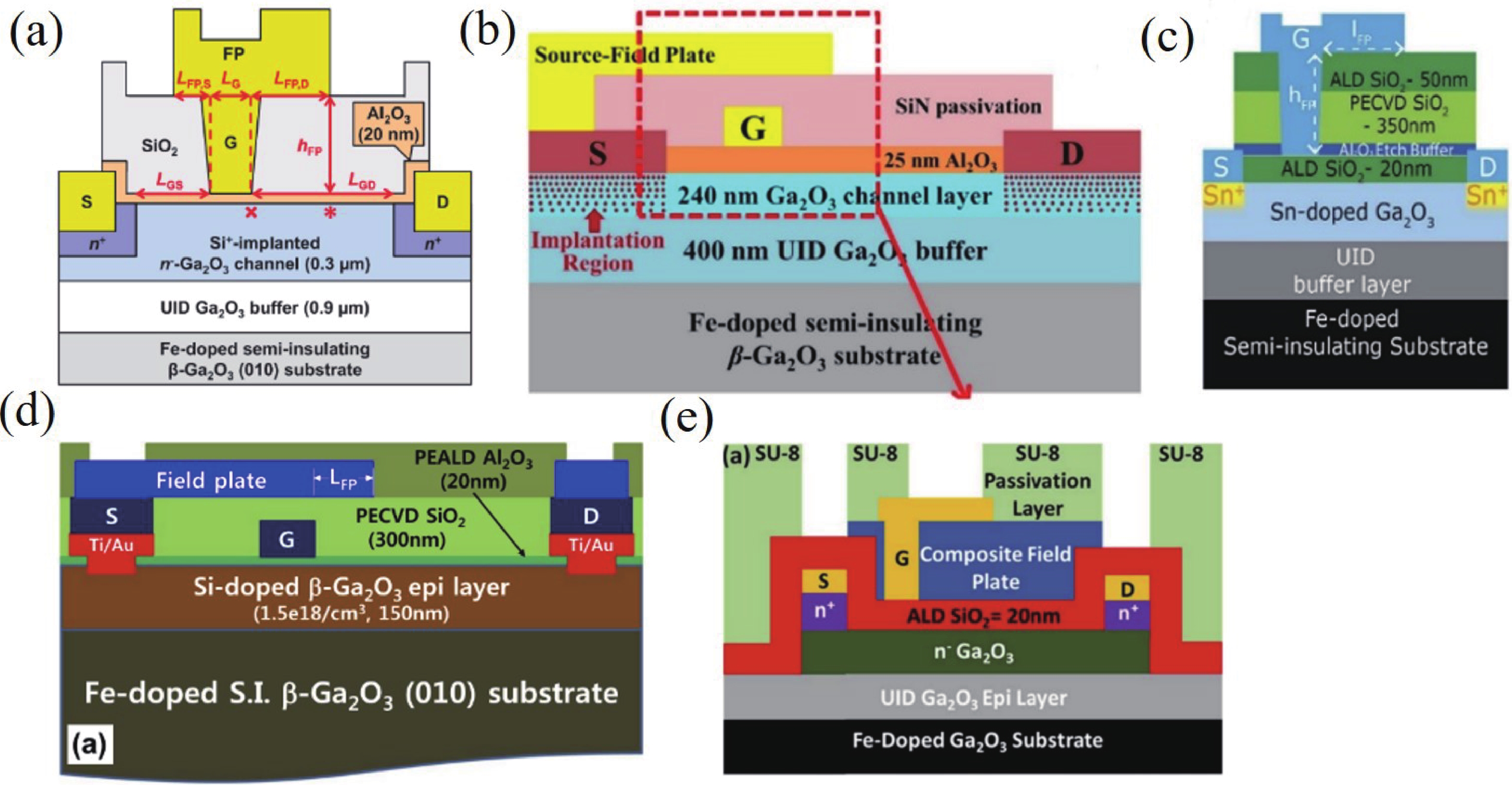Beta gallium oxide (β-Ga2O3) has attracted significant attention for applications in power electronics due to its ultra-wide bandgap of ~ 4.8 eV and the large critical electric field of 8 MV/cm. These properties yield a high Baliga’s figures of merit (BFOM) of more than 3000. Though β-Ga2O3 possesses superior material properties, the lack of p-type doping is the main obstacle that hinders the development of β-Ga2O3-based power devices for commercial use. Constructing heterojunctions by employing other p-type materials has been proven to be a feasible solution to this issue. Nickel oxide (NiO) is the most promising candidate due to its wide band gap of 3.6–4.0 eV. So far, remarkable progress has been made in NiO/β-Ga2O3 heterojunction power devices. This review aims to summarize recent advances in the construction, characterization, and device performance of the NiO/β-Ga2O3 heterojunction power devices. The crystallinity, band structure, and carrier transport property of the sputtered NiO/β-Ga2O3 heterojunctions are discussed. Various device architectures, including the NiO/β-Ga2O3 heterojunction pn diodes (HJDs), junction barrier Schottky (JBS) diodes, and junction field effect transistors (JFET), as well as the edge terminations and super-junctions based on the NiO/β-Ga2O3 heterojunction, are described.