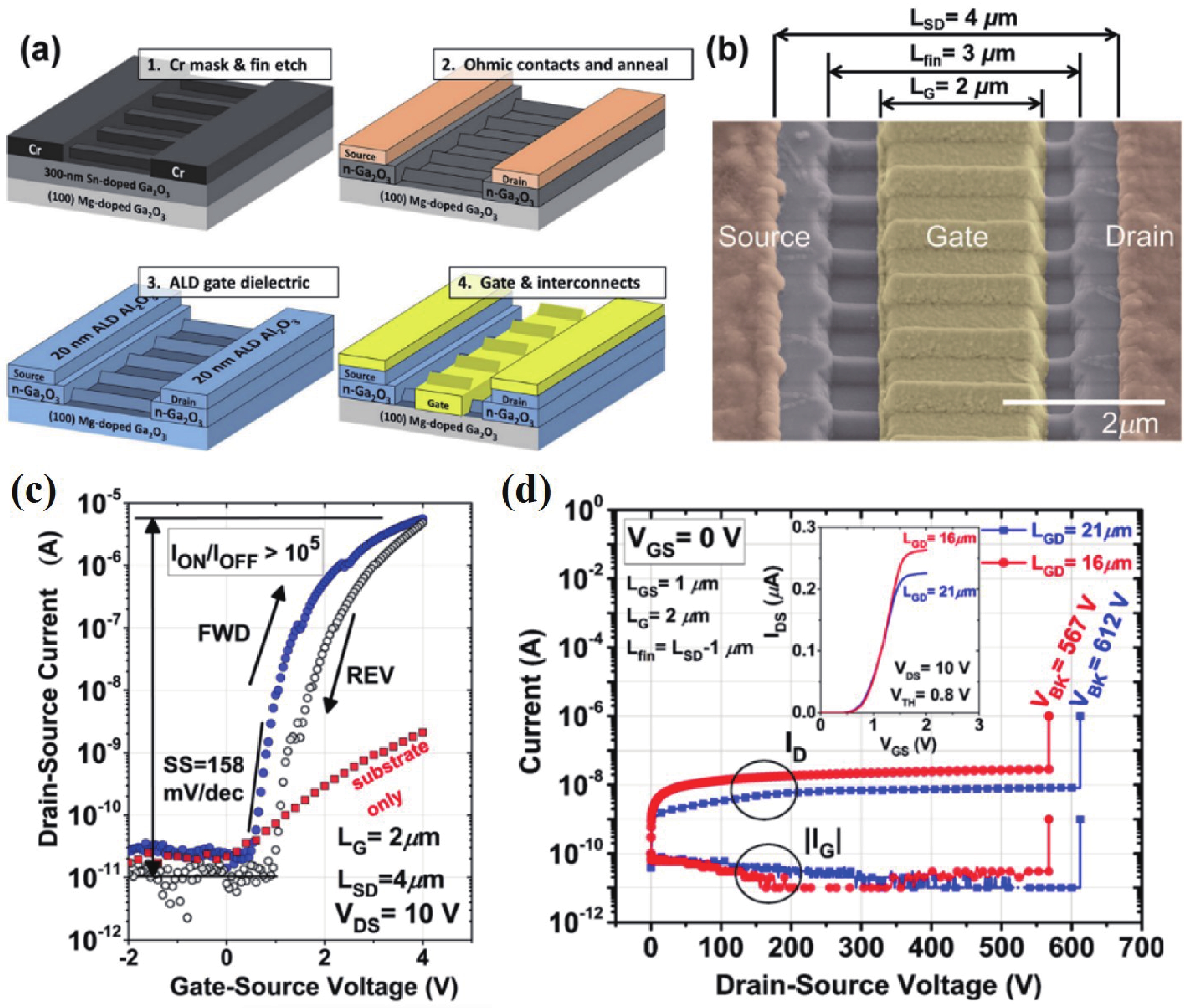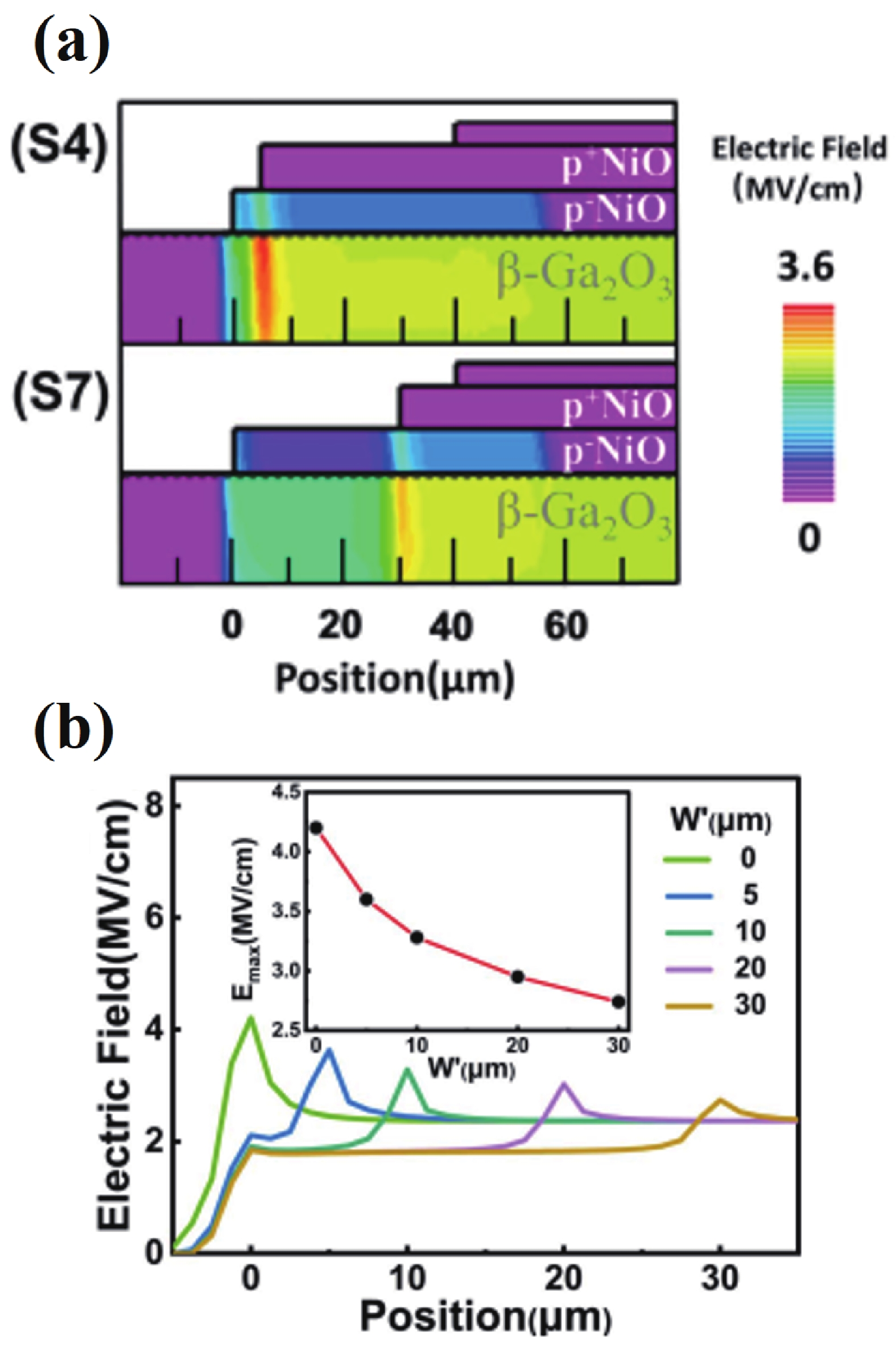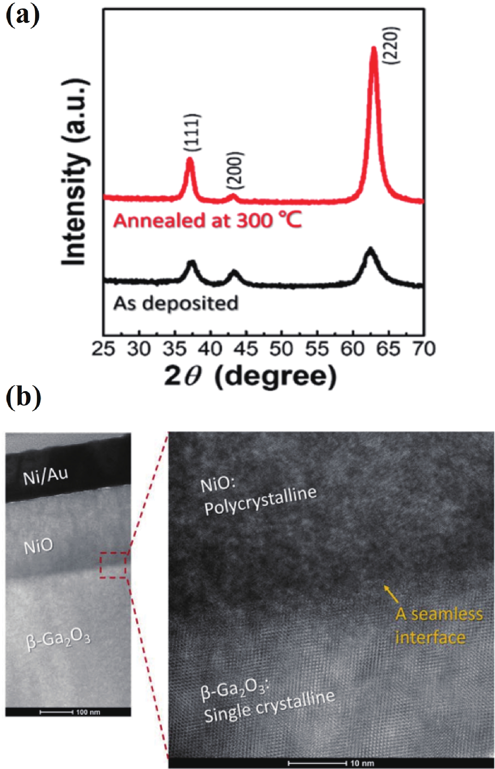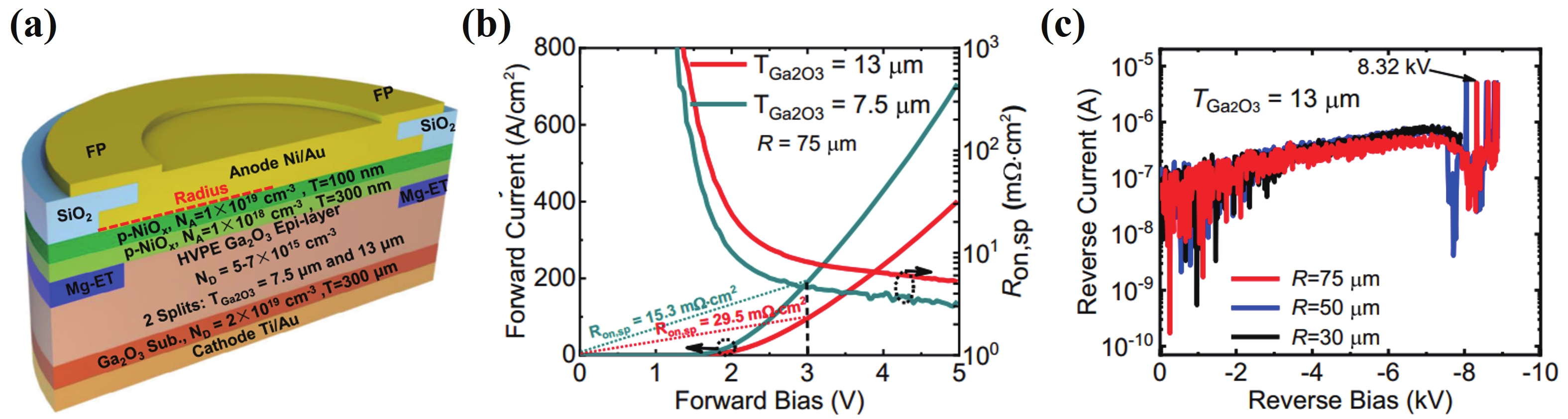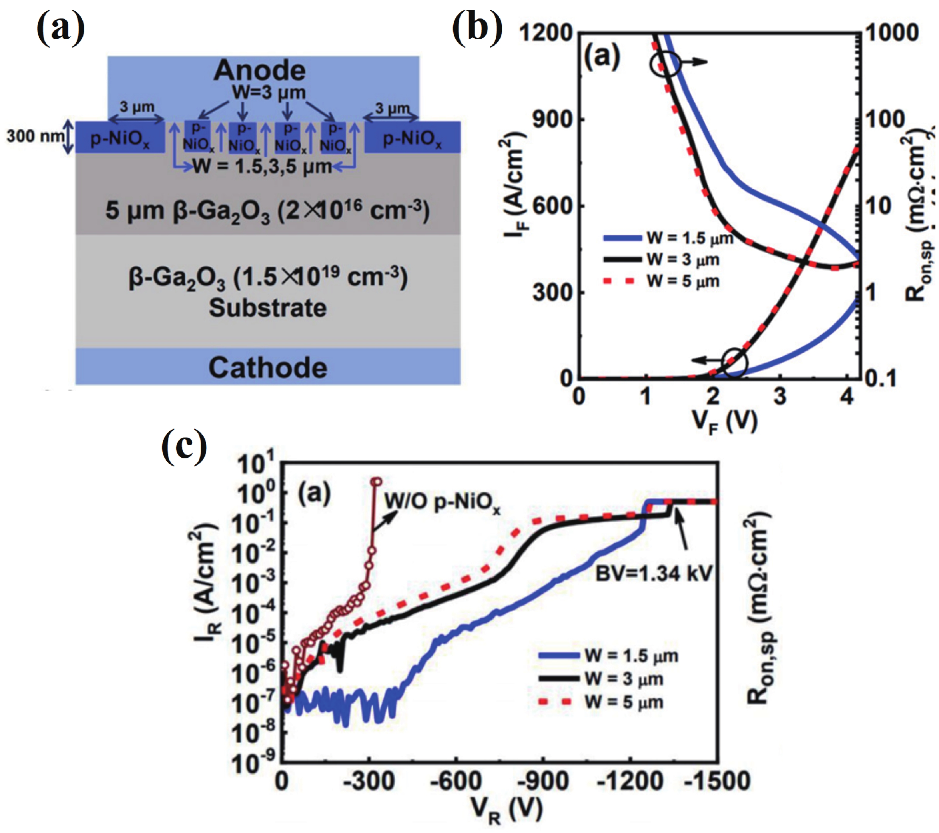 Beta gallium oxide (β-Ga2O3) has attracted significant attention for applications in power electronics due to its ultra-wide bandgap of ~ 4.8 eV and the large critical electric field of 8 MV/cm. These properties yield a high Baliga’s figures of merit (BFOM) of more than 3000. Though β-Ga2O3 possesses superior material properties, the lack of p-type doping is the main obstacle that hinders the development of β-Ga2O3-based power devices for commercial use. Constructing heterojunctions by employing other p-type materials has been proven to be a feasible solution to this issue. Nickel oxide (NiO) is the most promising candidate due to its wide band gap of 3.6–4.0 eV. So far, remarkable progress has been made in NiO/β-Ga2O3 heterojunction power devices. This review aims to summarize recent advances in the construction, characterization, and device performance of the NiO/β-Ga2O3 heterojunction power devices. The crystallinity, band structure, and carrier transport property of the sputtered NiO/β-Ga2O3 heterojunctions are discussed. Various device architectures, including the NiO/β-Ga2O3 heterojunction pn diodes (HJDs), junction barrier Schottky (JBS) diodes, and junction field effect transistors (JFET), as well as the edge terminations and super-junctions based on the NiO/β-Ga2O3 heterojunction, are described.