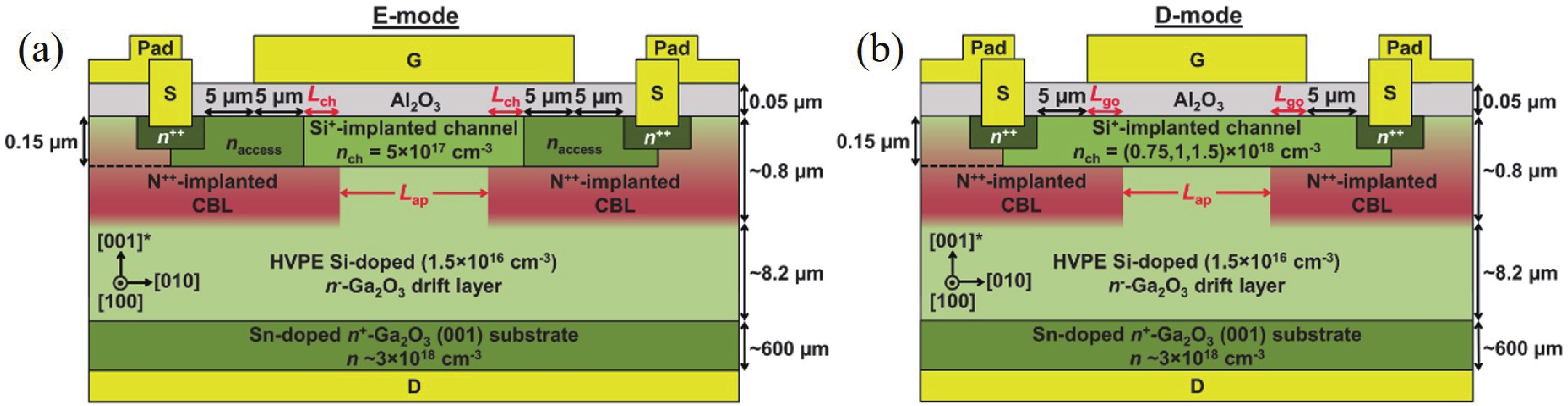 Homoepitaxial growth of Si-doped β-Ga2O3 films on semi-insulating (100) β-Ga2O3 substrates by metalorganic chemical vapor deposition (MOCVD) is studied in this work. By appropriately optimizing the growth conditions, an increasing diffusion length of Ga adatoms is realized, suppressing 3D island growth patterns prevalent in (100) β-Ga2O3 films and optimizing the surface morphology with [010] oriented stripe features. The slightly Si-doped β-Ga2O3 film shows smooth and flat surface morphology with a root-mean-square roughness of 1.3 nm. Rocking curves of the (400) diffraction peak also demonstrate the high crystal quality of the Si-doped films. According to the capacitance–voltage characteristics, the effective net doping concentrations of the films are 5.41 × 1015 – 1.74 × 1020 cm?3. Hall measurements demonstrate a high electron mobility value of 51 cm2/(V·s), corresponding to a carrier concentration of 7.19 × 1018 cm?3 and a high activation efficiency of up to 61.5%. Transmission line model (TLM) measurement shows excellent Ohmic contacts and a low specific contact resistance of 1.29 × 10-4 Ω·cm2 for the Si-doped film, which is comparable to the Si-implanted film with a concentration of 5.0 × 1019 cm?3, confirming the effective Si doing in the MOCVD epitaxy.
