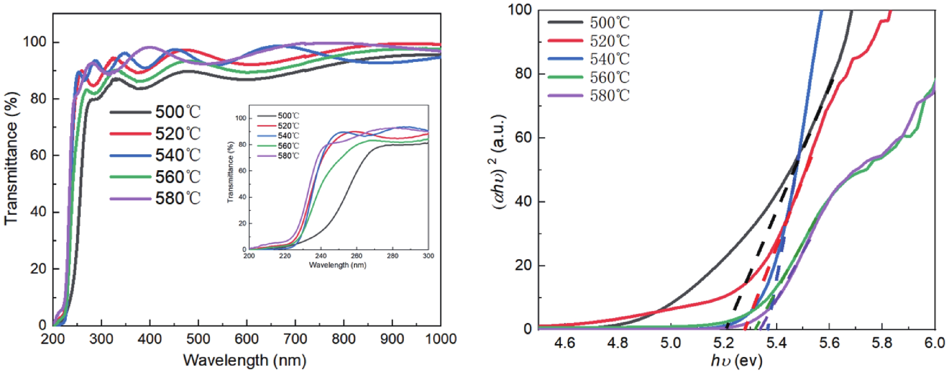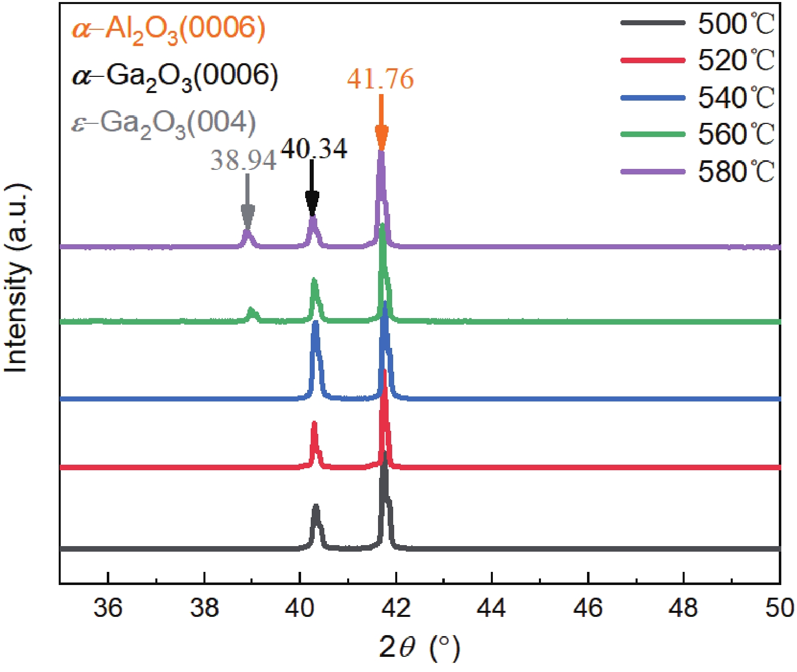 High thickness uniformity and large-scale films of α-Ga2O3 are crucial factors for the development of power devices. In this work, a high-quality 2-inch α-Ga2O3 epitaxial film on c-plane sapphire substrates was prepared by the mist-CVD method. The growth rate and phase control mechanisms were systematically investigated. The growth rate of the α-Ga2O3 films was limited by the evaporation of the microdroplets containing gallium acetylacetonate. By adjusting the substrate position (z) from 80 to 50 mm, the growth rate was increased from 307 nm/h to 1.45 μm/h when the growth temperature was fixed at 520 °C. When the growth temperature exceeded 560 °C, ε-Ga2O3 was observed to form at the edges of 2-inch sapphire substrate. Phase control was achieved by adjusting the growth temperature. When the growth temperature was 540 °C and the substrate position was 50 mm, the full-width at half maximum (FWHM) of the rocking curves for the (0006) and (10-14) planes were 0.023° and 1.17°. The screw and edge dislocations were 2.3 × 106 and 3.9 × 1010 cm-2, respectively. Furthermore, the bandgaps and optical transmittance of α-Ga2O3 films grown under different conditions were characterized utilizing UV-visible and near-IR scanning spectra.