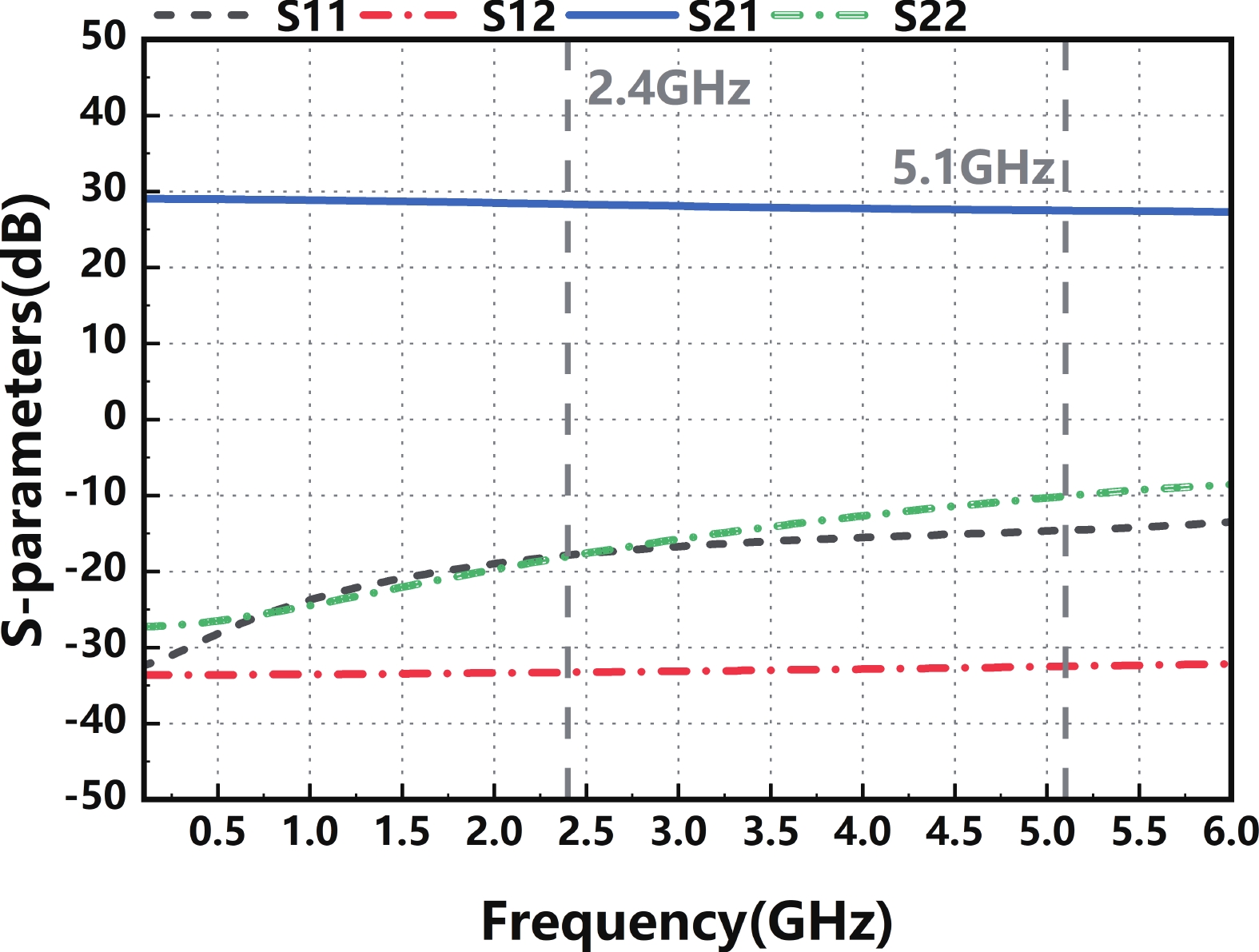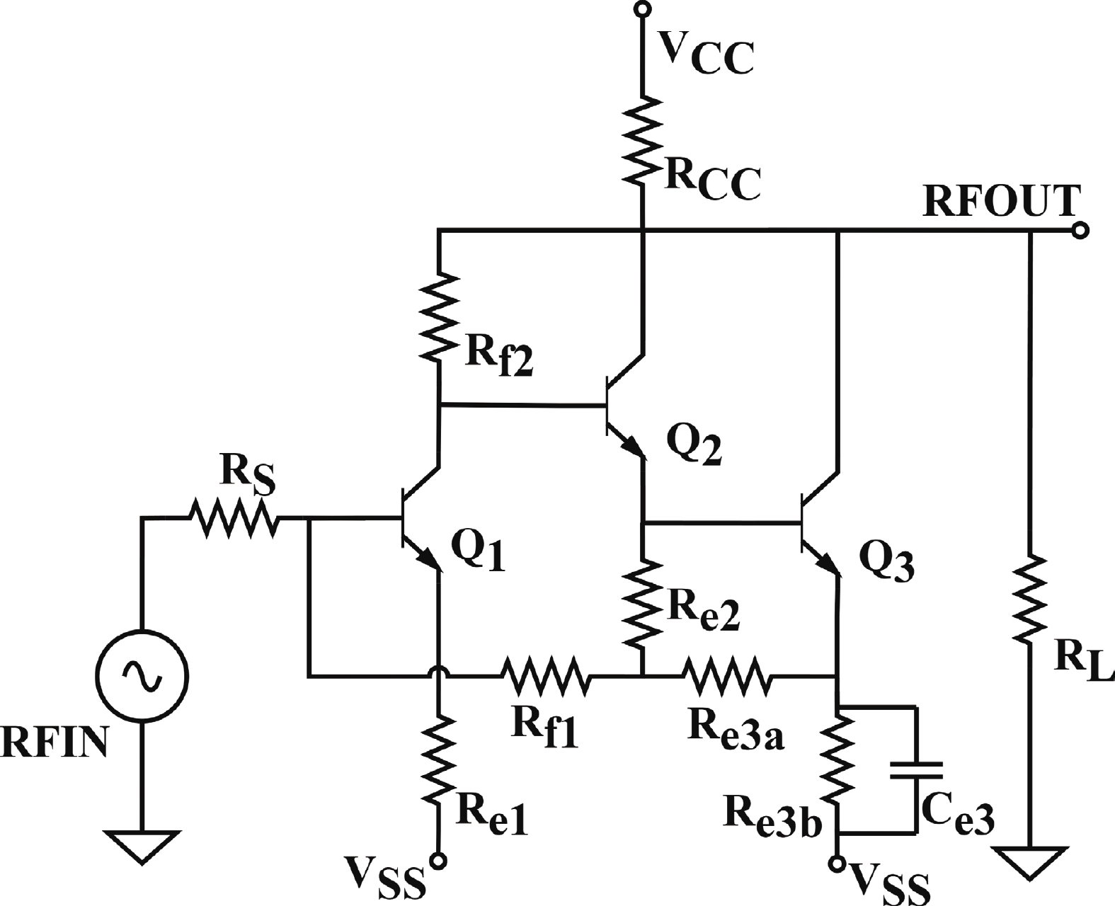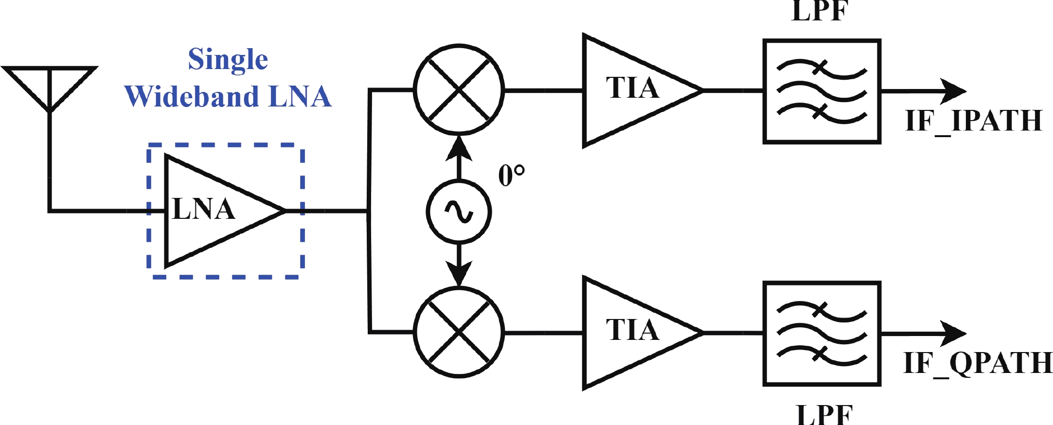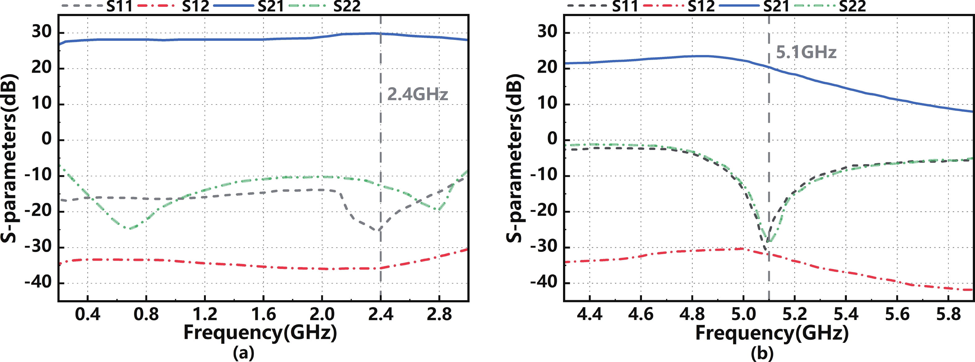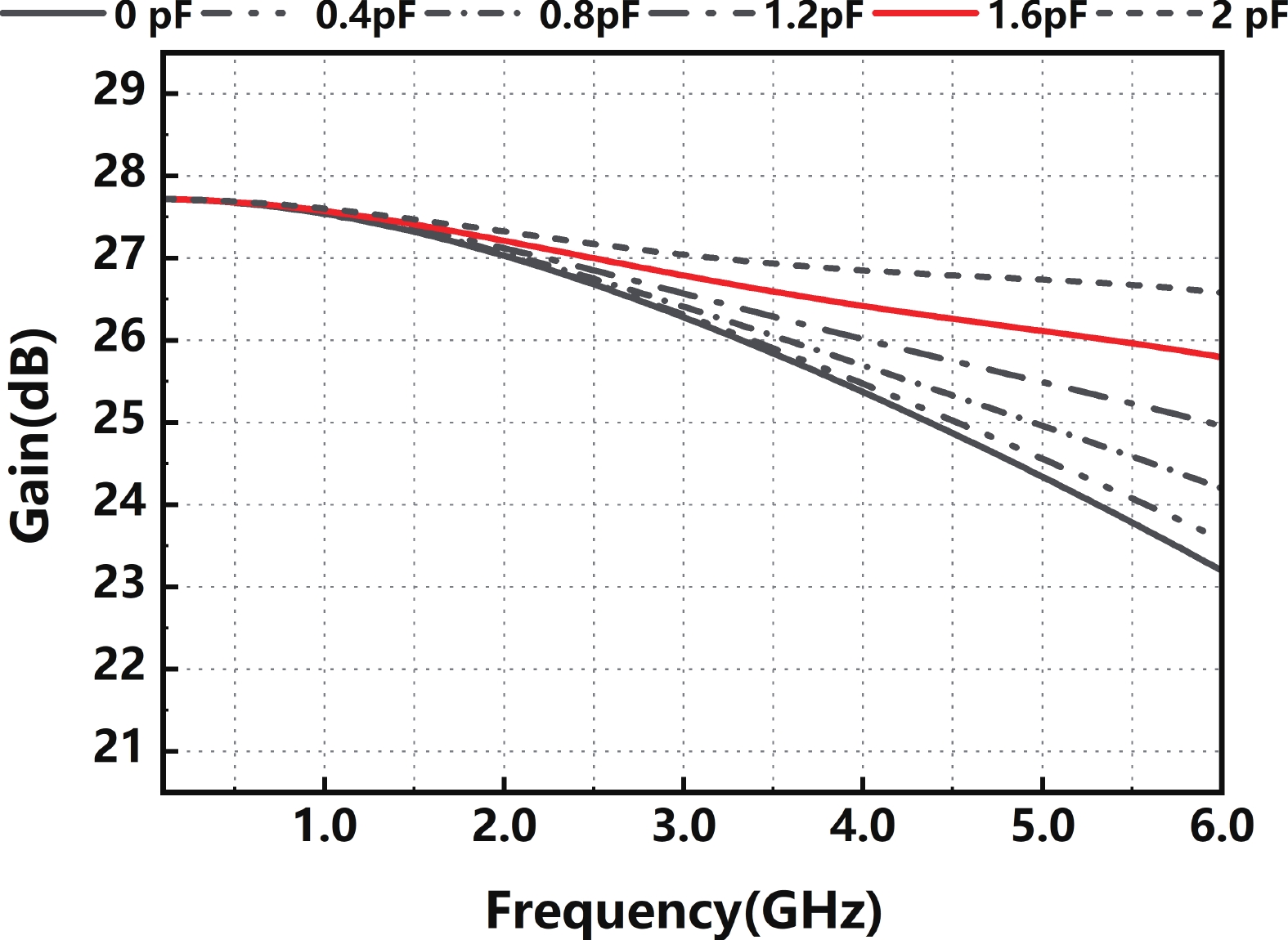 In this paper, a high-gain inductorless LNA (low-noise amplifier) compatible with multiple communication protocols from 0.1 to 5.1 GHz is proposed. A composite resistor?capacitor feedback structure is employed to achieve a wide bandwidth matching range and good gain flatness. A second stage with a Darlington pair is used to increase the overall gain of the amplifier, while the gain of the first stage is reduced to reduce the overall noise. The amplifier is based on a 0.25 μm SiGe BiCMOS process, and thanks to the inductorless circuit structure, the core circuit area is only 0.03 mm2. Test results show that the lowest noise figure (NF) in the operating band is 1.99 dB, the power gain reaches 29.7 dB, the S11 and S22 are less than ?10 dB, the S12 is less than ?30 dB, the IIP3 is 0.81dBm, and the OP1dB is 10.27 dBm. The operating current is 31.18 mA at 3.8 V supply.
