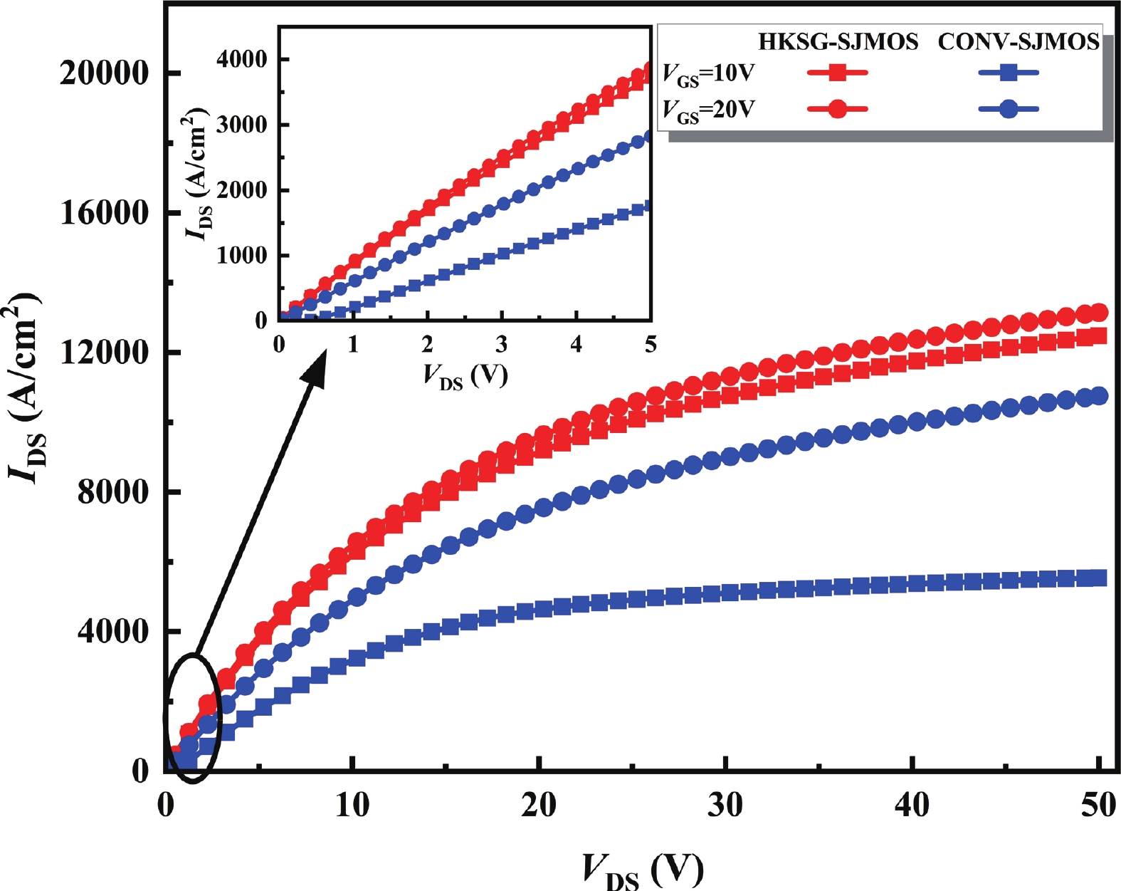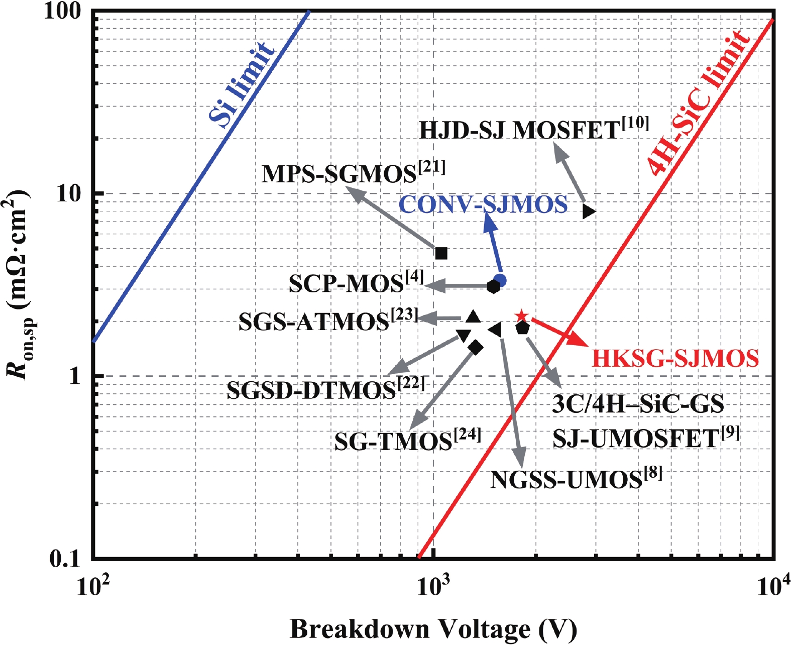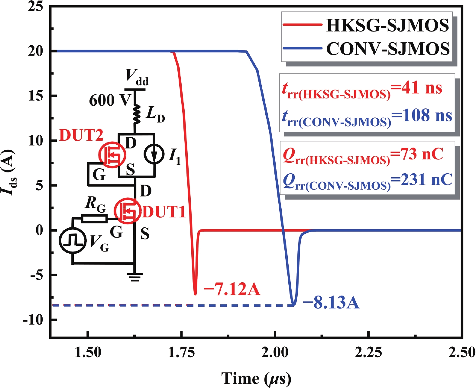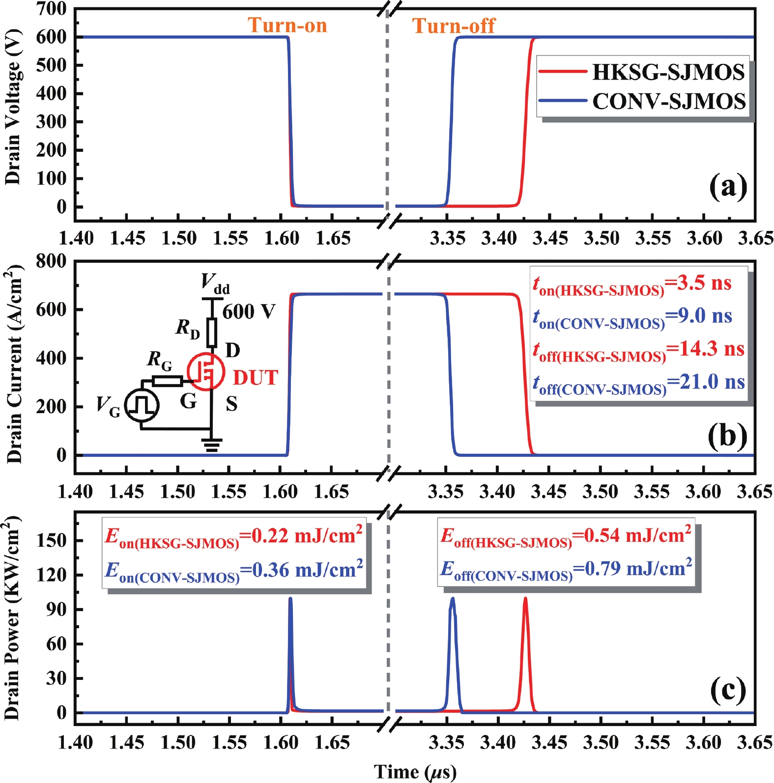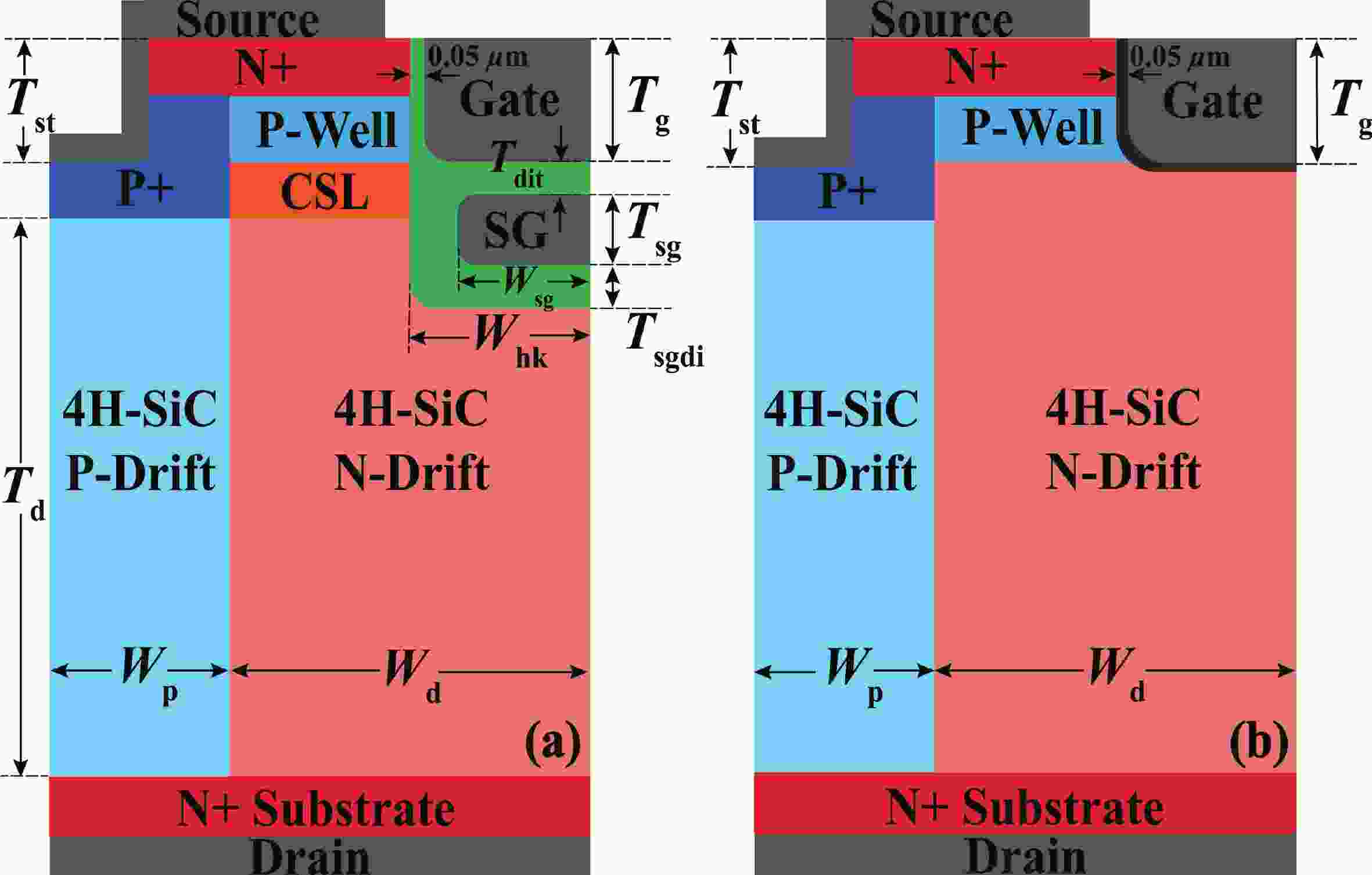 A 4H-SiC superjunction (SJ) MOSFET (SJMOS) with integrated high-K gate dielectric and split gate (HKSG-SJMOS) is proposed in this paper. The key features of HKSG-SJMOS involve the utilization of high-K (HK) dielectric as the gate dielectric, which surrounds the source-connected split gate (SG) and metal gate. The high-K gate dielectric optimizes the electric field distribution within the drift region, creating a low-resistance conductive channel. This enhancement leads to an increase in the breakdown voltage (BV) and a reduction in the specific on resistance (Ron,sp). The introduction of split gate surrounded by high-K dielectric reduces the gate?drain capacitance (Cgd) and gate?drain charge (Qgd), which improves the switching characteristics. The simulation results indicate that compared to conventional 4H-SiC SJMOS, the HKSG-SJMOS exhibits a 110.5% enhancement in figure of merit (FOM, FOM = BV2/Ron,sp), a 93.6% reduction in the high frequency figure of merit (HFFOM) of Ron,sp·Cgd, and reductions in turn-on loss (Eon) and turn-off loss (Eoff) by 38.3% and 31.6%, respectively. Furthermore, the reverse recovery characteristics of HKSG-SJMOS has also discussed, revealing superior performance compared to conventional 4H-SiC SJMOS.
