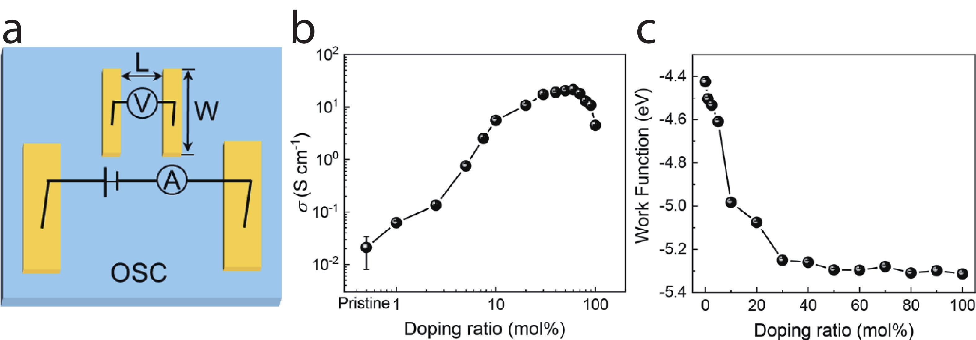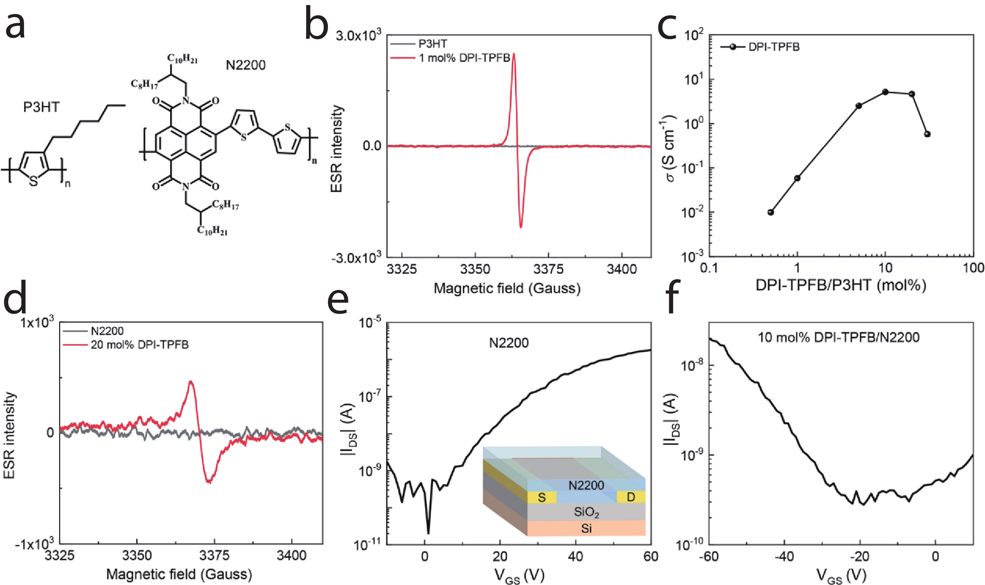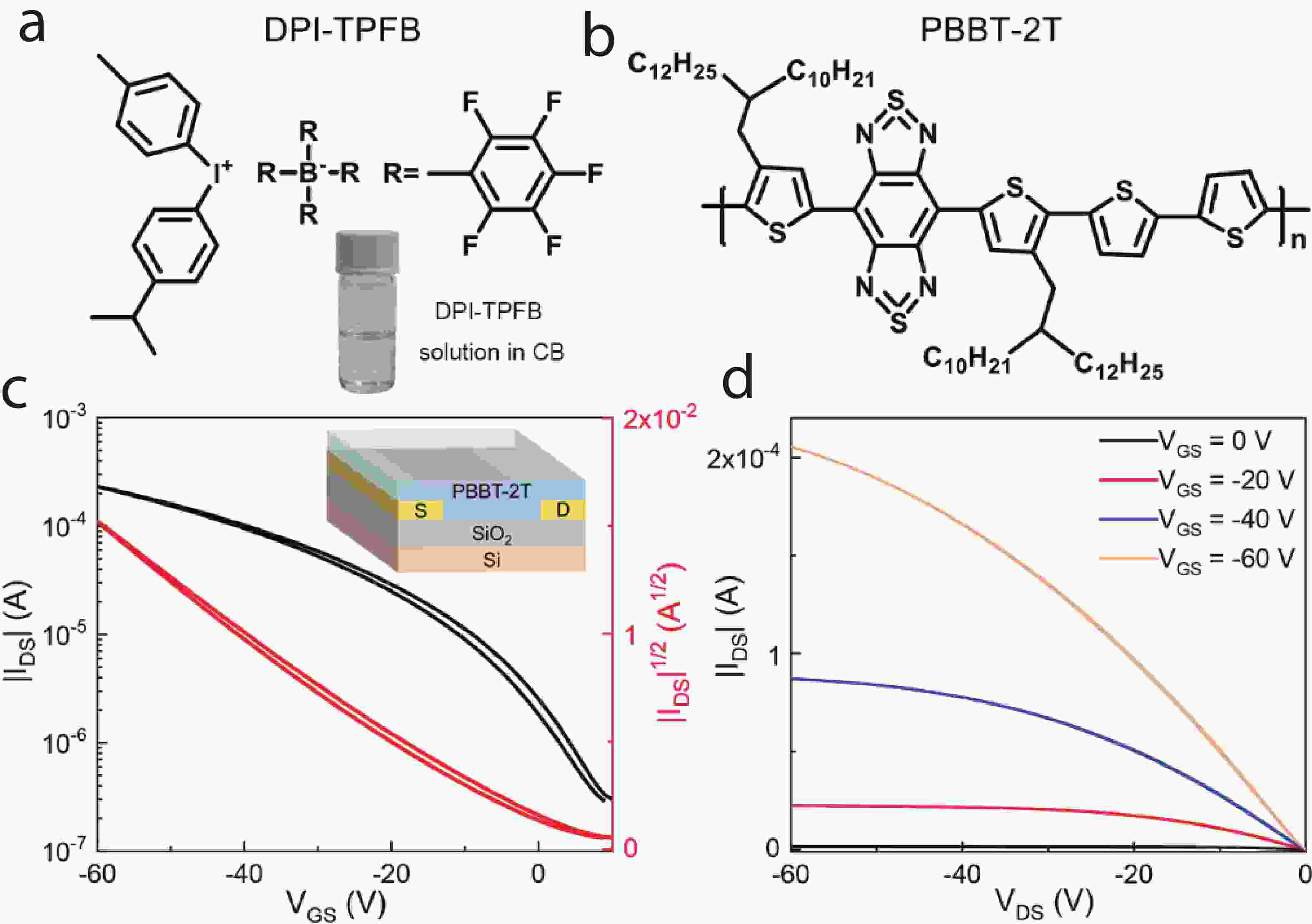 Doping plays a pivotal role in enhancing the performance of organic semiconductors (OSCs) for advanced optoelectronic and thermoelectric applications. In this study, we systematically investigated the doping performance and applicability of the ionic dopant 4-isopropyl-4′-methyldiphenyliodonium tetrakis(penta-fluorophenyl-borate) (DPI-TPFB) as a p-dopant for OSCs. Using the p-type OSC PBBT-2T as a model system, we demonstrated that DPI-TPFB shows significant doping effect, as confirmed by ESR spectra, ultraviolet?visible?near-infrared (UV?vis?NIR) absorption, and work function analysis, and enhances the electronic conductivity of PBBT-2T films by over four orders of magnitude. Furthermore, DPI-TPFB exhibited broad doping applicability, effectively doping various p-type OSCs and even imparting p-type characteristics to the n-type OSC N2200, transforming its intrinsic n-type behavior into p-type. The application of DPI-TPFB-doped PBBT-2T films in organic thermoelectric devices (OTEs) was also explored, achieving a power factor of approximately 10 μW?m?1?K?2. These findings highlight the potential of DPI-TPFB as a versatile and efficient dopant for integration into organic optoelectronic and thermoelectric devices.