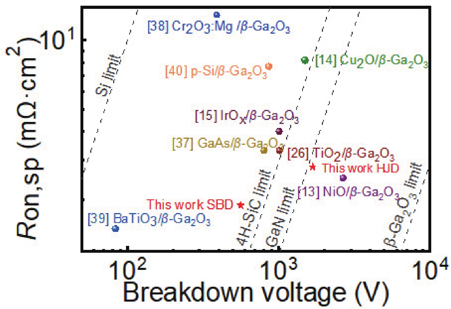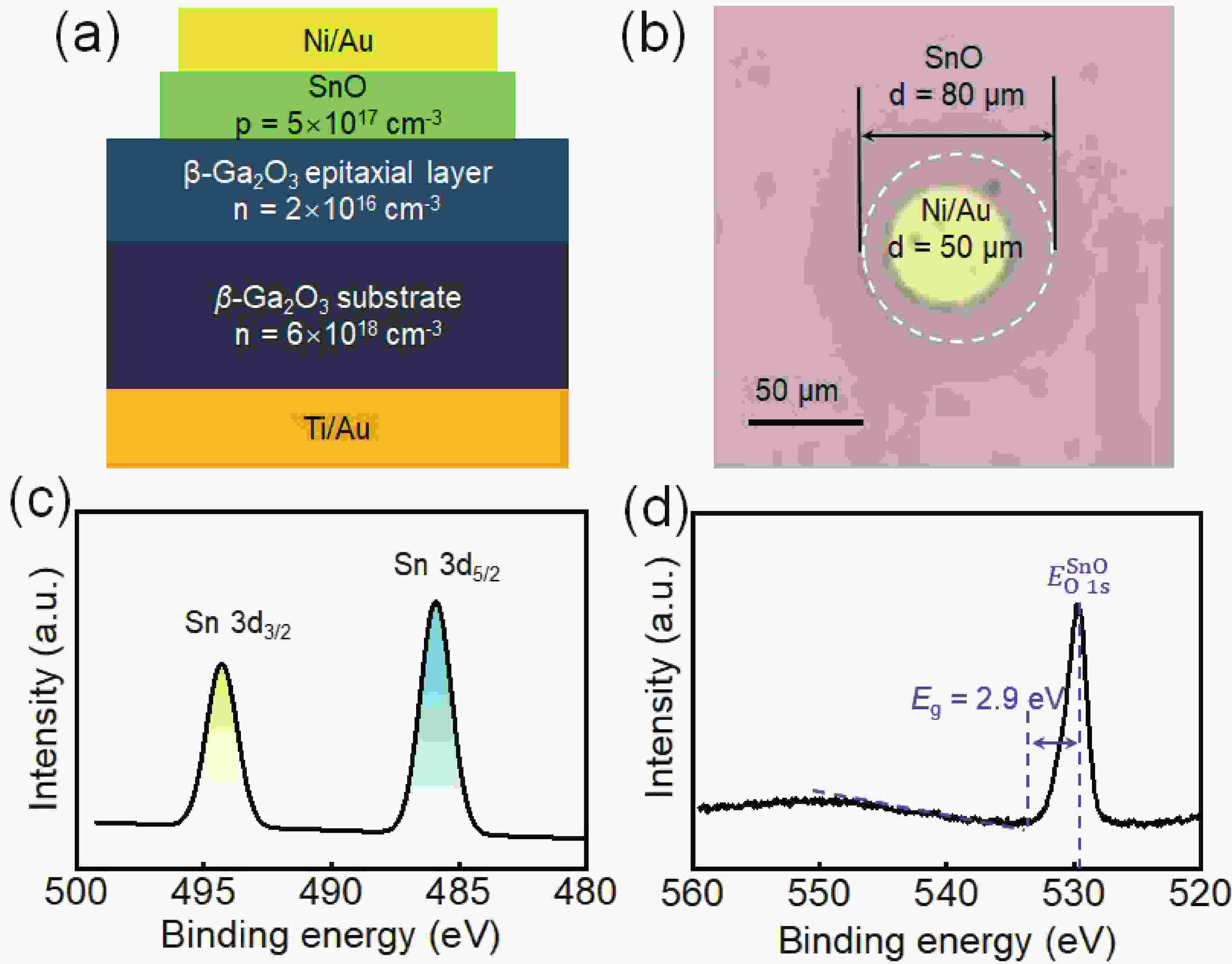 In this study, we present the fabrication of vertical SnO/β-Ga2O3 heterojunction diode (HJD) via radio frequency (RF) reactive magnetron sputtering. The valence and conduction band offsets between β-Ga2O3 and SnO are determined to be 2.65 and 0.75 eV, respectively, through X-ray photoelectron spectroscopy, showing a type-Ⅱ band alignment. Compared to its Schottky barrier diode (SBD) counterpart, the HJD presents a comparable specific ON-resistances (Ron,sp) of 2.8 mΩ·cm2 and lower reverse leakage current (IR), leading to an enhanced reverse blocking characteristics with breakdown voltage (BV) of 1675 V and power figure of merit (PFOM) of 1.0 GW/cm2. This demonstrates the high quality of the SnO/β-Ga2O3 heterojunction interface. Silvaco TCAD simulation further reveals that electric field crowding at the edge of anode for the SBD was greatly depressed by the introduction of SnO film, revealing the potential application of SnO/β-Ga2O3 heterojunction in the future β-Ga2O3-based power devices.