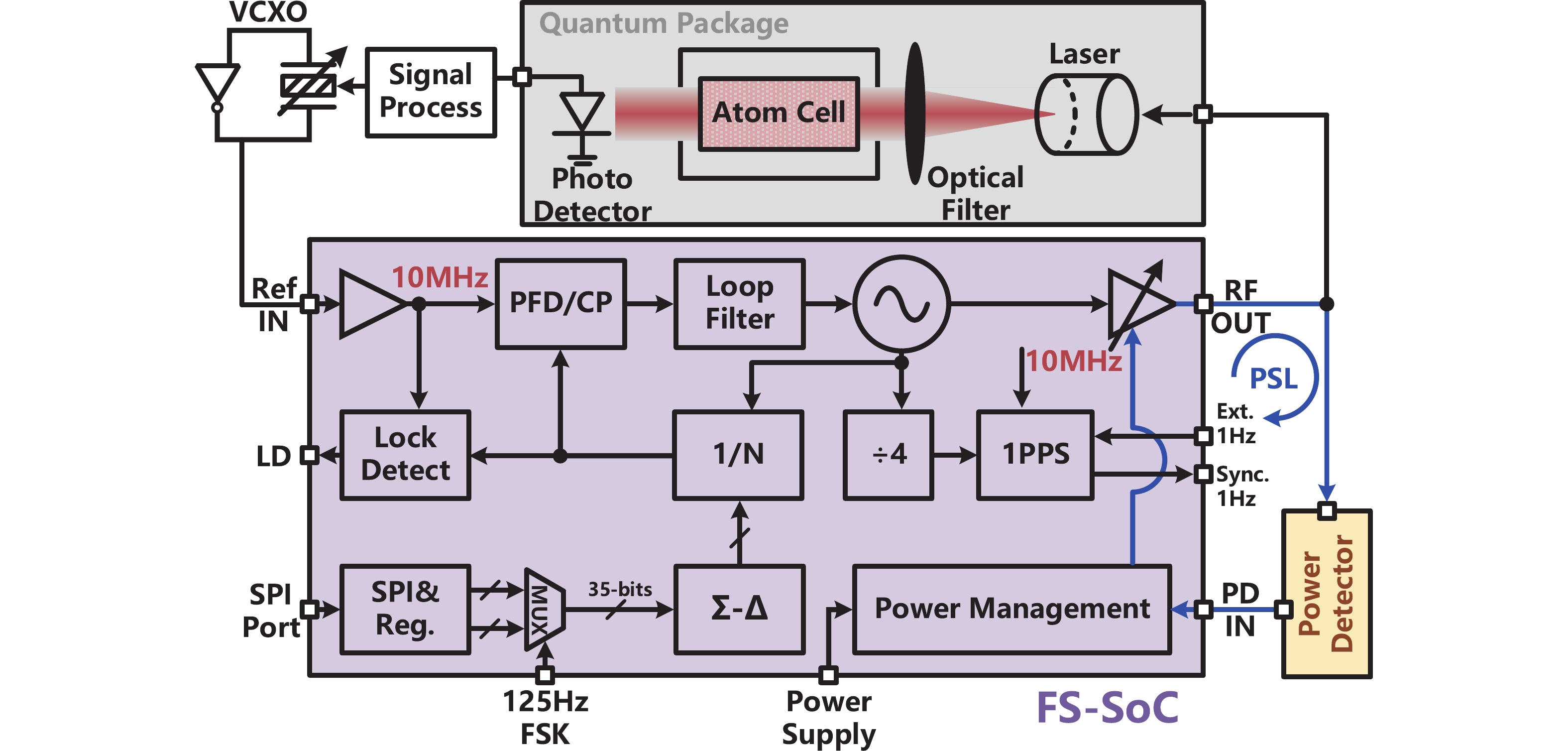 | *Measured from a Cs atomic clocks used the proposed FS-SoC and PD. ** Overall power consumption of atomic clock. |