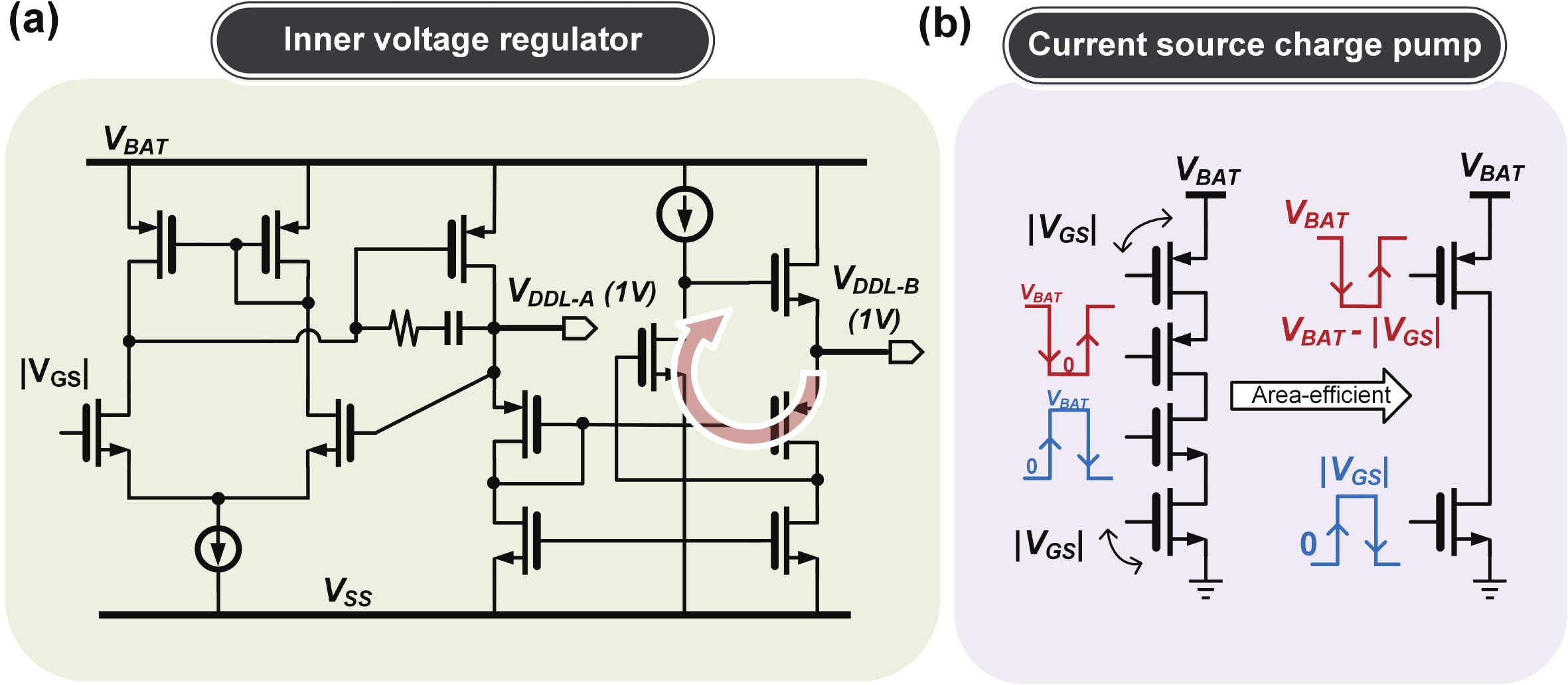 Abstract: In this paper, an NMOS output-capacitorless low-dropout regulator (OCL-LDO) featuring dual-loop regulation has been proposed, achieving fast transient response with low power consumption. An event-driven charge pump (CP) loop with the dynamic strength control (DSC), is proposed in this paper, which overcomes trade-offs inherent in conventional structures. The presented design addresses and resolves the large signal stability issue, which has been previously overlooked in the event-driven charge pump structure. This breakthrough allows for the full exploitation of the charge-pump structure's potential, particularly in enhancing transient recovery. Moreover, a dynamic error amplifier is utilized to attain precise regulation of the steady-state output voltage, leading to favorable static characteristics. A prototype chip has been fabricated in 65 nm CMOS technology. The measurement results show that the proposed OCL-LDO achieves a 410 nA low quiescent current (IQ) and can recover within 30 ns under 200 mA/10 ns loading change.