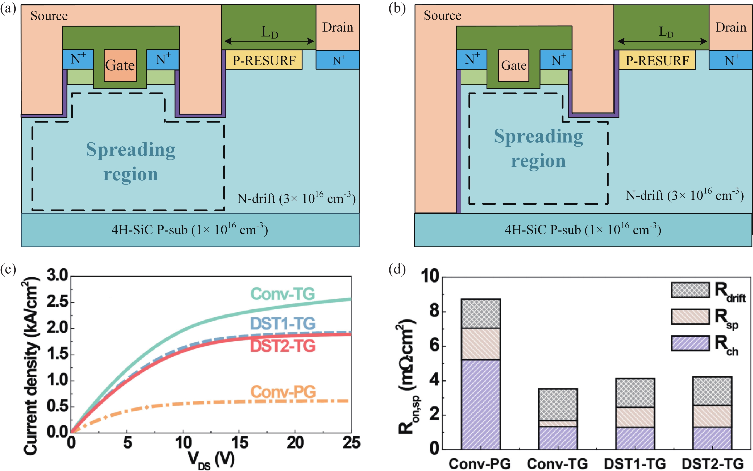 Noborio M, Jun S D, Kimoto T. Improved performance of 4H-SiC double reduced surface field metal–oxide–semiconductor field-effect transistors by increasing RESURF doses. Appl Phys Express, 2008, 1(10), 101403 doi: 10.1143/APEX.1.101403
