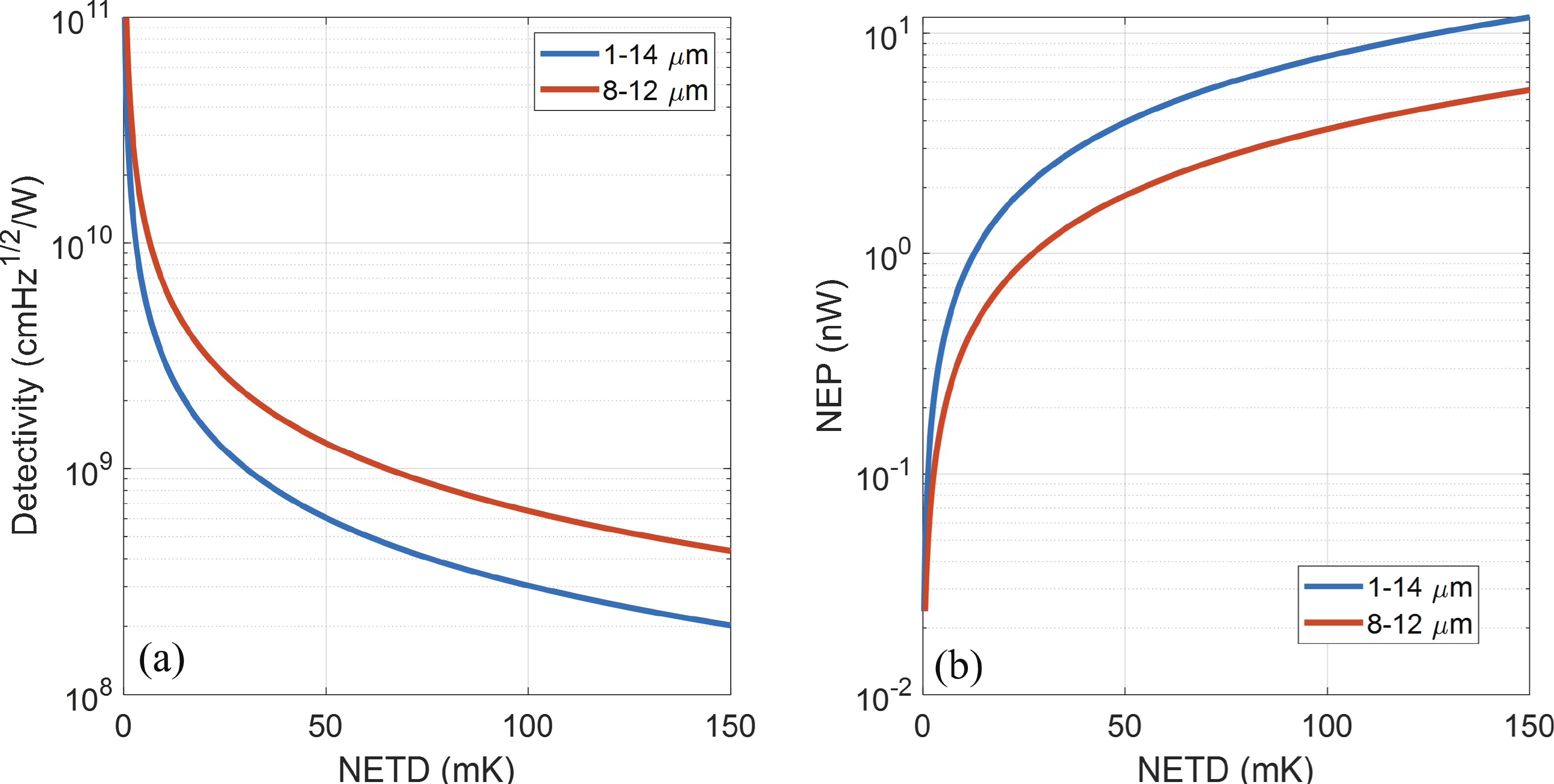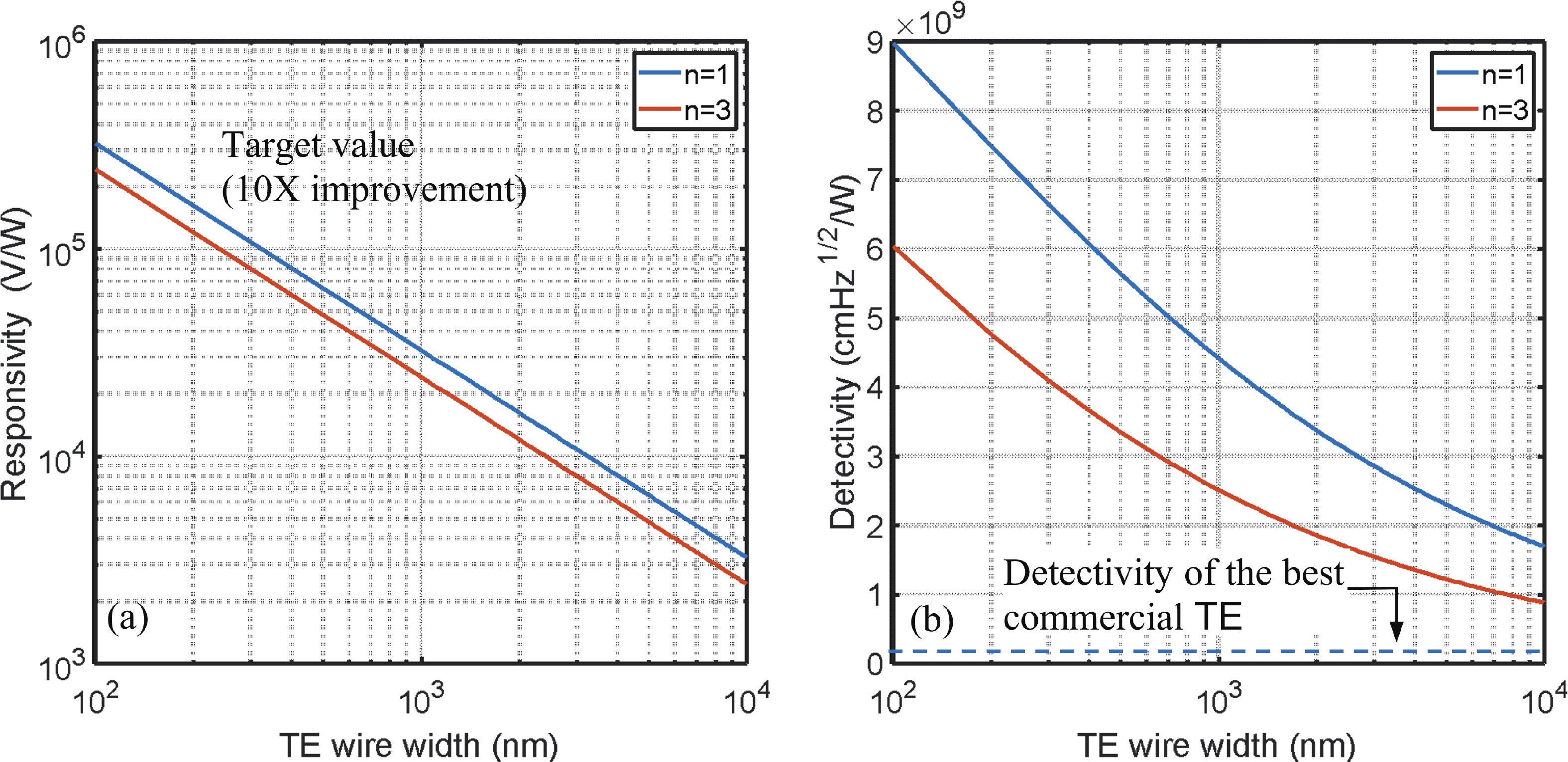 Table 3. Detectivity of TE IR detectors with conventional and optimized designs, showing improvements from material and design enhancements.