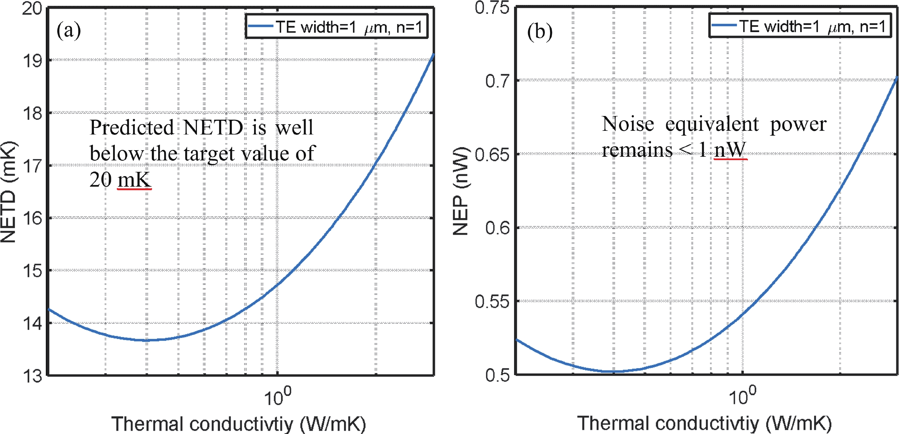 | IR absorber thickness, tIR | 0.5 μm | PbTe thermal conductivity | 2.7 W/mK | |