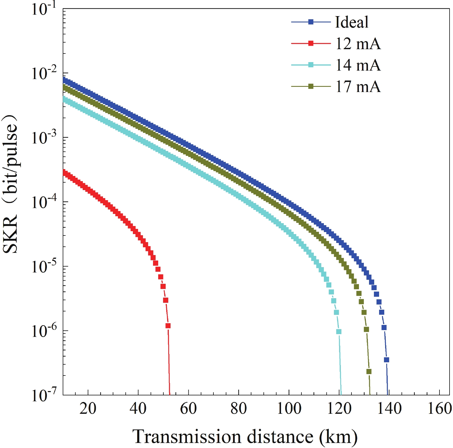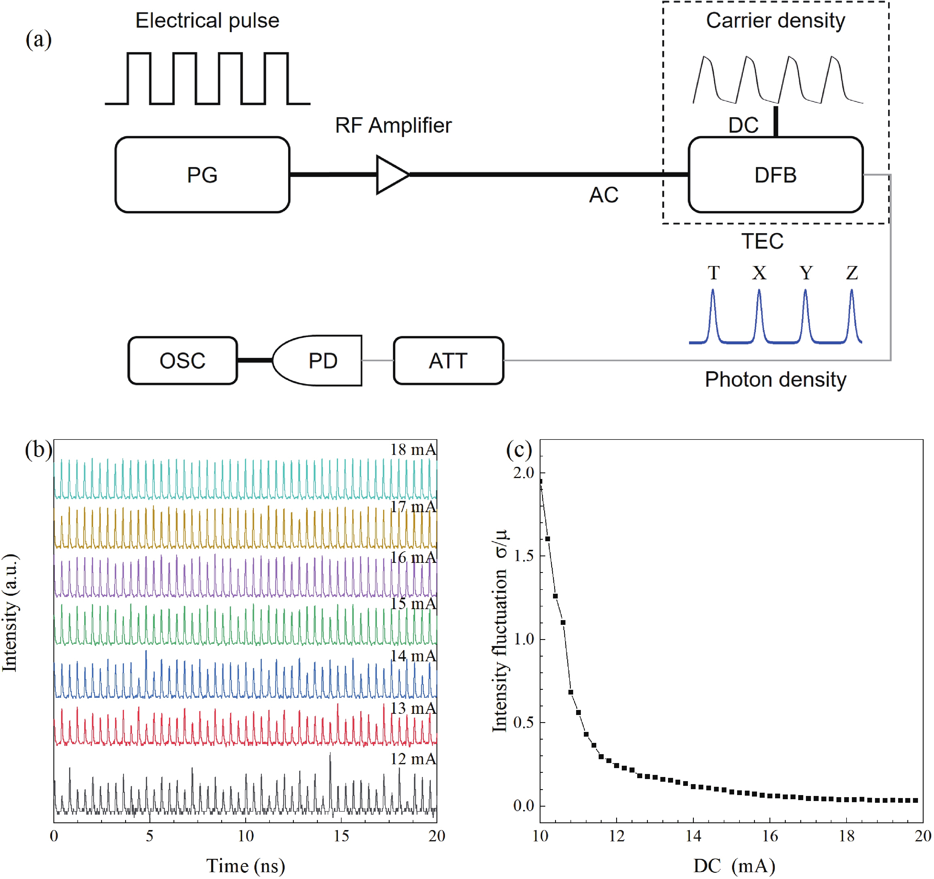 Abstract: In the implementation of quantum key distribution, Security certification is a prerequisite for social deployment. Transmitters in decoy-BB84 systems typically employ gain-switched semiconductor lasers (GSSLs) to generate optical pulses for encoding quantum information. However, the working state of the laser may violate the assumption of pulse independence. Here, we explored the dependence of intensity fluctuation and high-order correlation distribution of optical pulses on driving currents at 2.5 GHz. We found the intensity correlation distribution had a significant dependence on the driving currents, which would affect the final key rate. By utilizing rate equations in our simulation, we confirmed the fluctuation and correlation originated from the instability of gain-switched laser driven at a GHz-repetitive frequency. Finally, we evaluated the impact of intensity fluctuation on the secure key rate. This work will provide valuable insights for assessing whether the transmitter is operating at optimal state in practice.