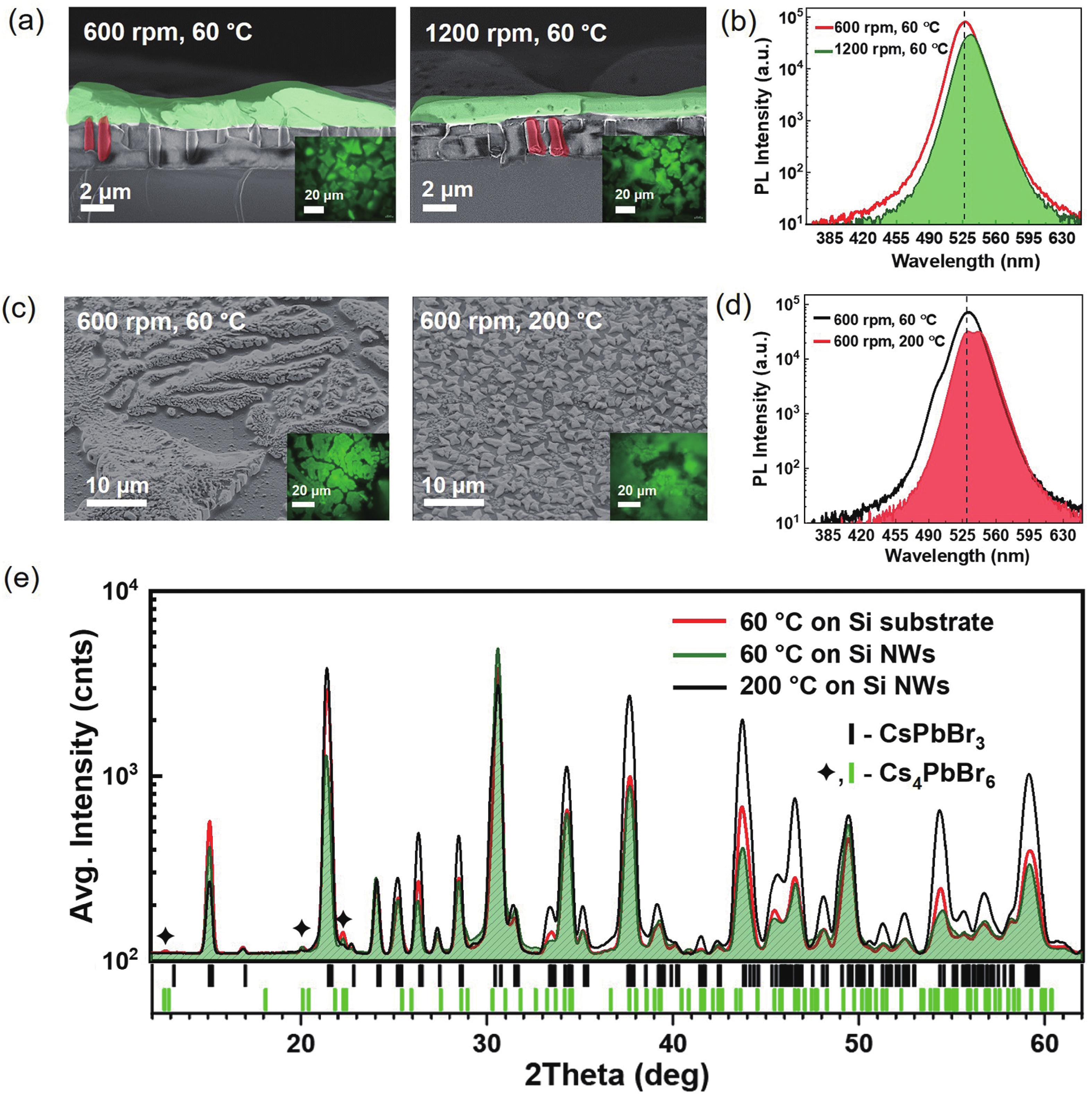 Key words: silicon nanowires, perovskite, CsPbBr3 thin film, silicon, PeLEC