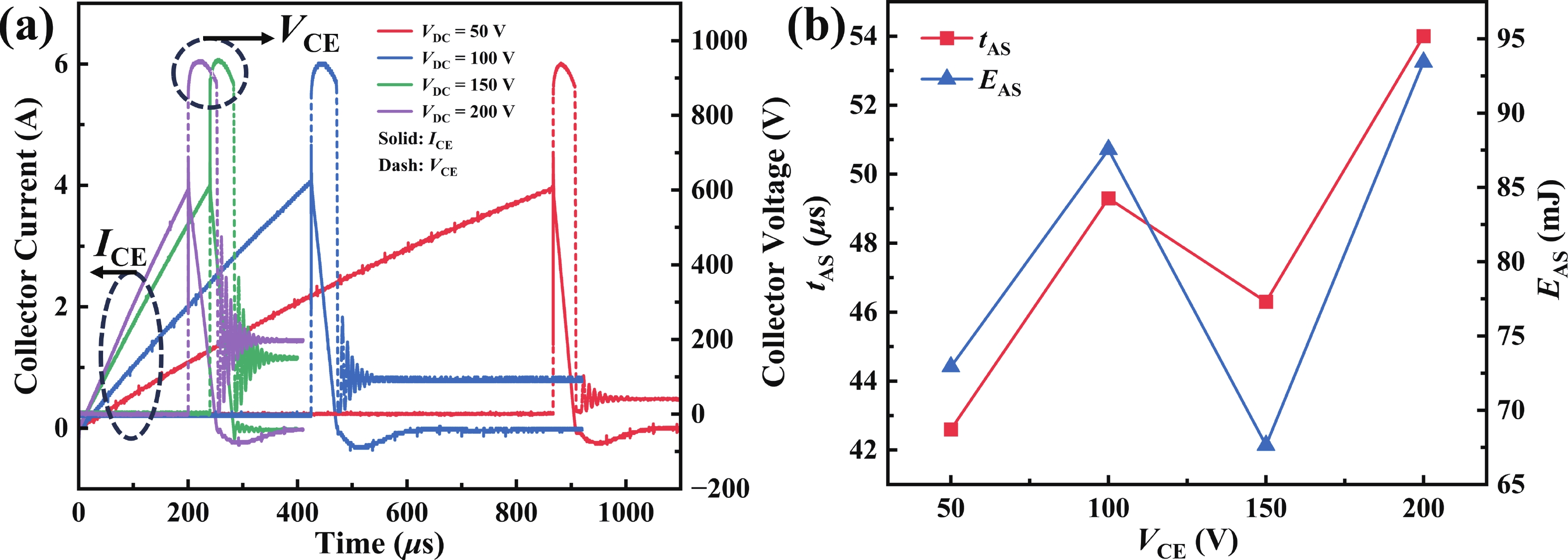 Abstract: The dynamic avalanche effect is a critical factor influencing the performance and reliability of the field-stop insulated gate bipolar transistors (FS-IGBT). Unclamped inductive switching (UIS) is the primary method for testing the dynamic avalanche capability of FS-IGBTs. Numerous studies have demonstrated that factors such as device structure, avalanche-generating current filaments, and electrical parameters influence the dynamic avalanche effect of the FS-IGBT. However, few studies have focused on enhancing the avalanche reliability of the FS-IGBT by adjusting circuit parameters during operation. In this paper, the dynamic avalanche effect of the FS-IGBT under UIS conditions is comprehensively investigated through a series of comparative experiments with varying circuit parameters, including bus voltage VDC, gate voltage VG, gate resistance Rg, load inductance L, and temperature TC. Furthermore, a method to enhance the dynamic avalanche reliability of the FS-IGBT under UIS by optimizing circuit parameters is proposed. In practical applications, reducing gate voltage, increasing load inductance, and lowering temperature can effectively improve the dynamic avalanche capability of the FS-IGBT.